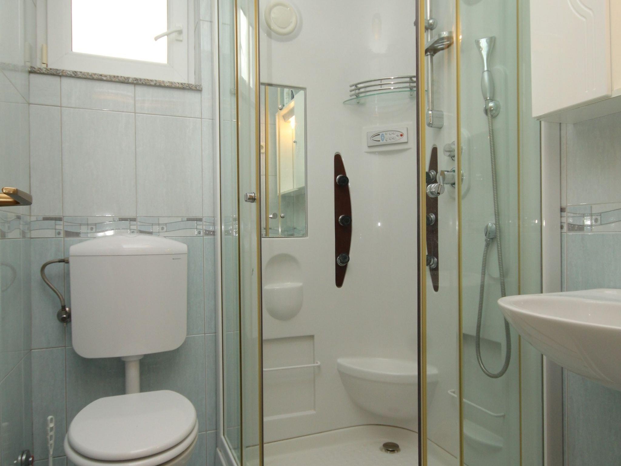 Studio bietet Platz für 2 Gäste. Die Betten sind in Schlafzimmern, die es 1 gibt, innerhalb einer Gesamtfläche von 21m2, angeordnet. Die Gäste haben eine eigene Terrasse zur Verfügung, auf der sie in warmen Sommernächten genießen können. Das Studio-Apartment bietet Meerblick. Es ist erlaubt, Speisen auf dem Gemeinschafts-Grill vorzubereiten. In der Unterkunftseinheit besteht die Möglichkeit des Mitbringens von Haustieren gegen Aufpreis. IM PREIS INBEGRIFFEN: Kurtaxe, Endreinigung, Klimatisierung, Parkplatz, Internet, Wäschewaschen, Bootsanlegeplatz, Bügeleisen, Bügelbrett, Föhn. VERBINDLICHE ZUSÄTZLICHE KOSTEN: Aufzahlung für Kurzaufenthalte (prozentualer Zuschlag pro Nächtigungsanzahl: 30% - 1, 20% - 2, 10% - 3). UNVERBINDLICHE ZUSÄTZLICHE KOSTEN: Haustiere (10,00 € pro Nacht). Die Verfügbarkeit zusätzlicher Dienstleistungen in Ihrem reservierten Termin und die Preise derselben (falls nicht aufgeführt) müssen im Voraus überprüft werden. Zusätzliche Dienstleistungen die in der Zahlungsaufforderung nicht aufgeführt sind werden direkt beim Vermieter bezahlt, angenommen der Gast nutzt auch diese.