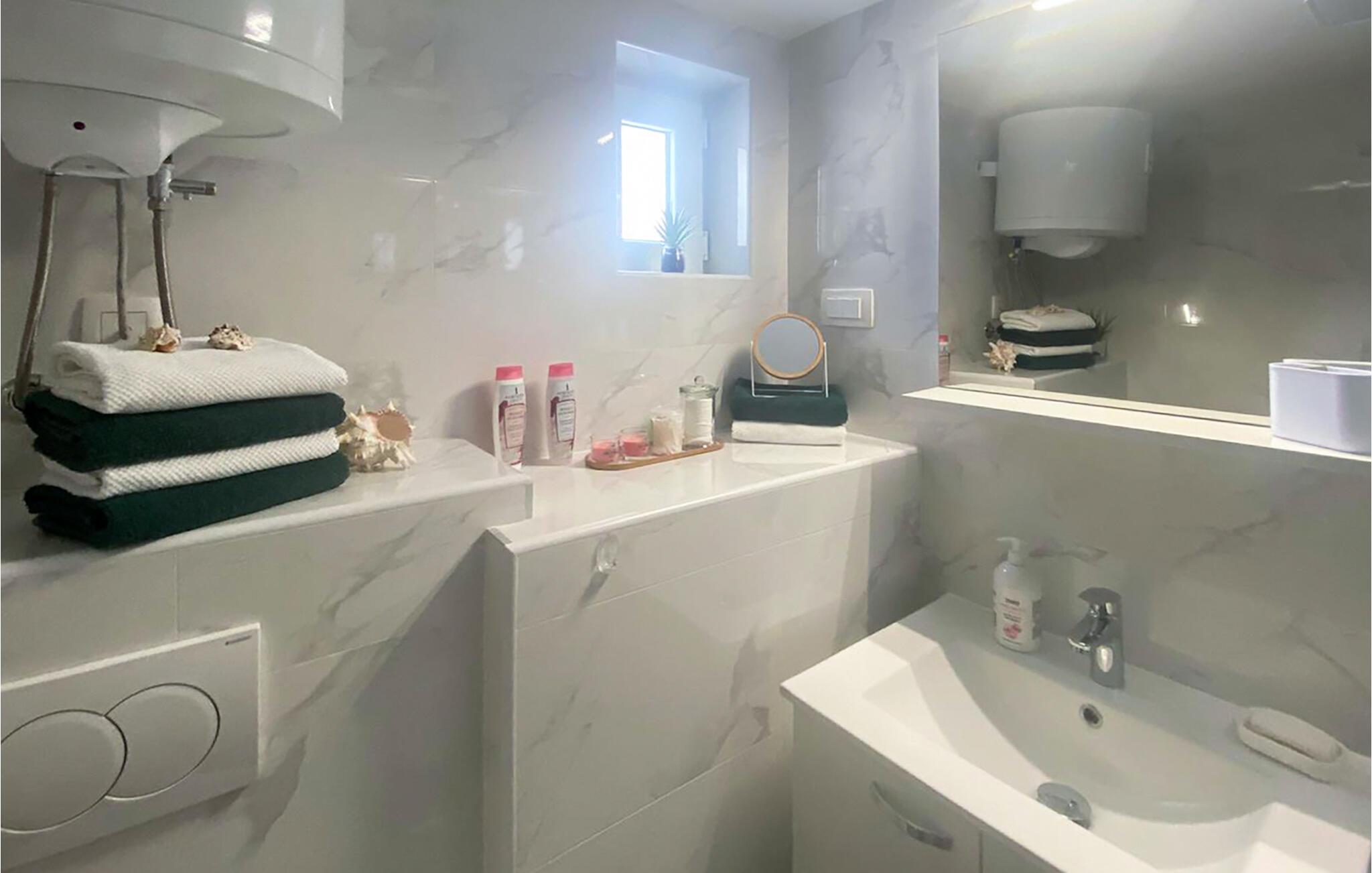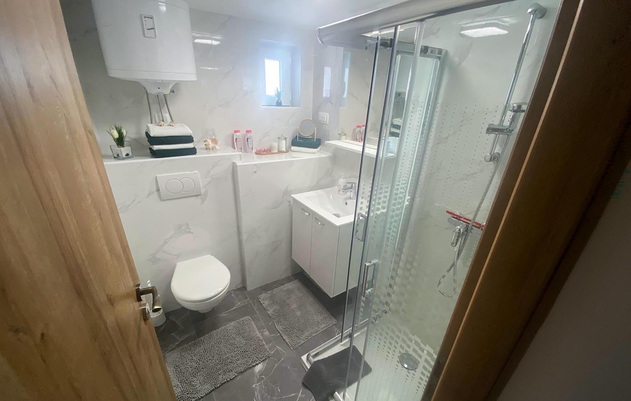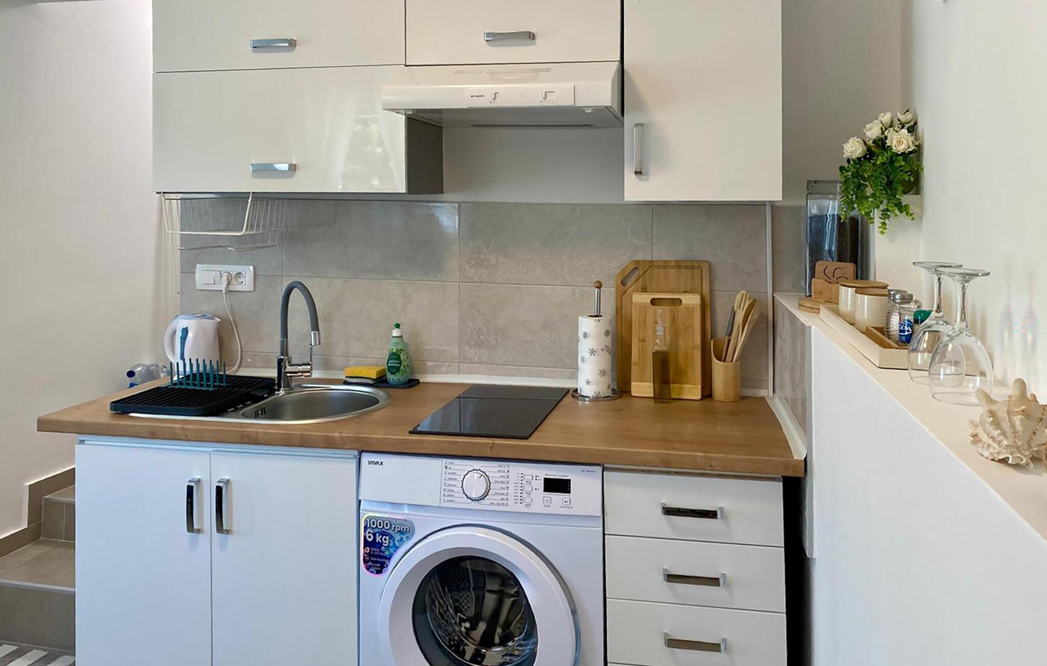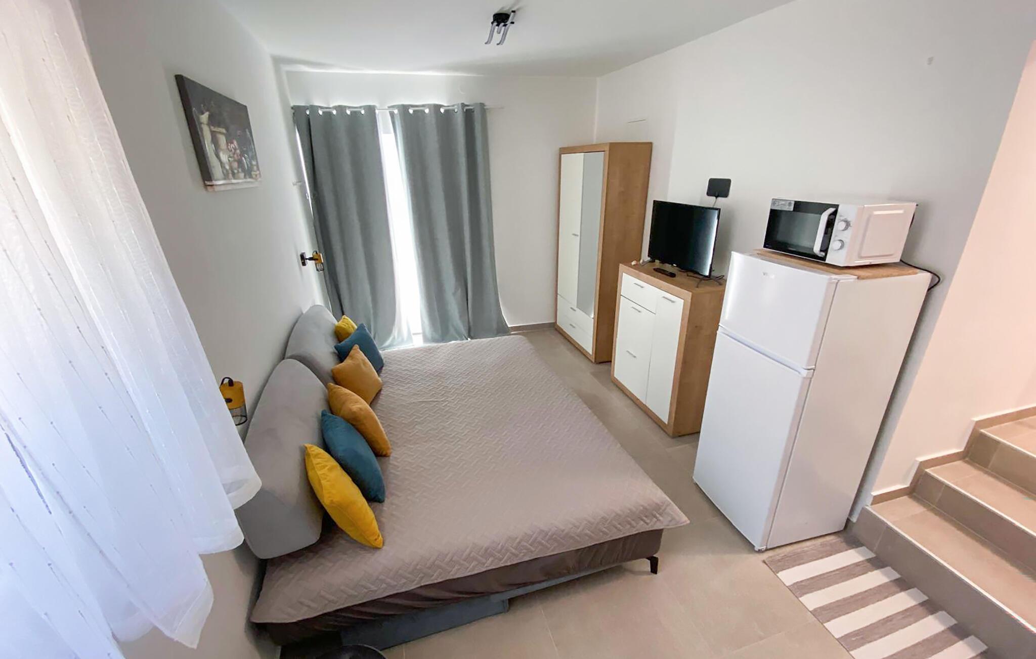 Dieses Studio ist der ideale Rückzugsort für eine Auszeit zu zweit. Alles, was Sie für eine unbeschwerte Zeit brauchen, ist vorhanden – übersichtlich, praktisch und genau richtig für entspannte Urlaubsmomente. Streamen Sie Ihre Lieblingsserie oder kochen Sie gemeinsam und stoßen Sie mit einem guten Glas kroatischem Wein an.