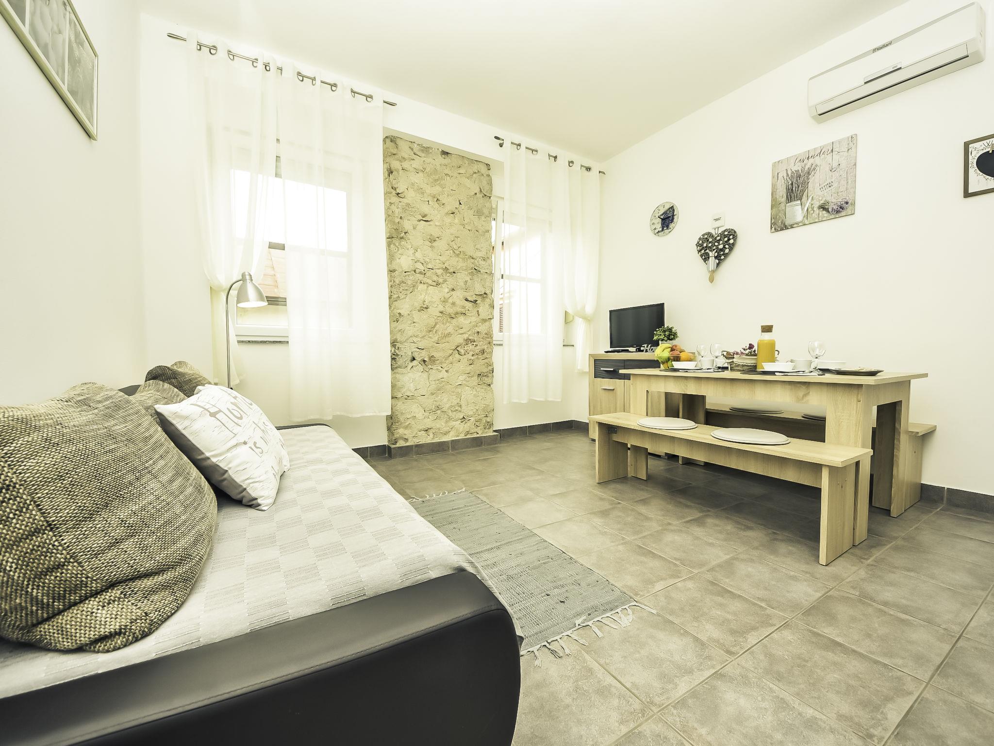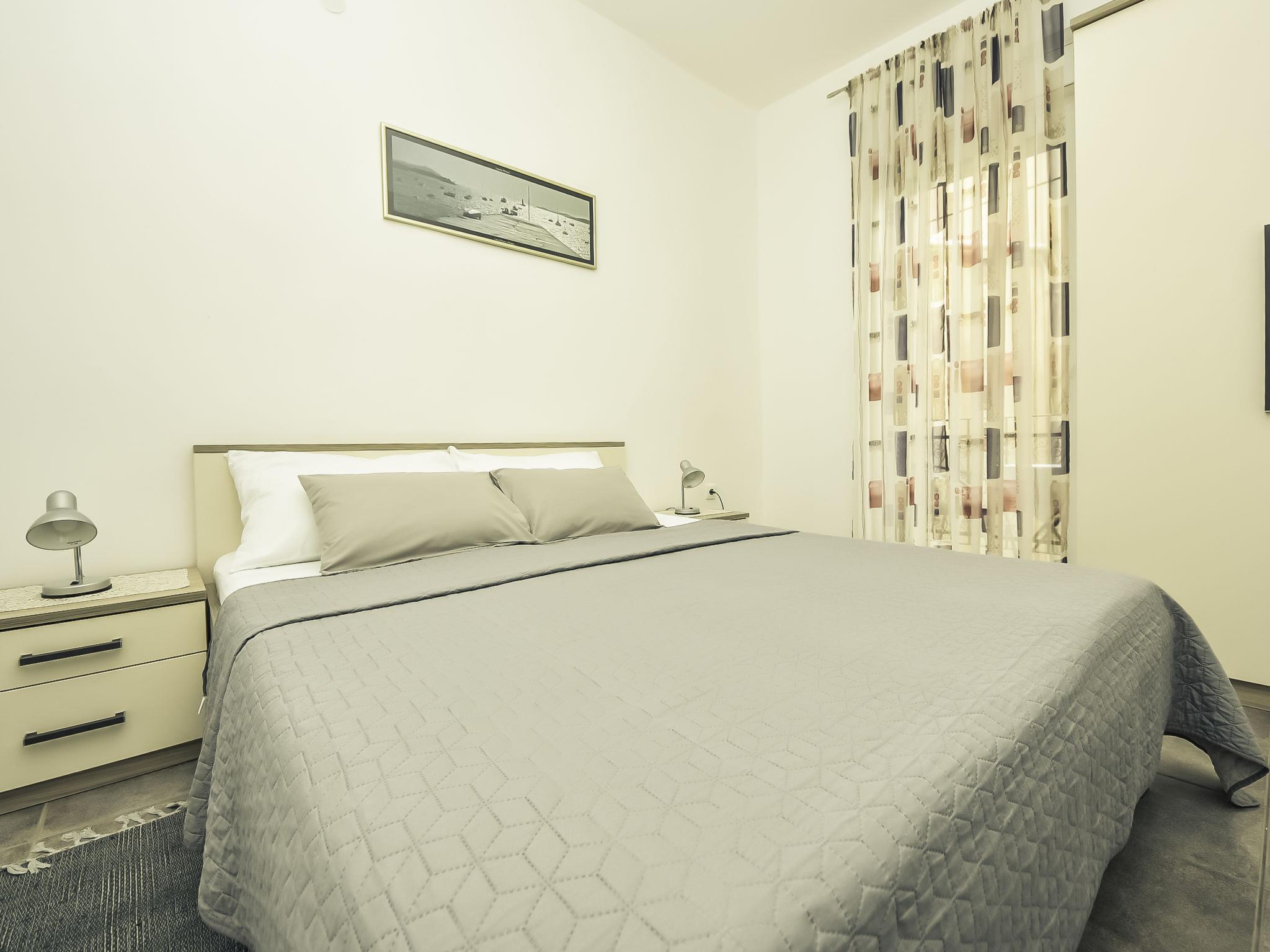 Reihenhaus "Snježana". Im Herzen der Stadt, 50 m vom Meer, 150 m vom Strand. Im Hause: Internetzugang. Zufahrt bis 50 m zum Haus. Öffentliche Parkplätze 150 m. Einkaufsgeschäft 30 m, Restaurant 50 m, Bushaltestelle 180 m, Kieselstrand, Felsstrand, betonierter Strand 150 m. Nahe gelegene Sehenswürdigkeiten: national park Starigrad Paklenica 40 km.