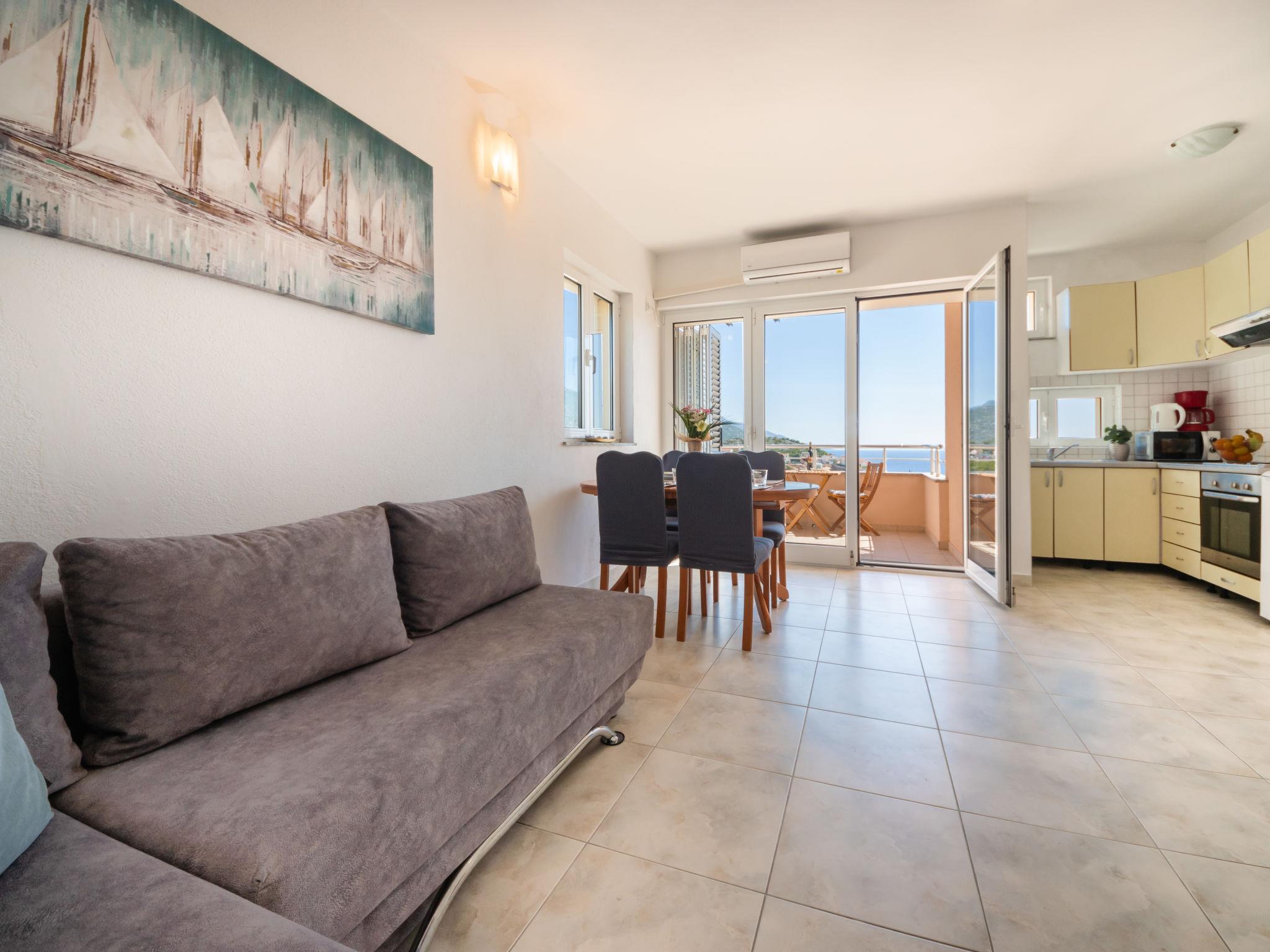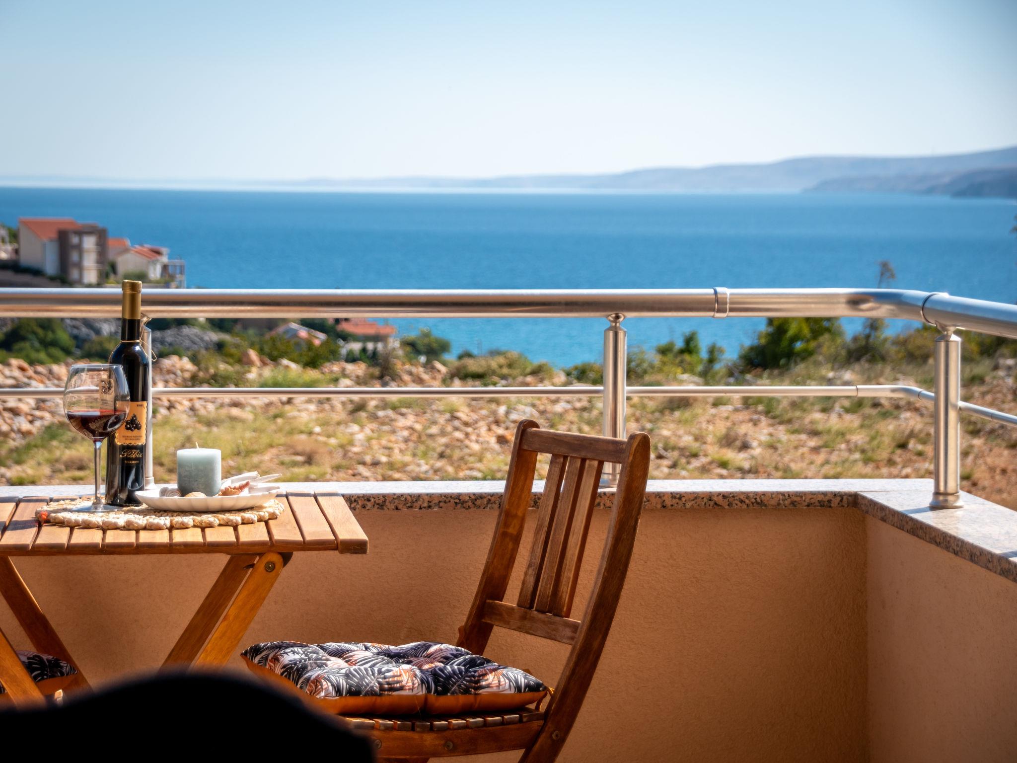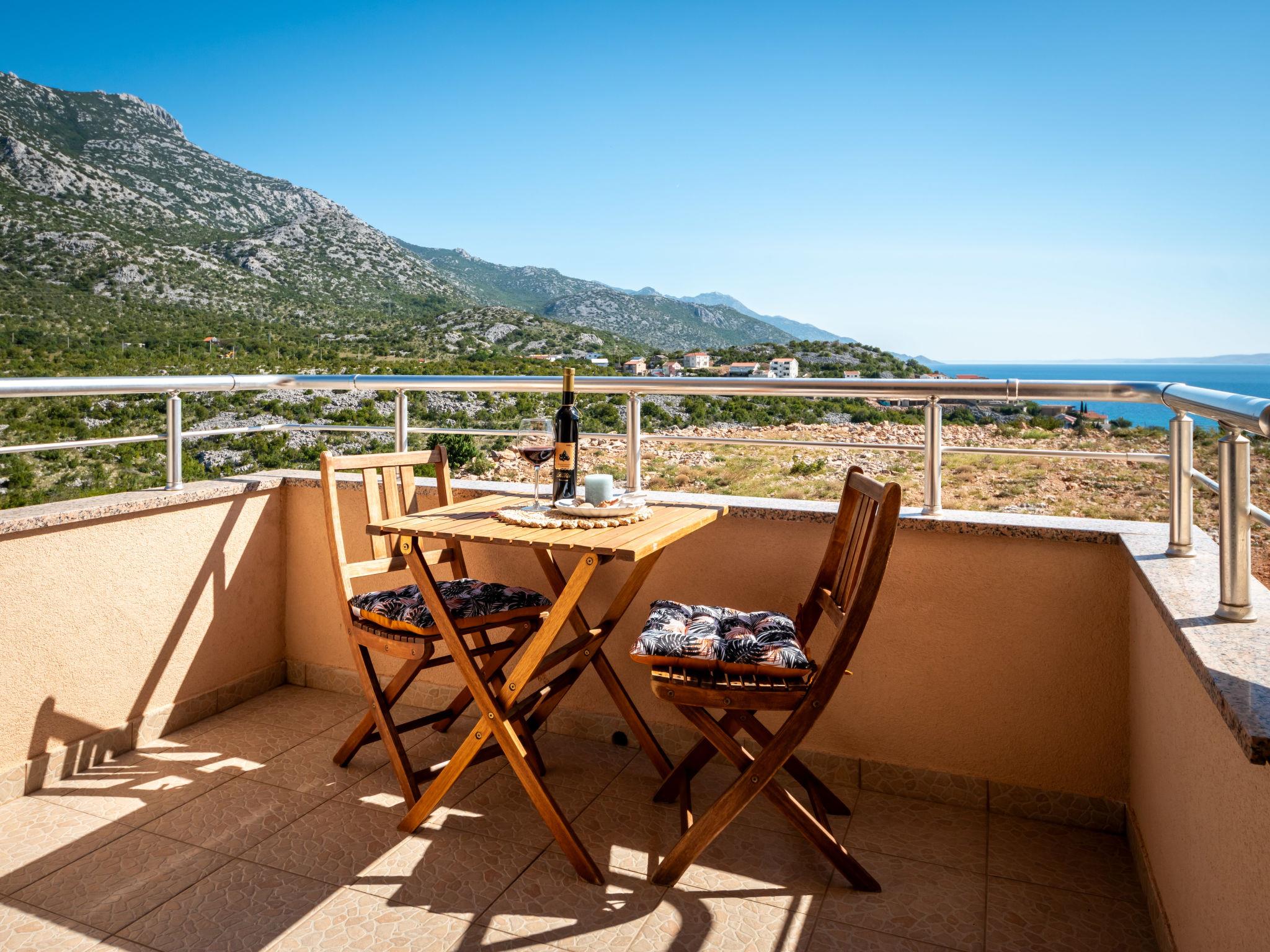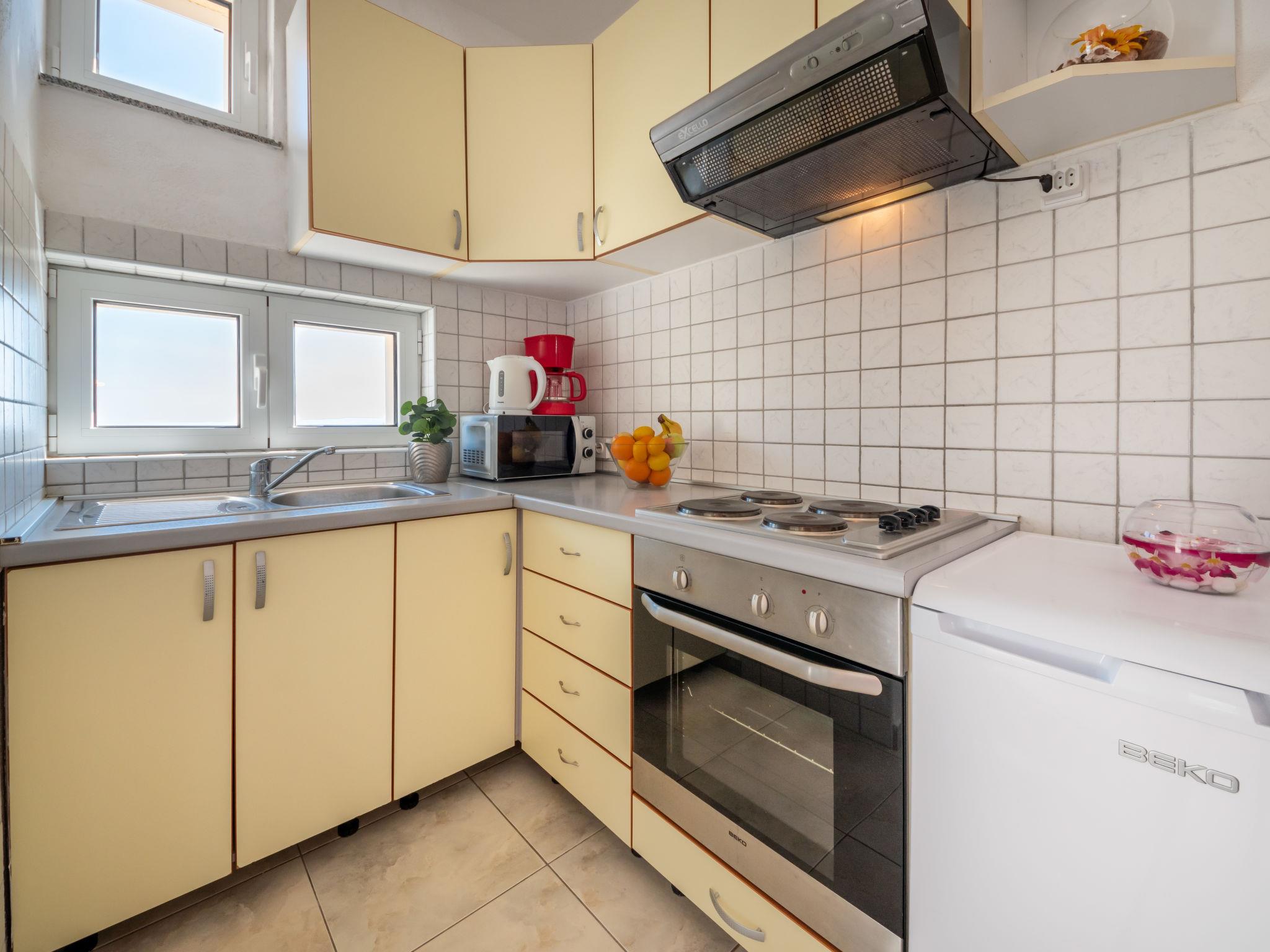2-Zimmer-Wohnung 40 m2 im 1. Stock, Südostlage. Wohn-/Esszimmer 20 m2 mit 1 Doppeldiwanbett (140 cm, Länge 200 cm), Sat-TV (Flachbildschirm), Klimaanlage. Ausgang zum Balkon. 1 Zimmer mit 1 franz. Bett (160 cm, Länge 200 cm). Ausgang zum Balkon. Offene Küche (4 Kochplatten, Backofen). Dusche/WC, Hydromassage-Dusche. Keine Heizmöglichkeit. Balkon 6 m2, kleiner Balkon 2 m2. Balkonmöbel. Fernsicht auf das Meer. Zur Verfügung: Internet (WLAN, gratis). Parkplatz (1 Auto).