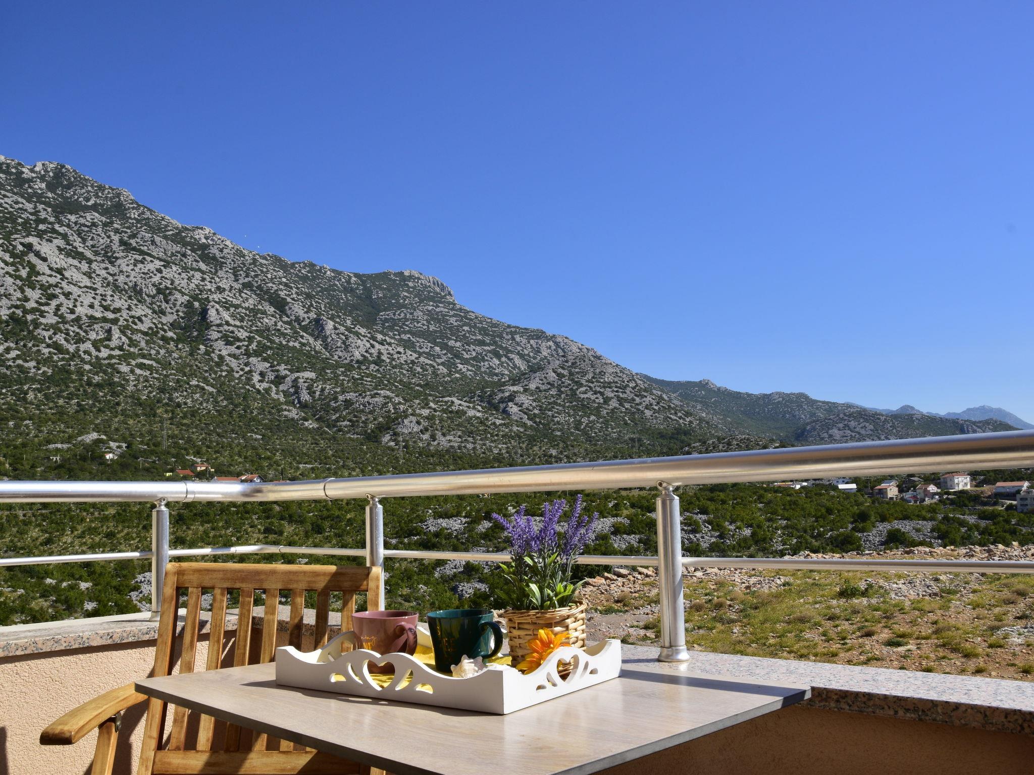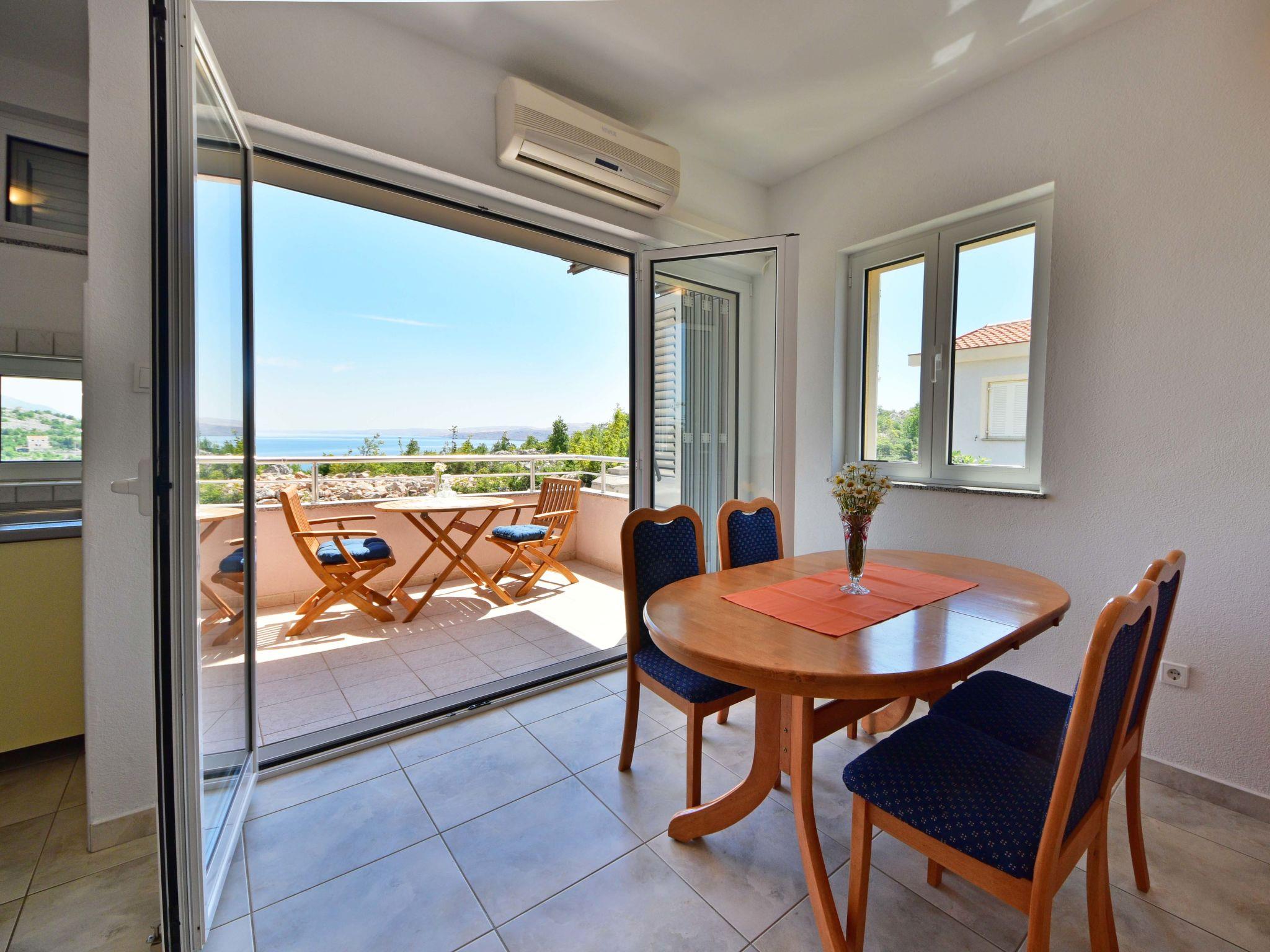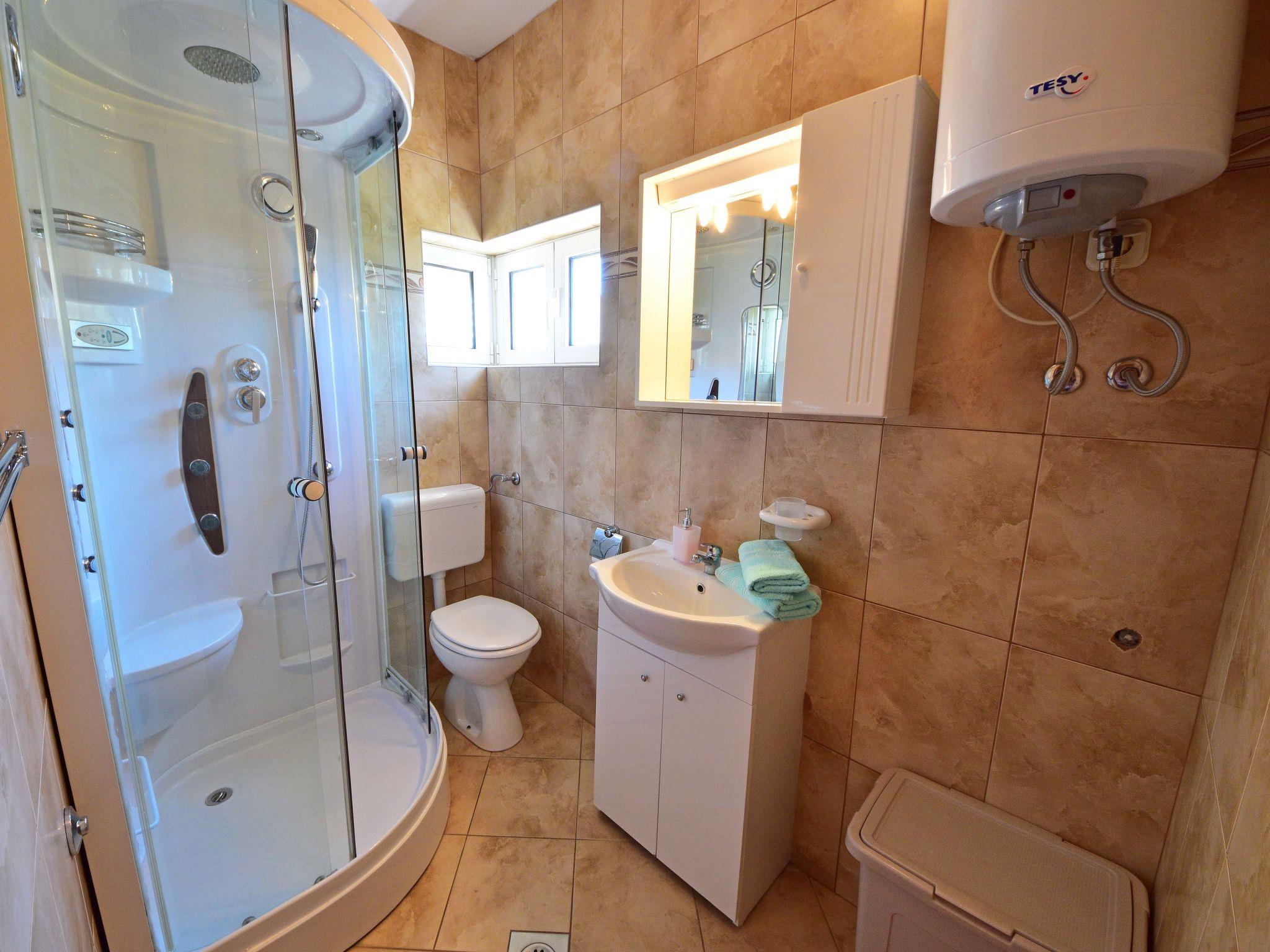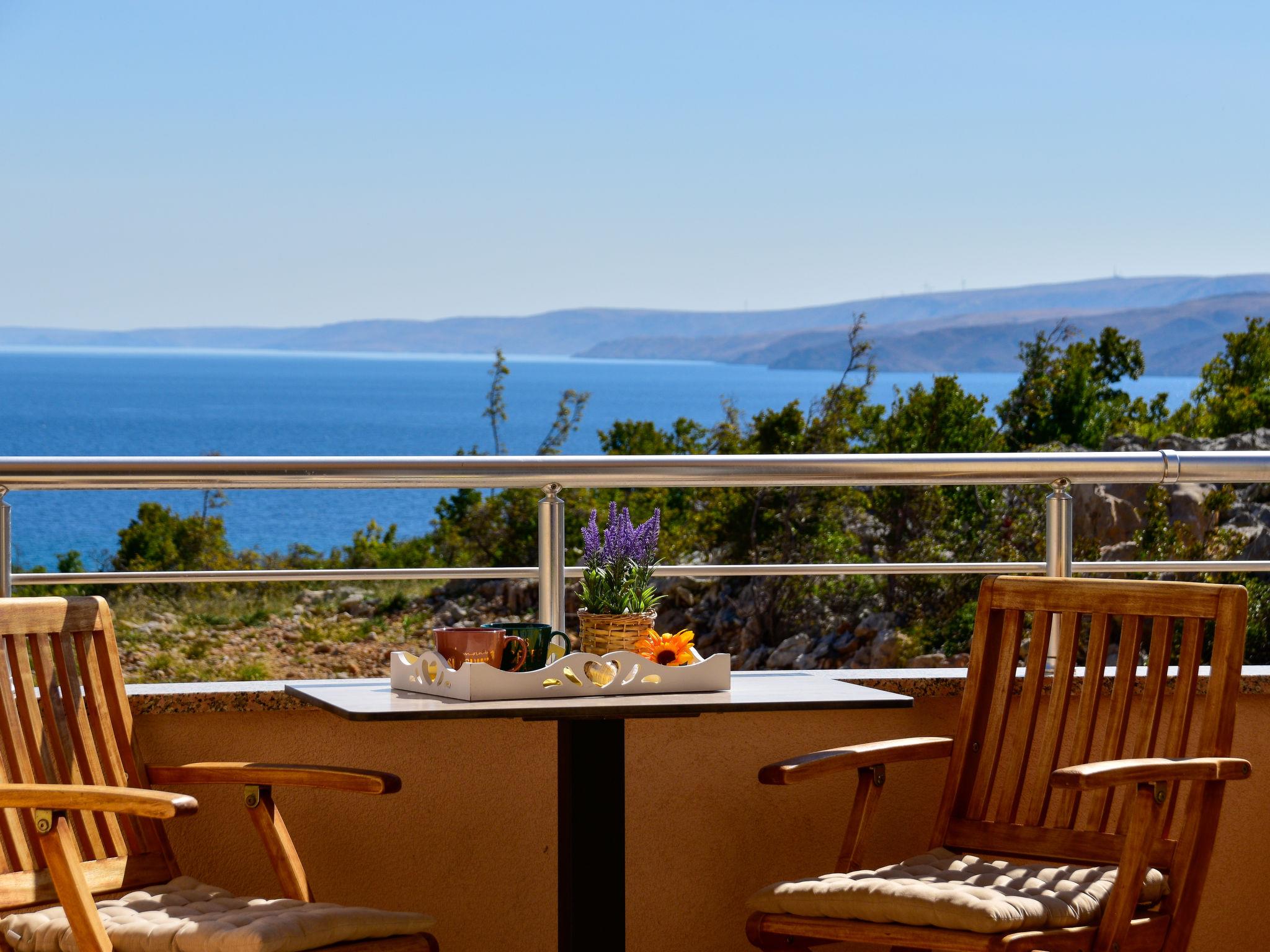 2-Zimmer-Wohnung 40 m2 im 1. Stock, Südostlage. Wohn-/Esszimmer 20 m2 mit 1 Doppeldiwanbett (140 cm, Länge 200 cm), Sat-TV (Flachbildschirm), Klimaanlage. Ausgang zum Balkon. 1 Zimmer mit 1 franz. Bett (160 cm, Länge 200 cm). Ausgang zum Balkon. Offene Küche (4 Kochplatten, Backofen). Dusche/WC, Hydromassage-Dusche. Keine Heizmöglichkeit. Balkon 6 m2, kleiner Balkon 2 m2. Balkonmöbel. Fernsicht auf das Meer. Zur Verfügung: Internet (WLAN, gratis). Parkplatz (1 Auto).