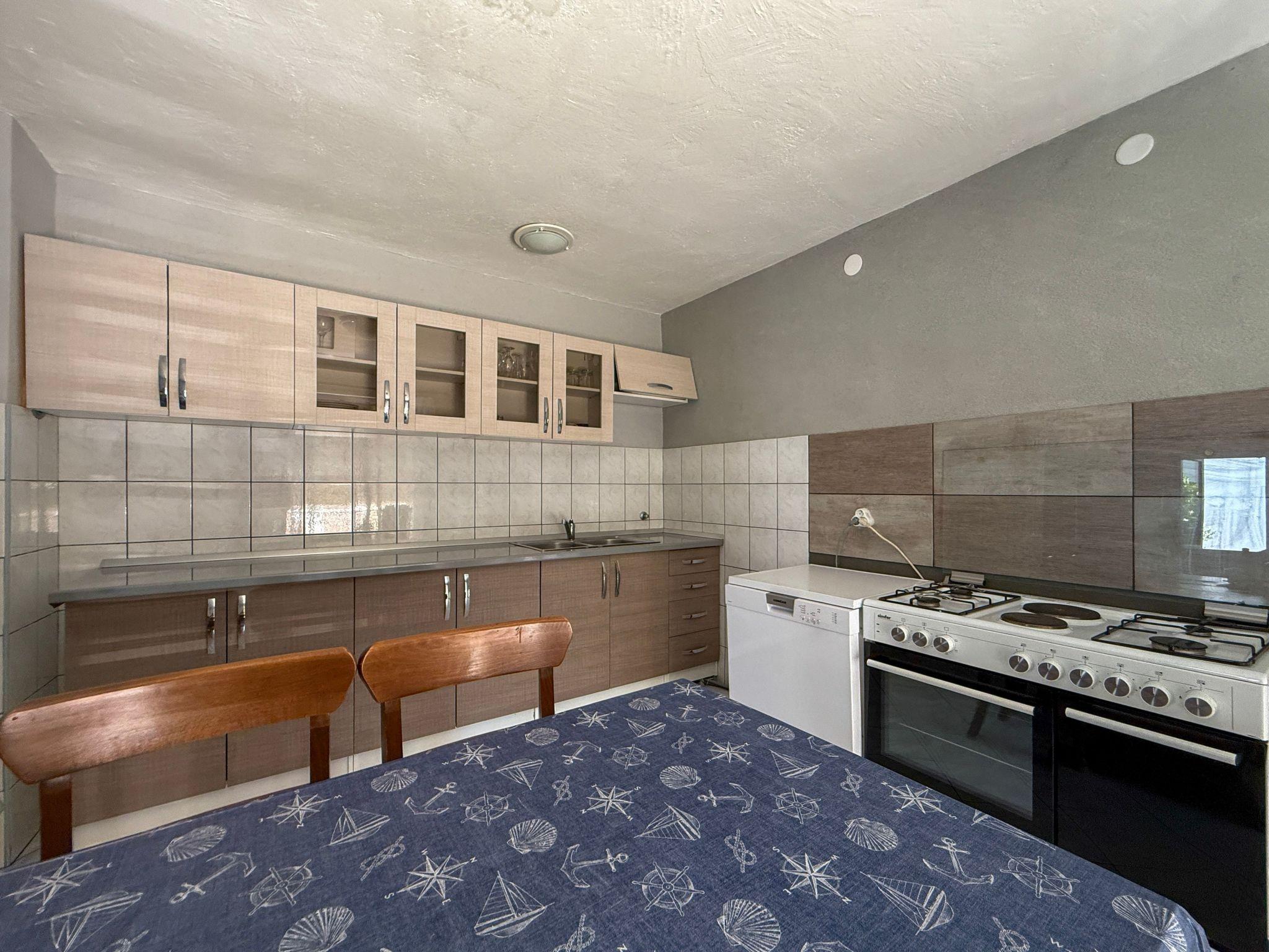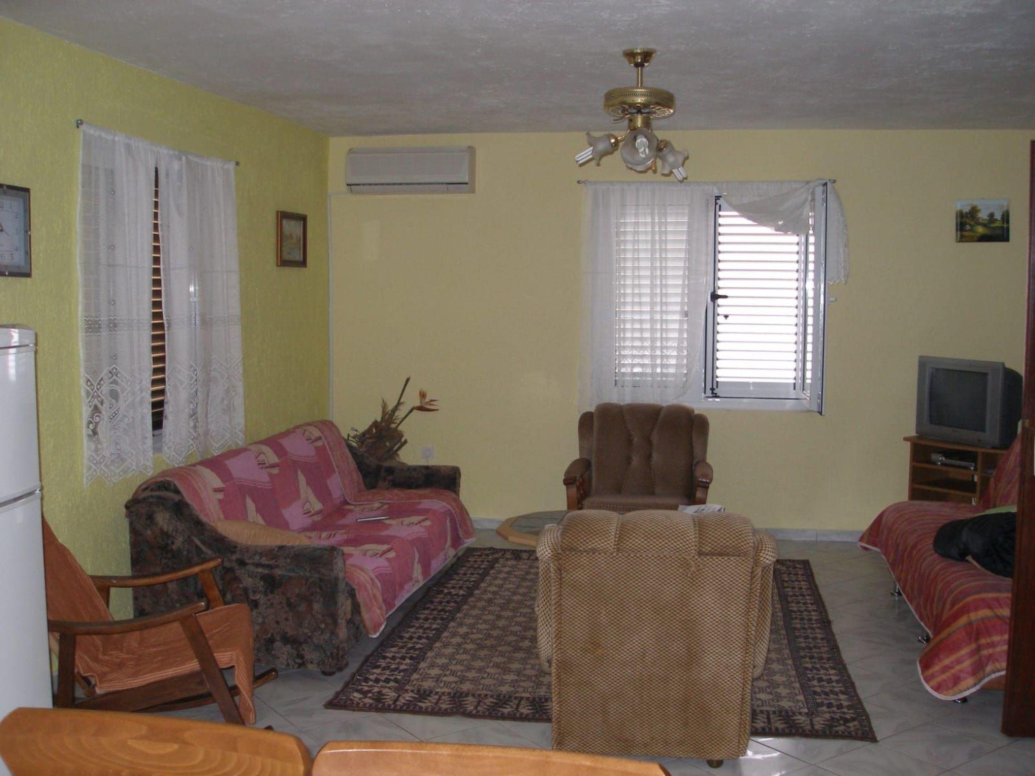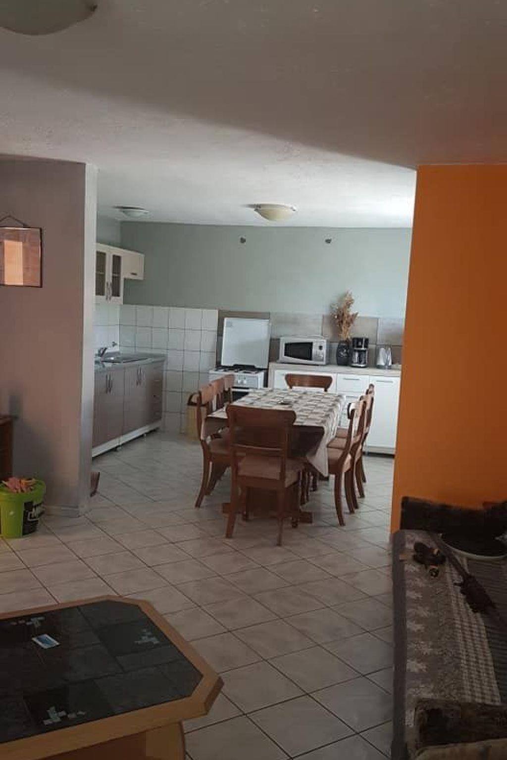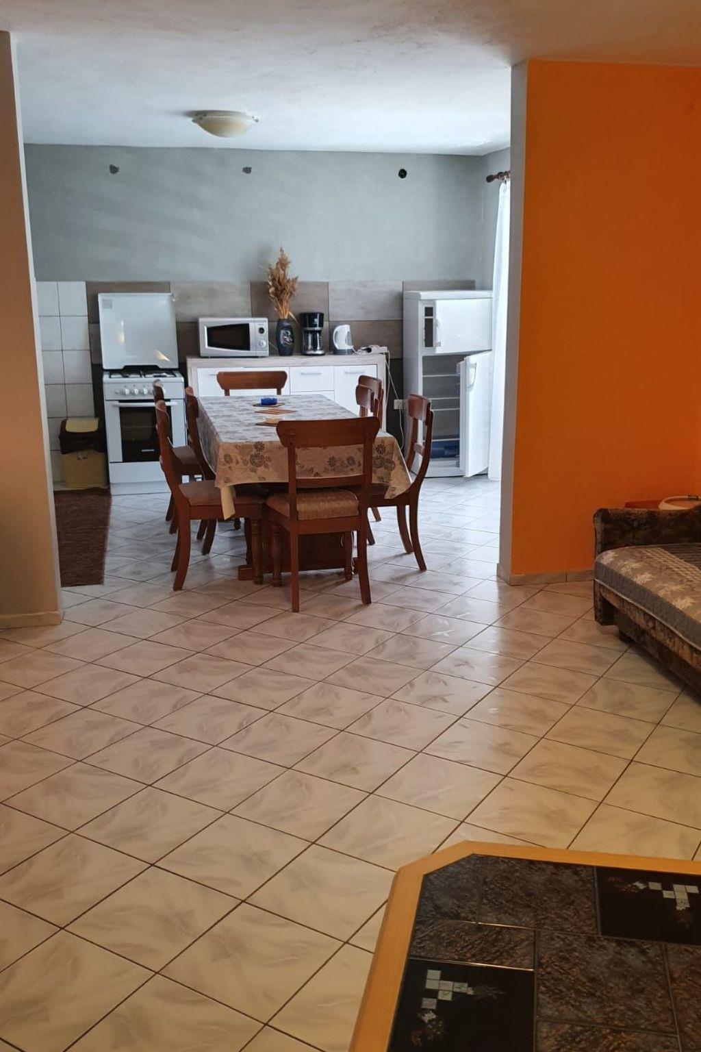Diese 71m² große Wohnung besteht aus einem großen Wohnzimmer mit Küchenzeile, die mit grundlegenden Kochutensilien (Geschirr, Kühlschrank mit Gefrierfach , Herd und grundlegende Kochgewürze) ausgestattet ist. Das Wohnzimmer heißt Sie mit einem antiken Kleiderschrank mit seiner "Geschichte" und ein paar winzigen Stücken der Antike, " die das Leben bedeutet" willkommen. Weiterhin finden Sie im Wohnbereich zwei Schlafsofas (jedes etwa 165 cm x 205 cm) für jeweils eine Person vor. Das separate Schlafzimmer wurde mit einem Doppelbett aus Eichenholz, aus der Zeit der Monarchie (180 cm x 200 cm, mit 2 anatomischen Matratzen, Bettzeug) ausgestattet.Zweite ziemme hat ein 2 etagen bet und noch ein couch da zu Das kleine Bad ist mit Dusche, WC und Handtücher versehen.Und noch eine wc extra. Klimaanlage, Internet Wi-Fi und Sat.-TV sind ebenfalls vorhanden.