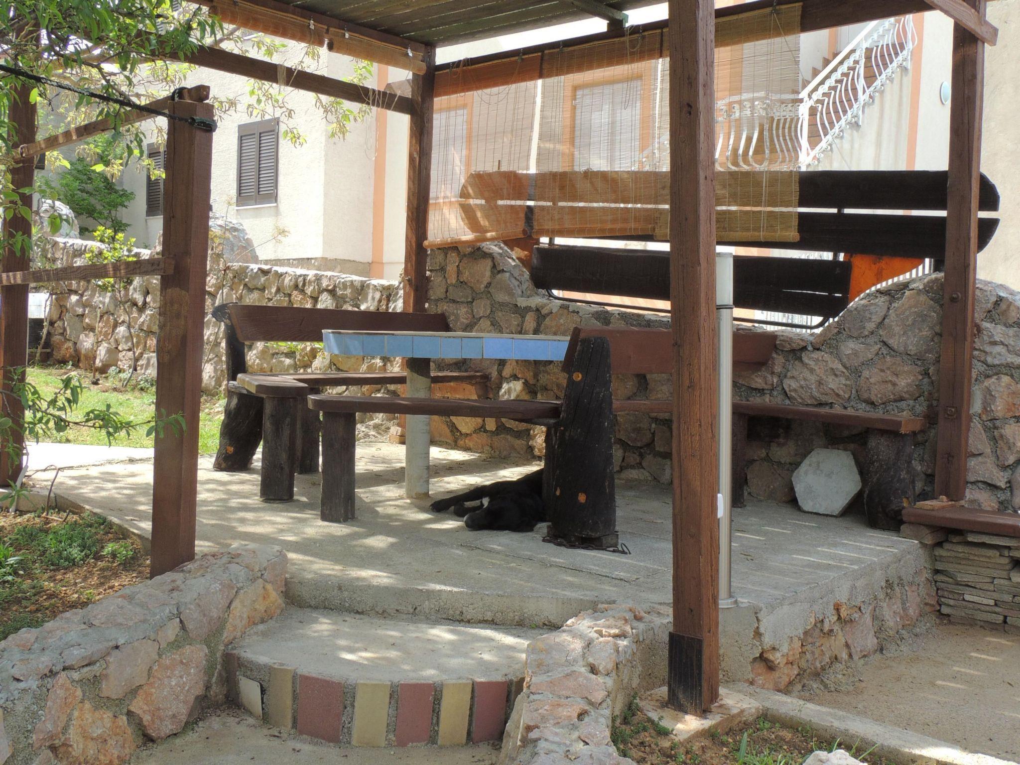 Vor dem Studio gibt es eine überdachte Terrasse, die mit Gartenmöbeln ausgestattet sind.