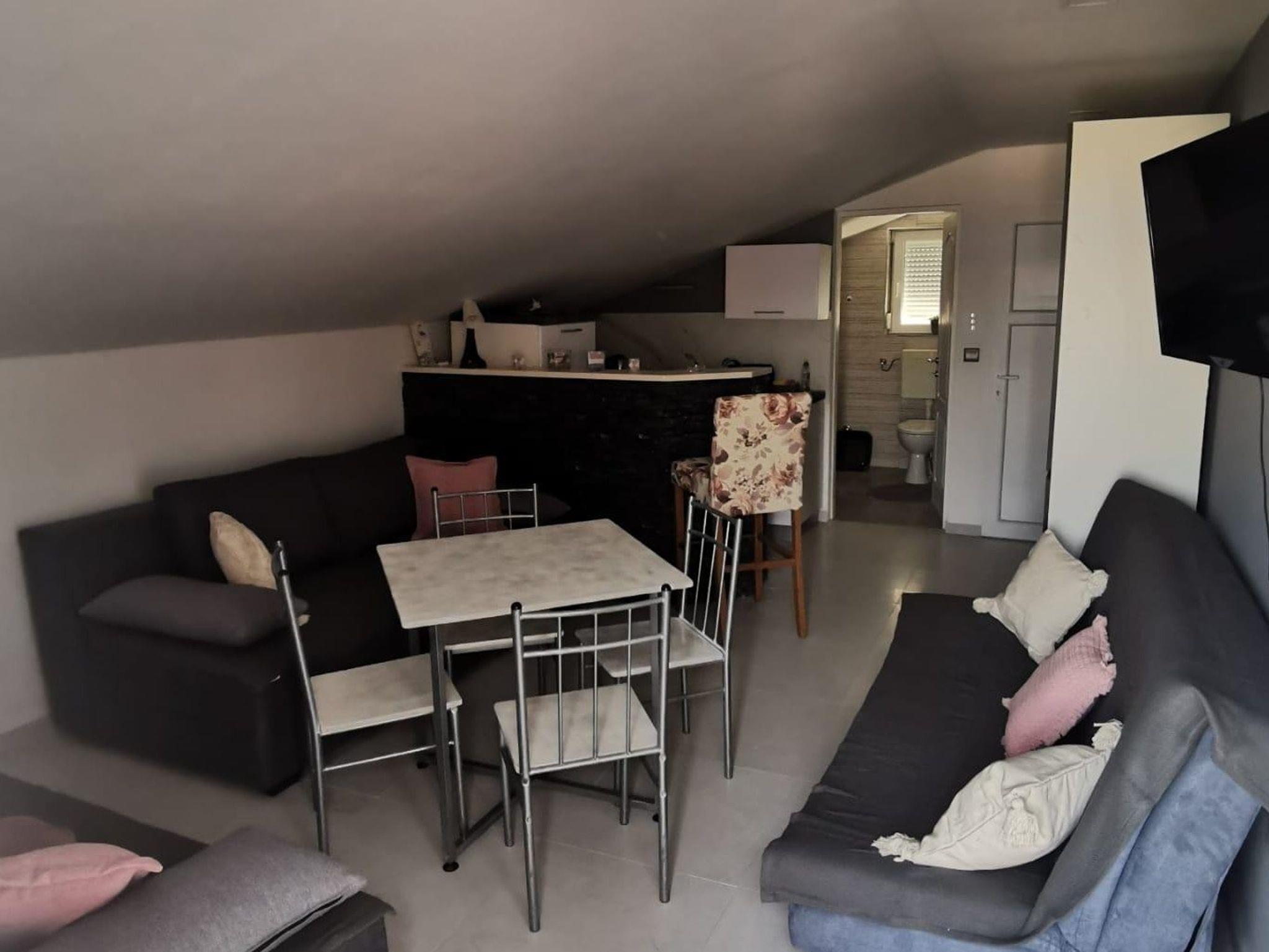 Studio bietet Platz für 5 Gäste. Die Betten sind in Wohnzimmer, innerhalb einer Gesamtfläche von 26m2, angeordnet. Die Gäste haben eine eigene Terrasse zur Verfügung, auf der sie in warmen Sommernächten genießen können. Das Studio-Apartment bietet Meerblick. Es ist erlaubt, Speisen auf dem Gemeinschafts-Grill vorzubereiten. In der Unterkunftseinheit besteht die Möglichkeit des Mitbringens von Haustieren gegen Aufpreis. IM PREIS INBEGRIFFEN: Kurtaxe, Endreinigung, Klimatisierung, Parkplatz, Internet, Bügeleisen, Föhn, Sonnenschirm. VERBINDLICHE ZUSÄTZLICHE KOSTEN: Aufzahlung für Kurzaufenthalte (prozentualer Zuschlag pro Nächtigungsanzahl: 30% - 1, 20% - 2, 10% - 3). UNVERBINDLICHE ZUSÄTZLICHE KOSTEN: Haustiere (5,00 € pro Nacht). Die Verfügbarkeit zusätzlicher Dienstleistungen in Ihrem reservierten Termin und die Preise derselben (falls nicht aufgeführt) müssen im Voraus überprüft werden. Zusätzliche Dienstleistungen die in der Zahlungsaufforderung nicht aufgeführt sind werden direkt beim Vermieter bezahlt, angenommen der Gast nutzt auch diese. Ermäßigung auf den Grundpreis: Gratistag 14=13 (bei einem Aufenthalt von 14 Tagen oder mehr erhalten Sie einen Gratistag für den Aufenthalt bis 31.12.26).