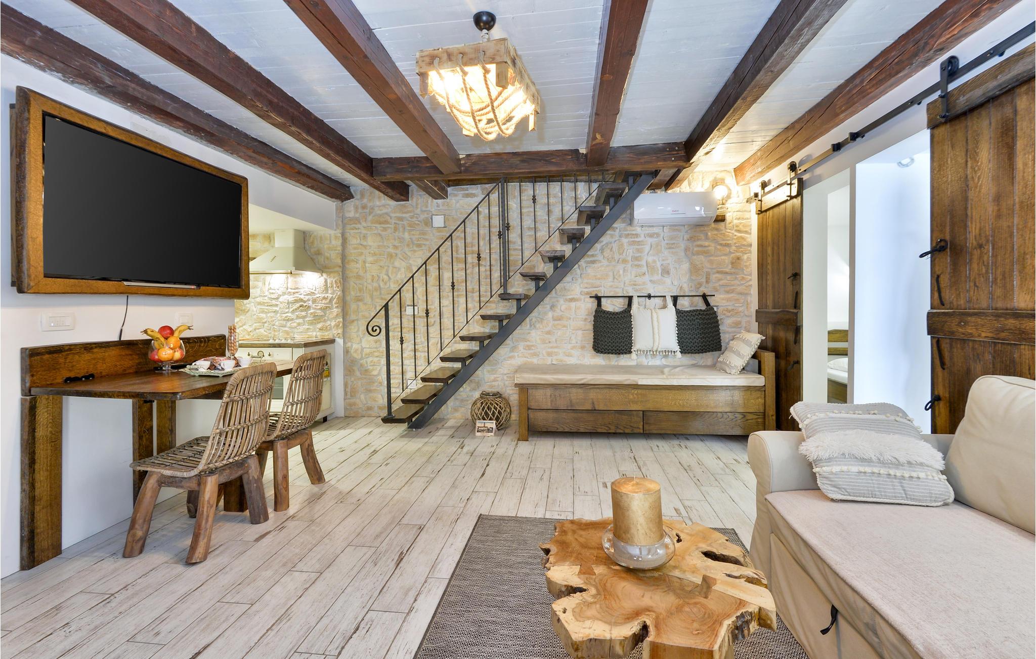 Das Innere des Hauses zeichnet sich durch eine schöne Kombinationen von Stein- und Holzelementen und liebevollen Details aus. Das Haus ist mit allem ausgestattet, was Sie für einen unbeschwerten Urlaub benötigen.