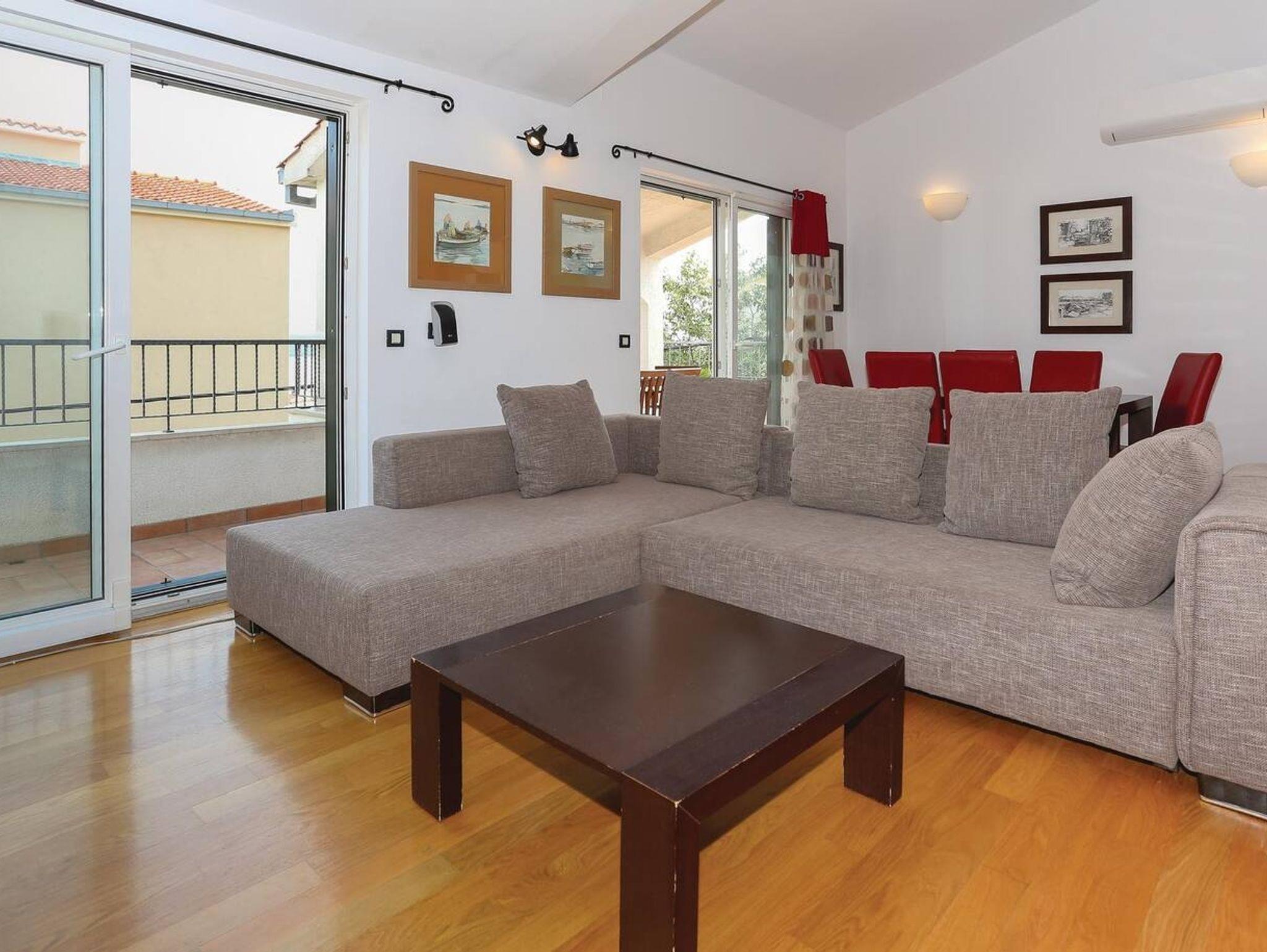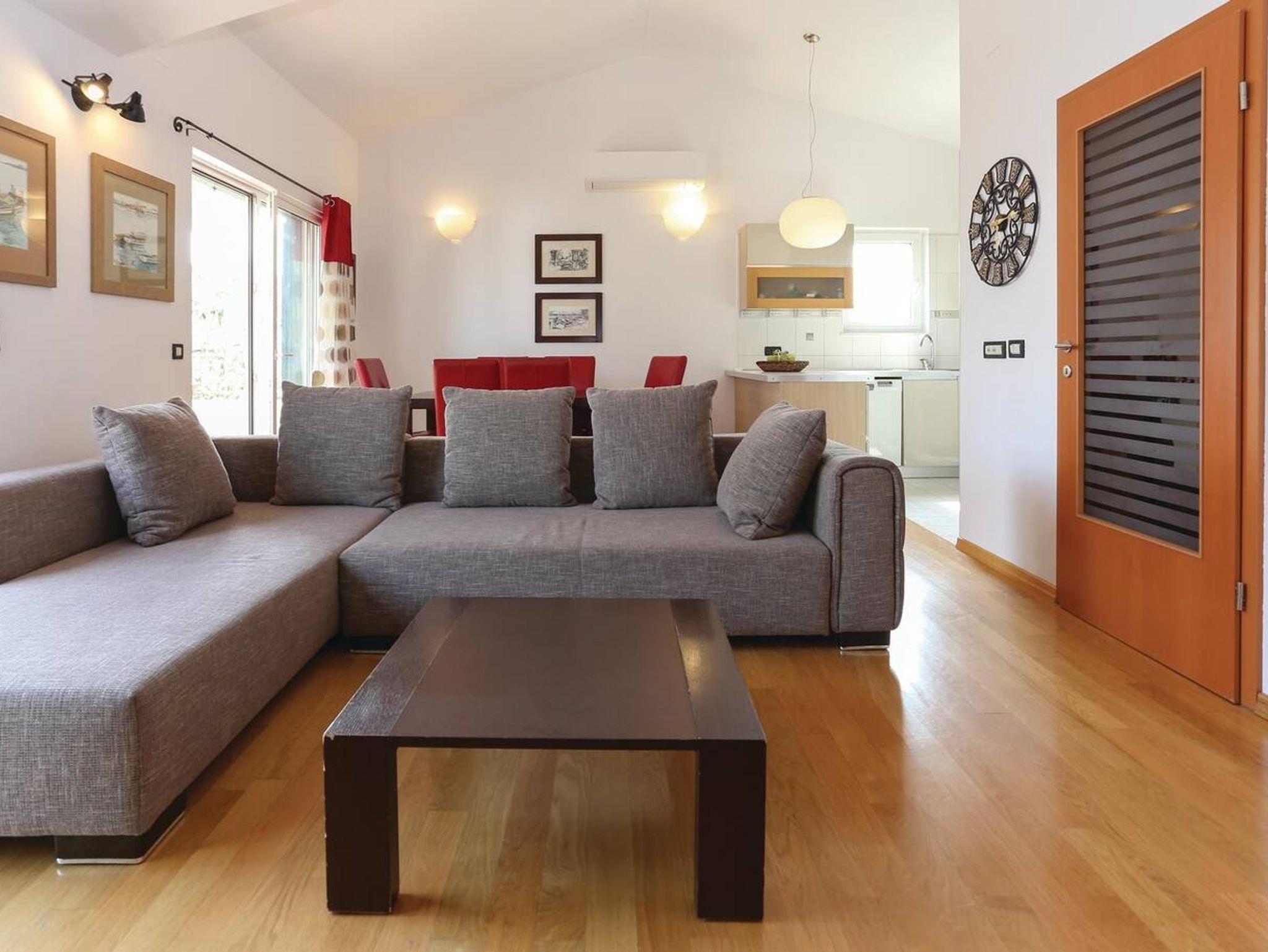 Haus bietet Platz für 10 Gäste. Die Betten sind in Schlafzimmern, die es 4 gibt, und in Wohnzimmer, innerhalb einer Gesamtfläche von 133m2, angeordnet. Die Gäste haben eine eigene Terrasse zur Verfügung, auf der sie in warmen Sommernächten genießen können. Das Haus bietet Meerblick. Für vollen Genuss und Entspannung gibt es einen privaten Grill für Gäste dieser Unterkunft. In der Unterkunftseinheit besteht die Möglichkeit des Mitbringens von Haustieren gegen Aufpreis. IM PREIS INBEGRIFFEN: Kurtaxe, Endreinigung, Klimatisierung, Parkplatz, Internet, Kinderbett, Bügeleisen, Bügelbrett, Föhn. VERBINDLICHE ZUSÄTZLICHE KOSTEN: Aufzahlung für Kurzaufenthalte (prozentualer Zuschlag pro Nächtigungsanzahl: 30% - 1, 20% - 2, 10% - 3). UNVERBINDLICHE ZUSÄTZLICHE KOSTEN: Haustiere (10,00 € pro Nacht), Zusatzbett (100,00 € pro Nacht). Die Verfügbarkeit zusätzlicher Dienstleistungen in Ihrem reservierten Termin und die Preise derselben (falls nicht aufgeführt) müssen im Voraus überprüft werden. Zusätzliche Dienstleistungen die in der Zahlungsaufforderung nicht aufgeführt sind werden direkt beim Vermieter bezahlt, angenommen der Gast nutzt auch diese. Ermäßigung auf den Grundpreis: Gratistag 14=13 (bei einem Aufenthalt von 14 Tagen oder mehr erhalten Sie einen Gratistag für den Aufenthalt bis 31.12.26).