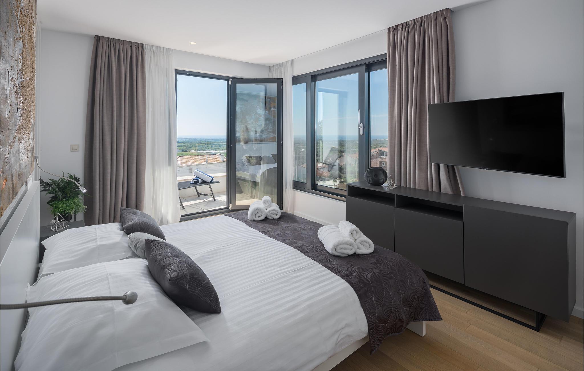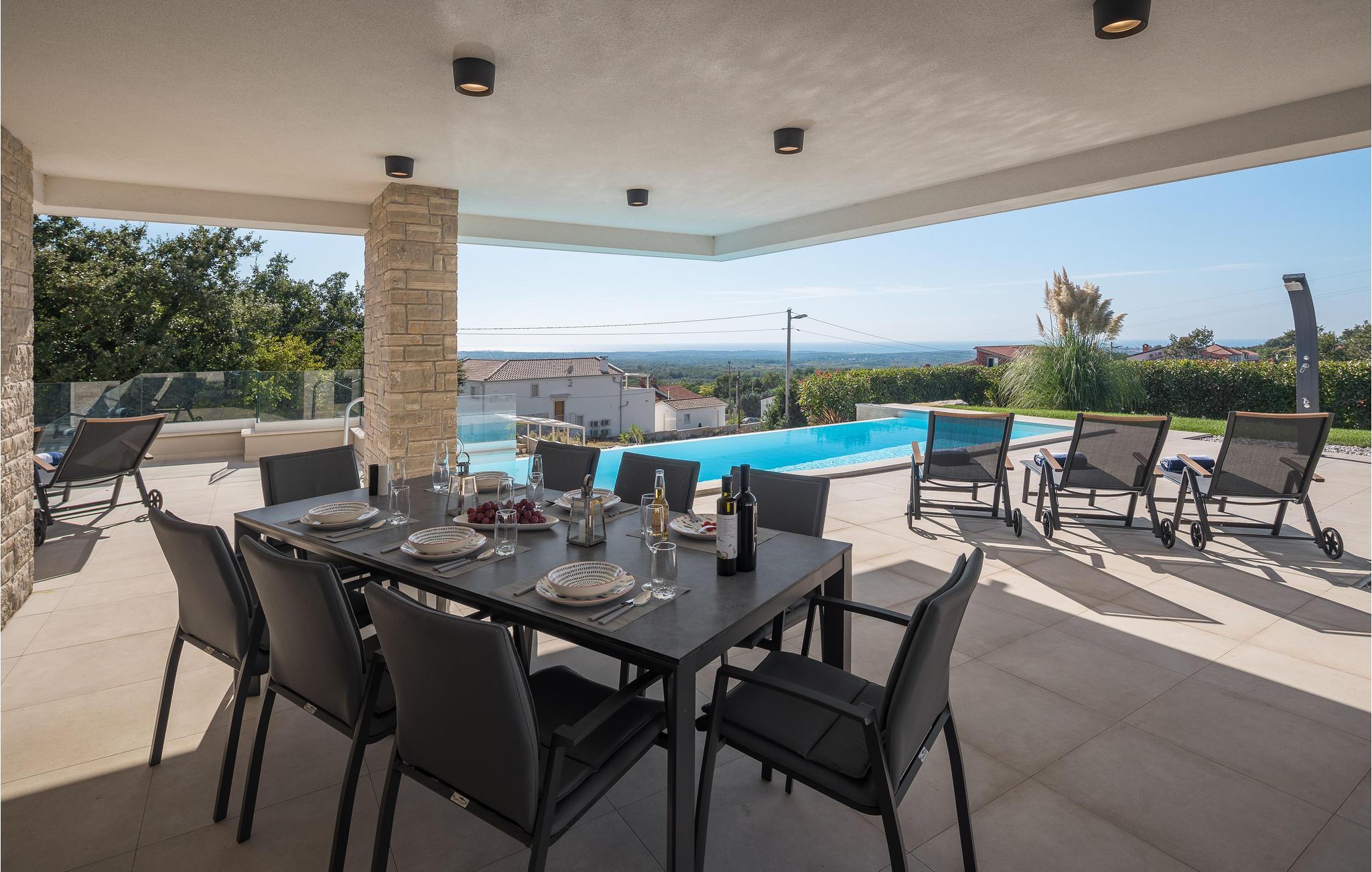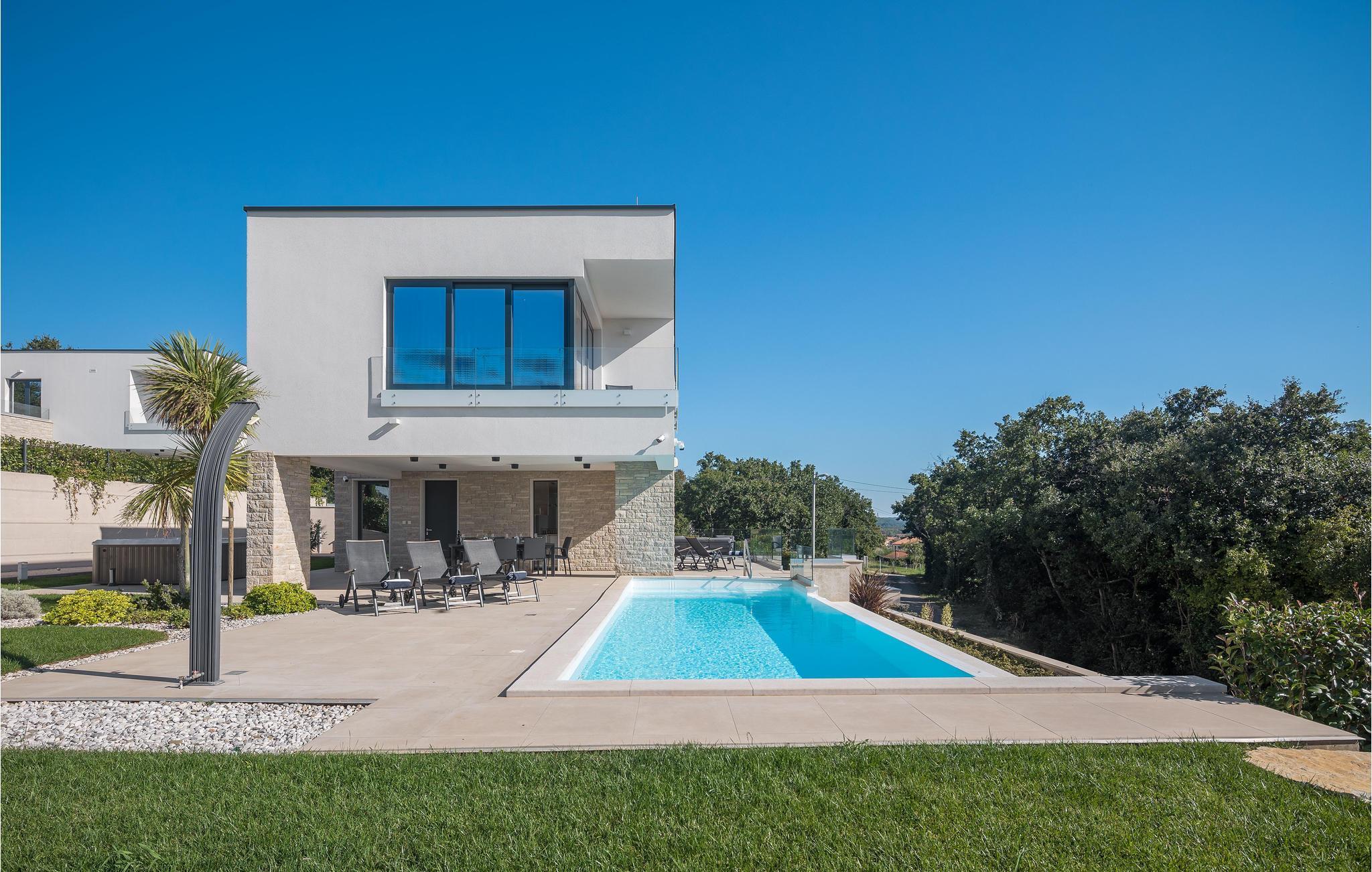 Betreten Sie dieses moderne und helle Haus, das Ihnen eine hohe Qualität und wunderbaren Komfort verspricht. Das Haus verspricht Ihnen viel Platz, der sich über drei Etagen verteilt und Ihnen ein großartiges Angebot bietet. Genießen Sie Ihre Auszeit vom Alltag in der Sauna oder spielen mit Ihren Lieben Darts oder Tischtennis. Neben dem süßen Wohnen im Inneren laden Sie die Terrassen und der Garten zum Verweilen ein. Schwimmen Sie im Pool oder Entspannen Sie im Whirlpool und blicken über die Landschaft bis hin zur Adria.
