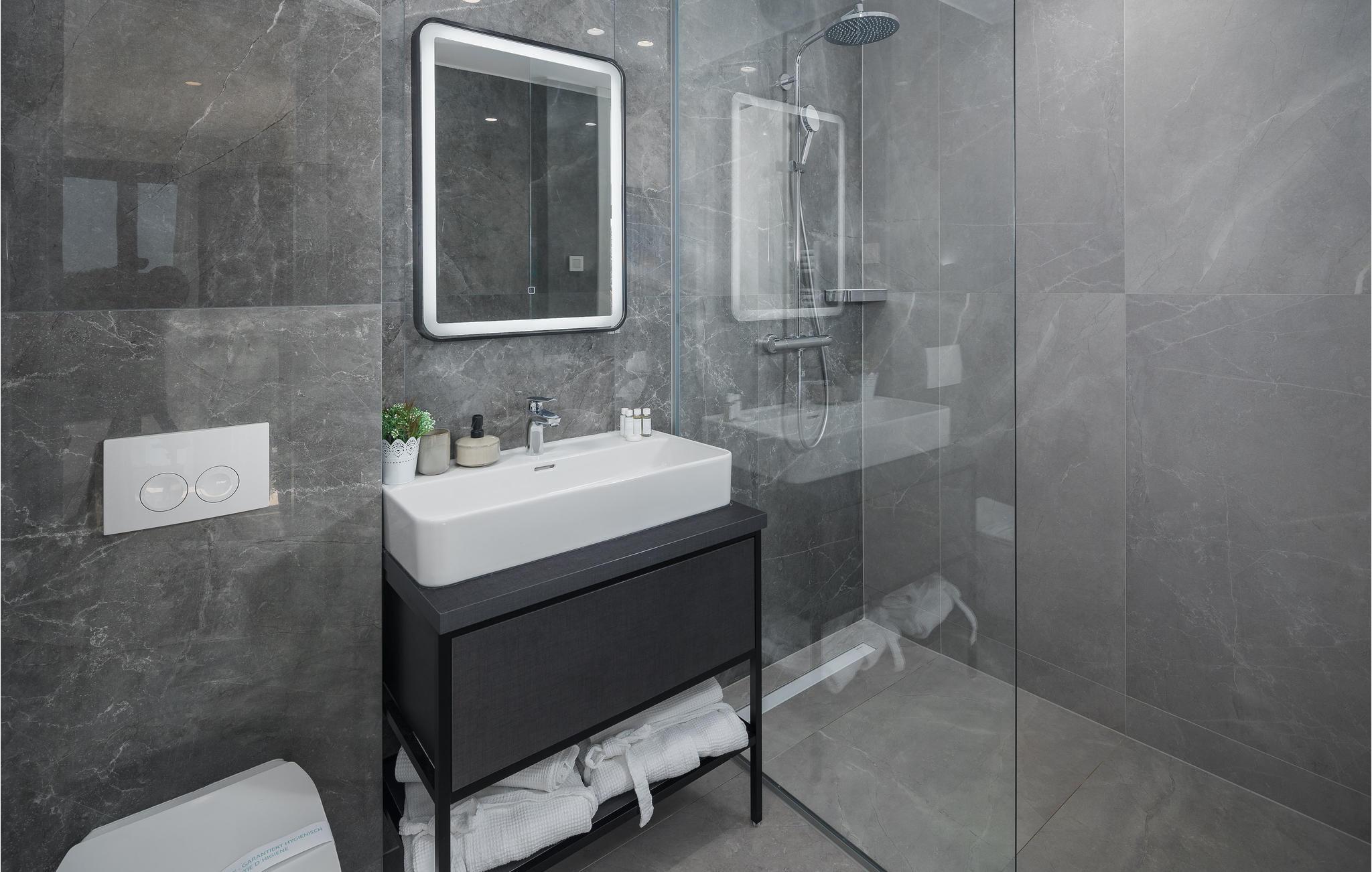 Badezimmer 5m2 (nr. 1) - WC. Warmes und kaltes Wasser. Dusche