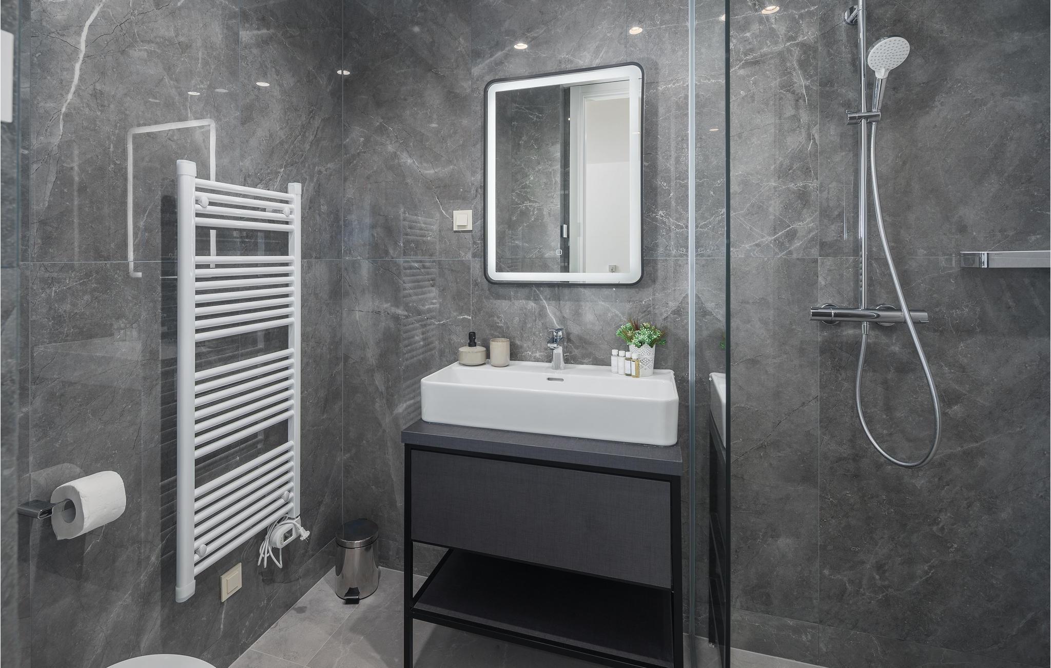 Badezimmer 5m2 (nr. 2) - WC. Warmes und kaltes Wasser. Dusche