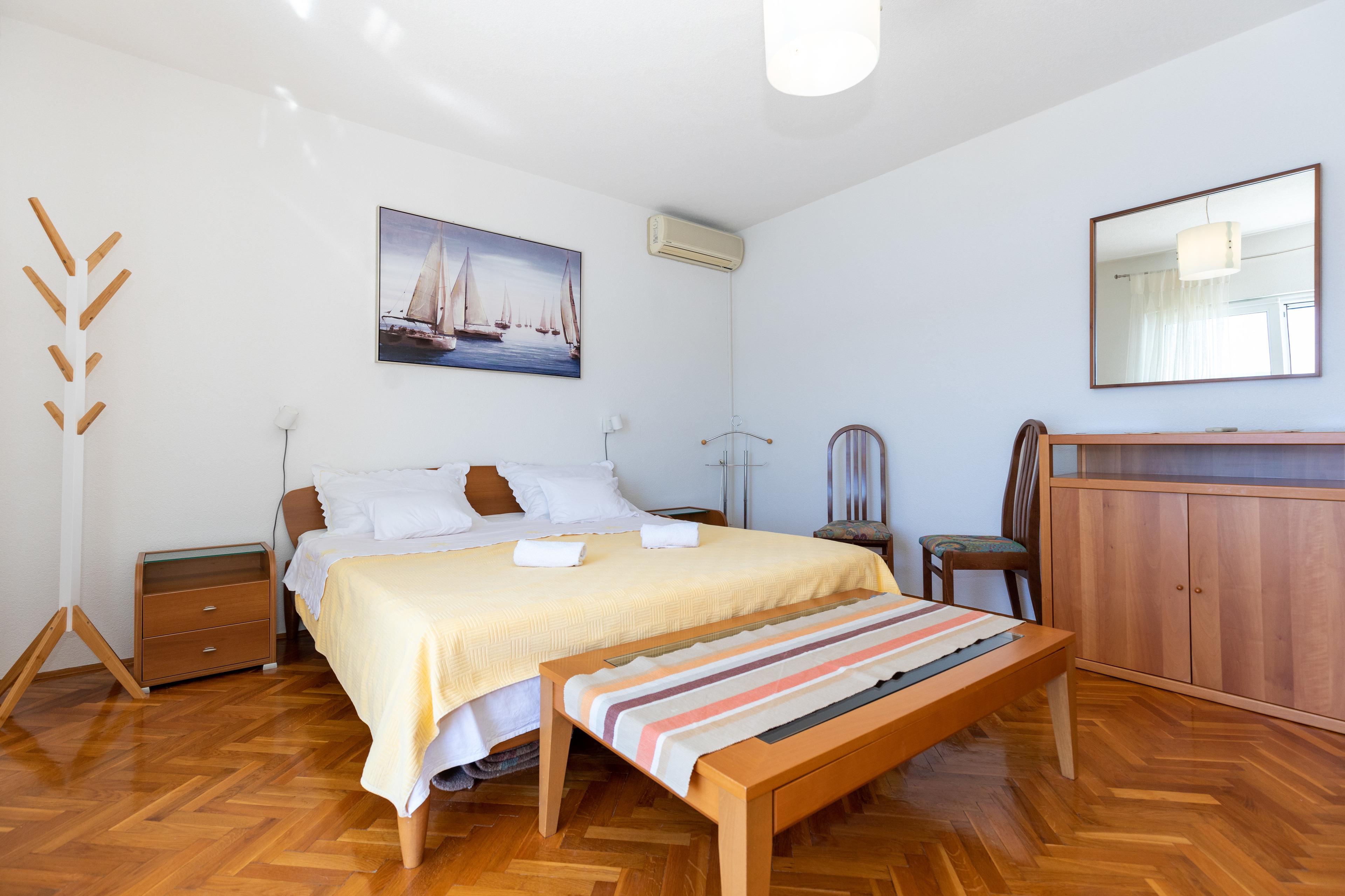 Apartment has one bedroom with a double bed, another bedroom with a bed for two. Beds are equipped with linen. The living room has a corner sofa with the possibility of sleeping for one person. The kitchen is equipped with all the necessary appliances (microwave, kettle, refrigerator, freezer, stove, dishes). Towels, washing machine and hair dryer are included in the bathroom. Air conditioning and a satellite programs are installed. Pet is allowed.