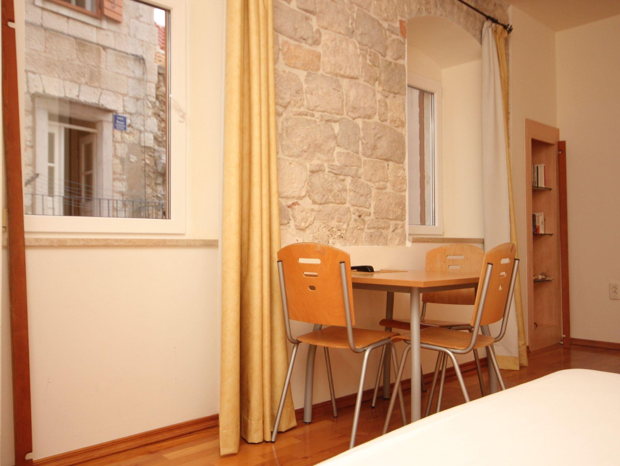 Studio bietet Platz für 3 Gäste. Die Betten sind in Schlafzimmern, die es 1 gibt, und in Esszimmer, innerhalb einer Gesamtfläche von 21m2, angeordnet. Die reservierte Unterkunftseinheit hat keinen Balkon und keine Terrasse. IM PREIS INBEGRIFFEN: Kurtaxe, Endreinigung, Klimatisierung, Internet, Kinderbett, Föhn. VERBINDLICHE ZUSÄTZLICHE KOSTEN: Aufzahlung für Kurzaufenthalte (prozentualer Zuschlag pro Nächtigungsanzahl: 30% - 1, 20% - 2, 10% - 3). UNVERBINDLICHE ZUSÄTZLICHE KOSTEN: Zusatzbett (8,00 € pro Nacht). Die Verfügbarkeit zusätzlicher Dienstleistungen in Ihrem reservierten Termin und die Preise derselben (falls nicht aufgeführt) müssen im Voraus überprüft werden. Zusätzliche Dienstleistungen die in der Zahlungsaufforderung nicht aufgeführt sind werden direkt beim Vermieter bezahlt, angenommen der Gast nutzt auch diese. Ermäßigung auf den Grundpreis: Aktion (erzielen Sie während der Buchung zusätzliche Ermäßigung von 10%).