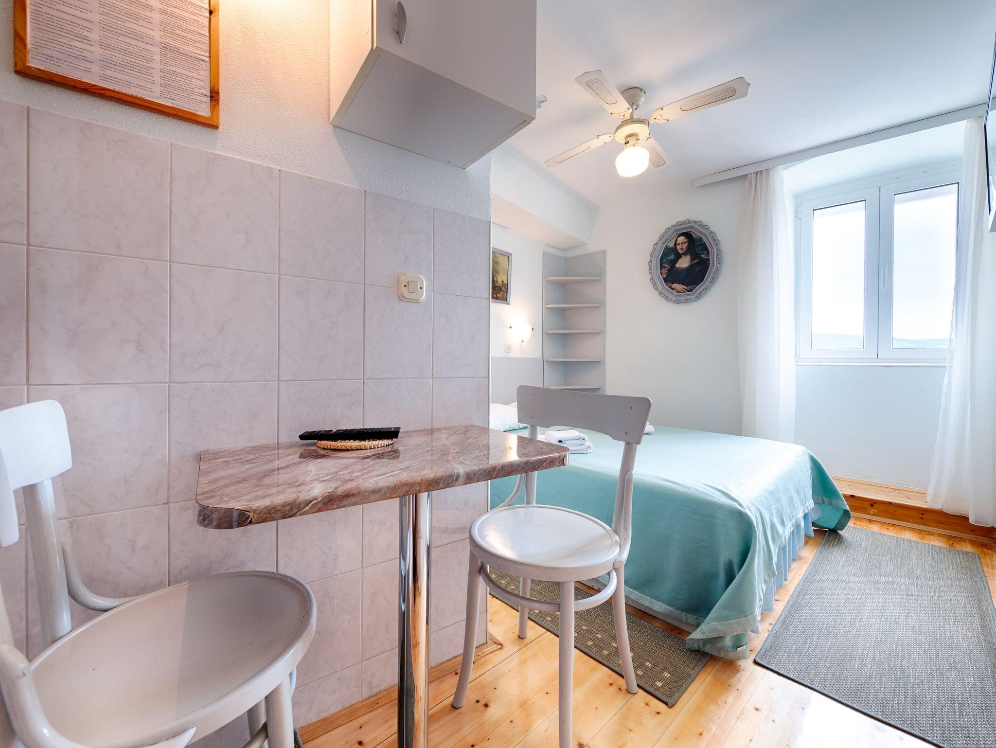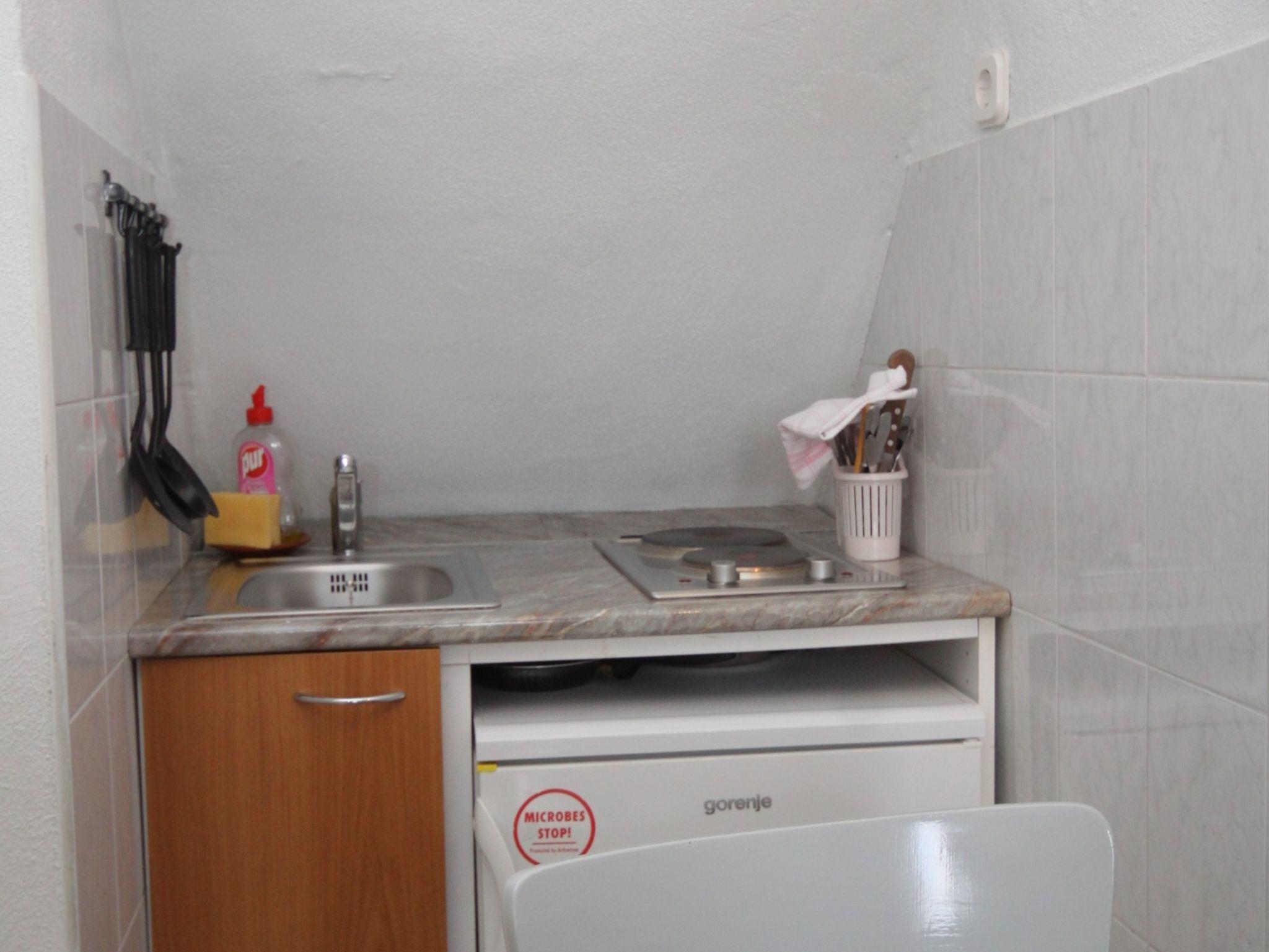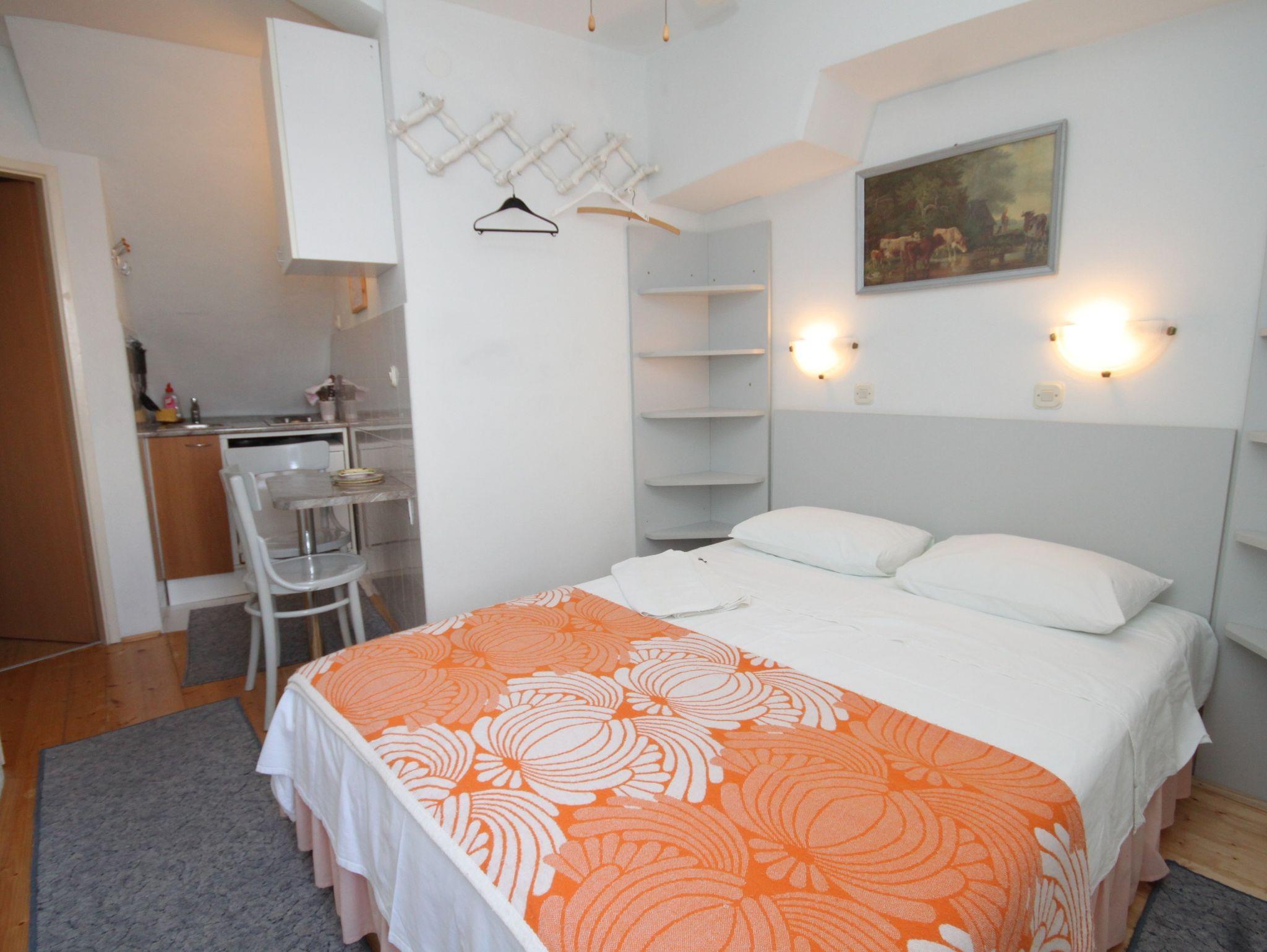 Studio bietet Platz für 2 Gäste. Die Betten sind in Schlafzimmern, die es 1 gibt, innerhalb einer Gesamtfläche von 11m2, angeordnet. Das Studio-Apartment bietet Meerblick. In der Unterkunftseinheit besteht die Möglichkeit des Mitbringens von Haustieren gegen Aufpreis. Die reservierte Unterkunftseinheit verfügt über einen gemeinsamen Balkon. Die reservierte Unterkunftseinheit verfügt über einen gemeinsame Terrasse. IM PREIS INBEGRIFFEN: Kurtaxe, Endreinigung, Klimatisierung, Internet, Bügeleisen, Bügelbrett, Föhn. VERBINDLICHE ZUSÄTZLICHE KOSTEN: Aufzahlung für Kurzaufenthalte (prozentualer Zuschlag pro Nächtigungsanzahl: 30% - 1, 20% - 2, 10% - 3). UNVERBINDLICHE ZUSÄTZLICHE KOSTEN: Haustiere (3,00 € pro Nacht). Die Verfügbarkeit zusätzlicher Dienstleistungen in Ihrem reservierten Termin und die Preise derselben (falls nicht aufgeführt) müssen im Voraus überprüft werden. Zusätzliche Dienstleistungen die in der Zahlungsaufforderung nicht aufgeführt sind werden direkt beim Vermieter bezahlt, angenommen der Gast nutzt auch diese.