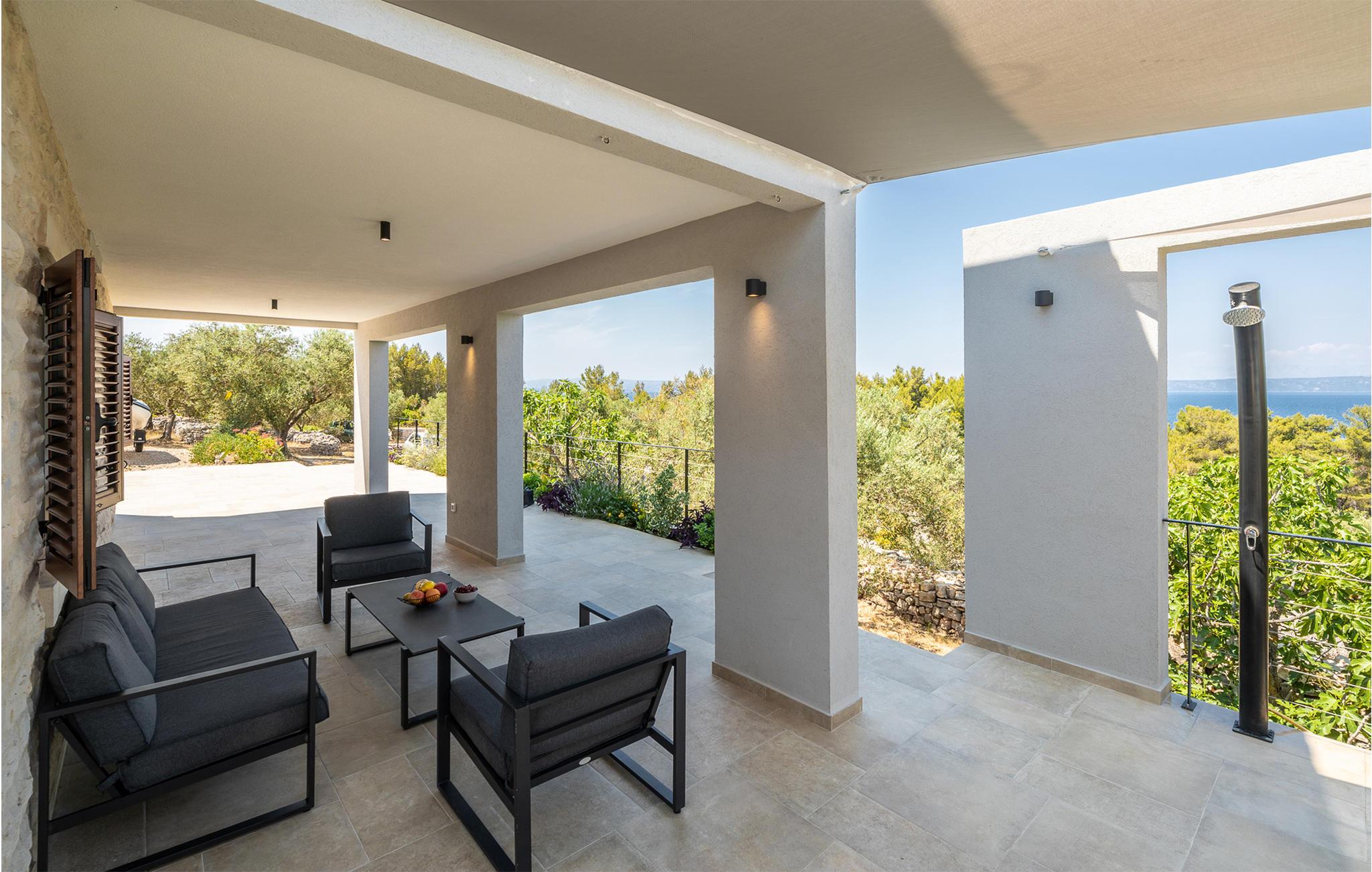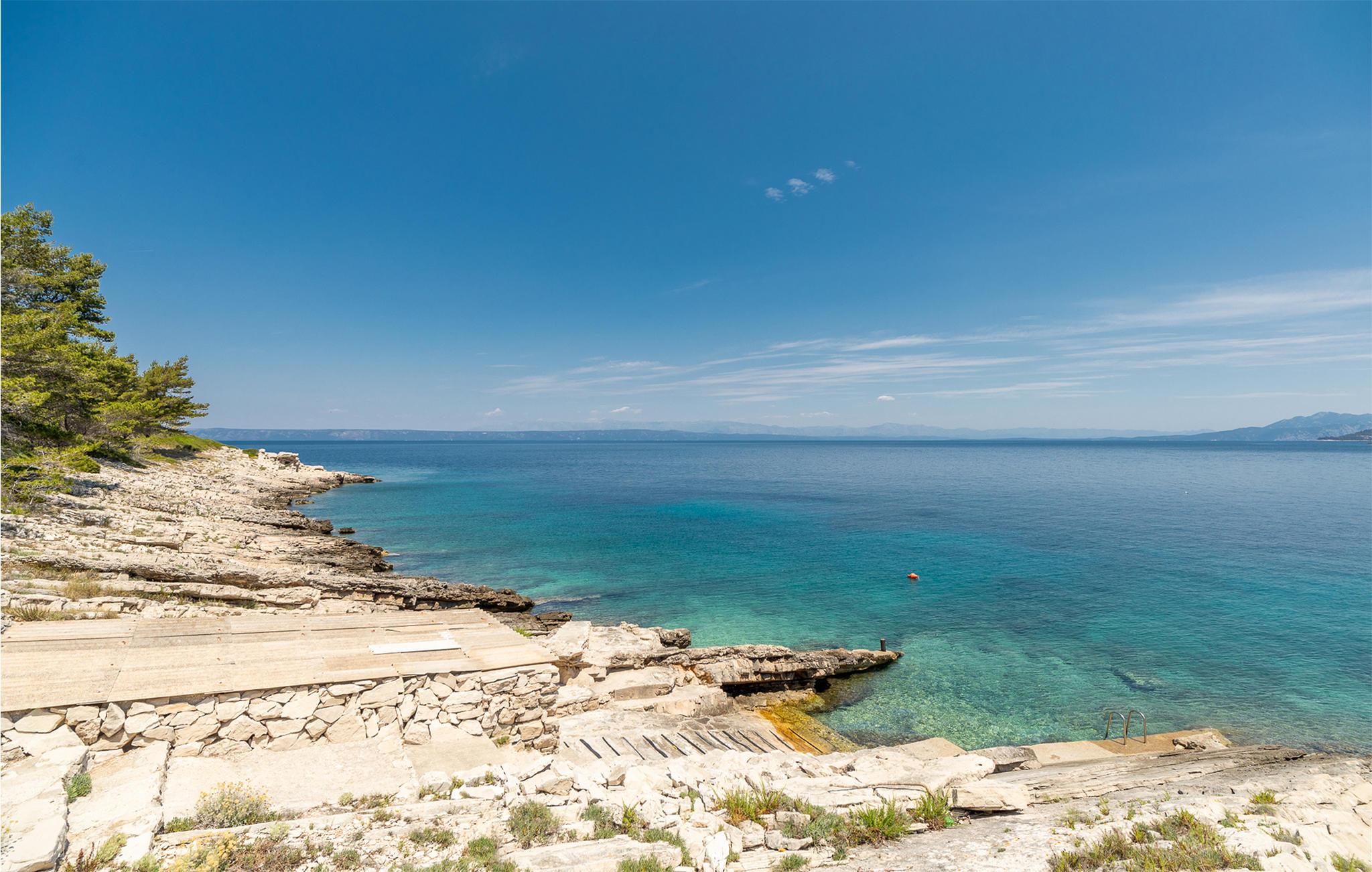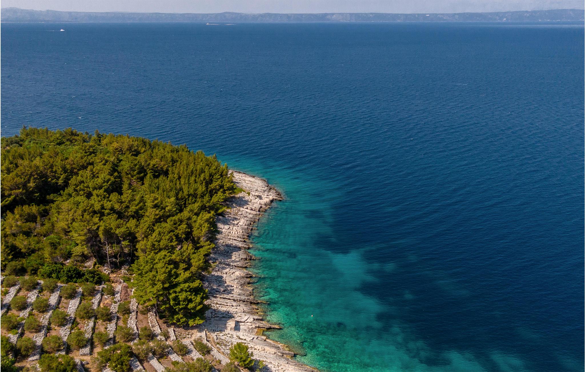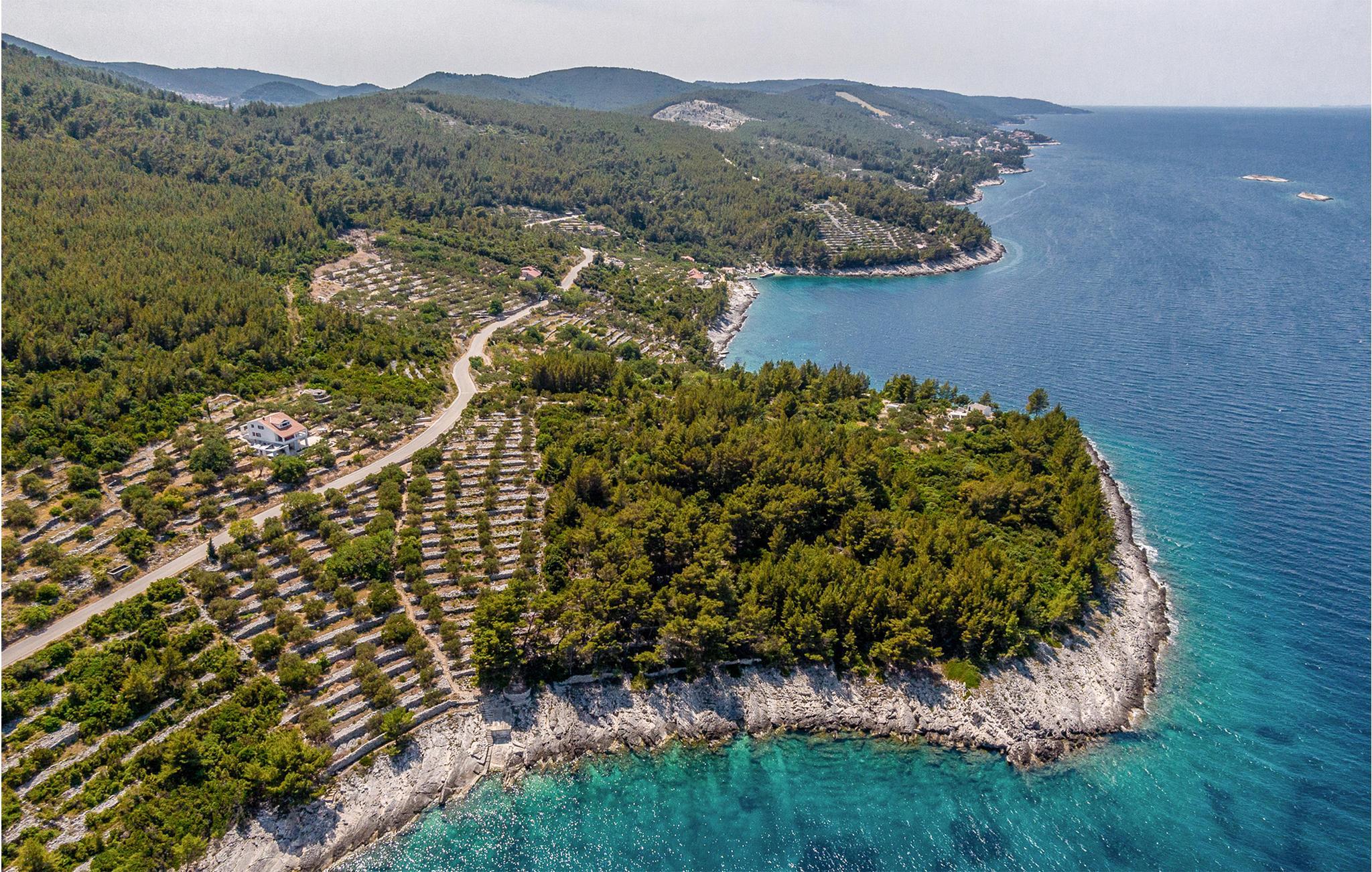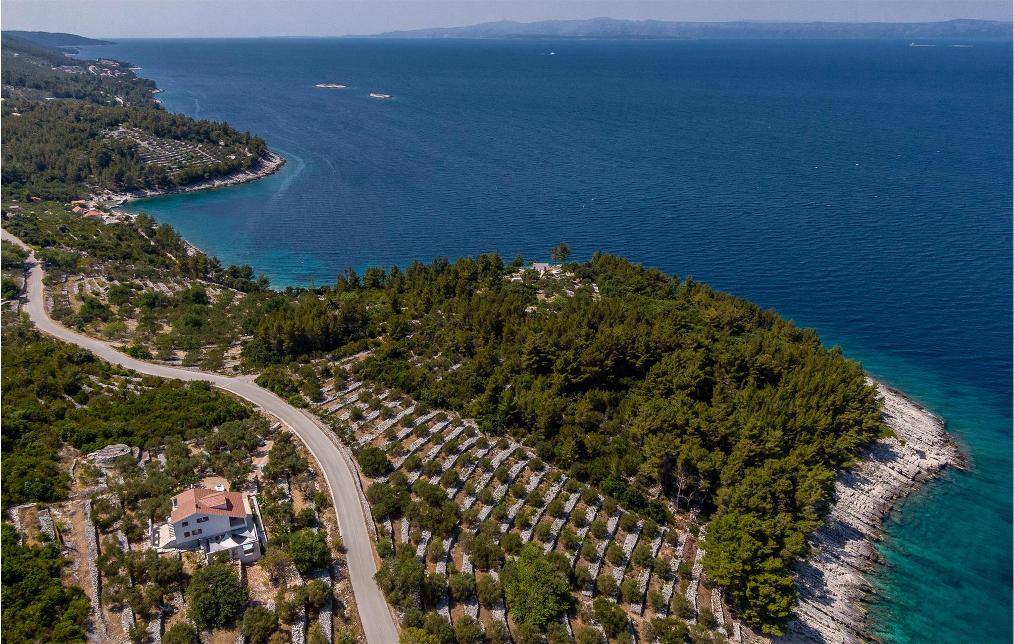 Im Erdgeschoss befinden sich Wohnzimmer, Küche und zusätzliche Toilette, während Innentreppen zum ersten Stock führen, in dem drei Schlafzimmer, zwei Bäder und eine überdachte Terrasse mit Meerblick sind. Im Außenbereich erwarten Sie eine überdachte Terrasse mit guten Gartenmöbeln sowie eine offene Terrasse mit Grill und Whirlpool. Da das Grundstück ca. 40.000 m² groß ist und der nächste Nachbar etwa 500 m entfernt ist, genießen Sie hier absolute Privatsphäre und Ruhe. Nach dem Überqueren der lokalen Straßen können Sie das gesamte Grundstück bis zum Meer mitbenutzen. Ein kleiner Weg führt zum Meer und eine Badestelle, die mit Pinienbäumen umgeben ist. Dies ist ein idealer Ort zum Angeln, an dem jedes Jahr von der Küste aus Angelwettbewerbe organisiert werden. Wenn Sie interessiert sind, haben Sie die Möglichkeit, von einem Boot aus zu angeln oder Ausflüge zu den nahe gelegenen Inseln Hvar und Scedro zu unternehmen.