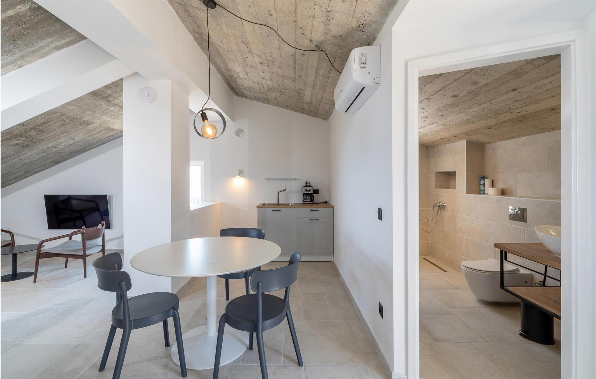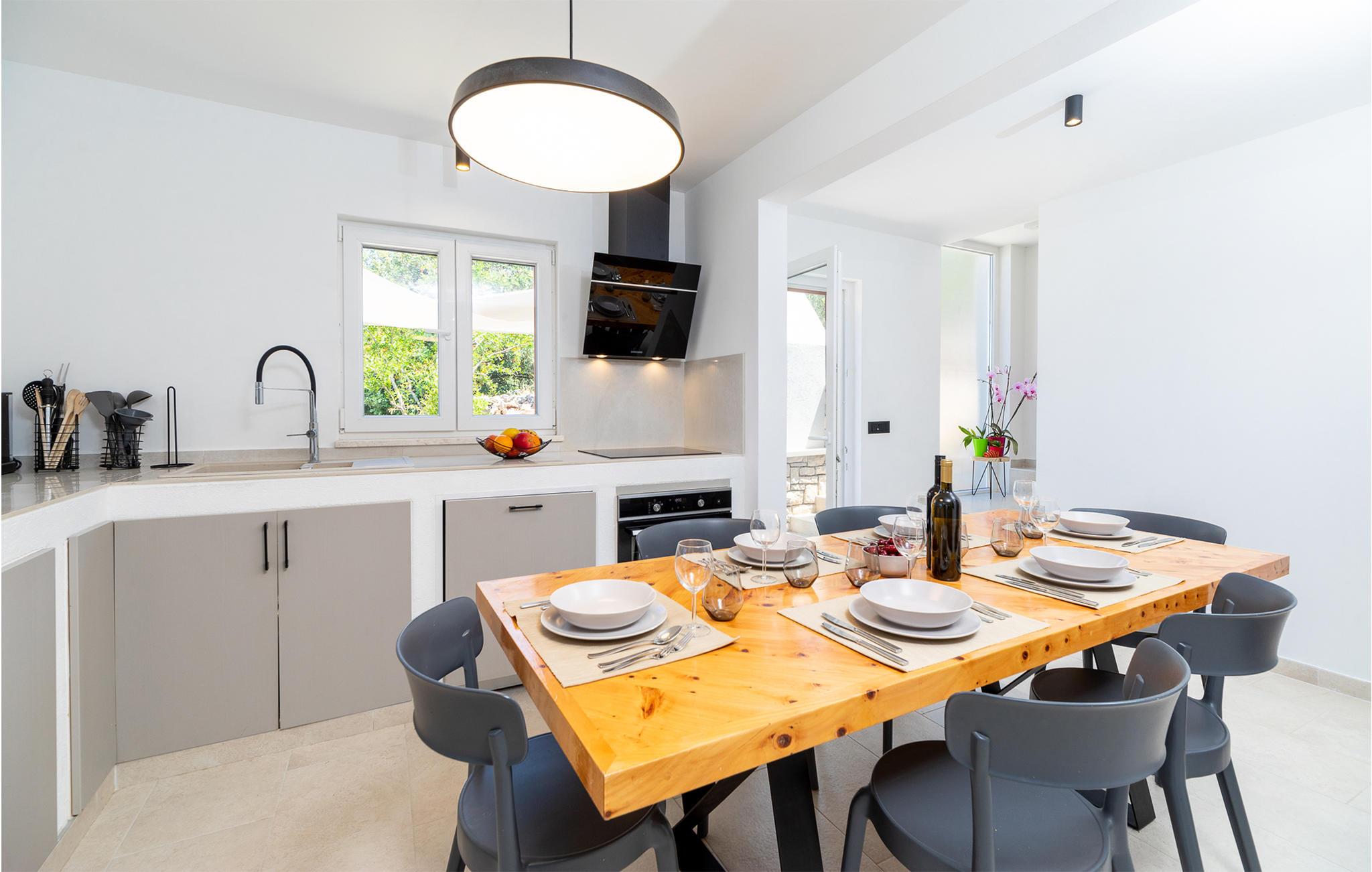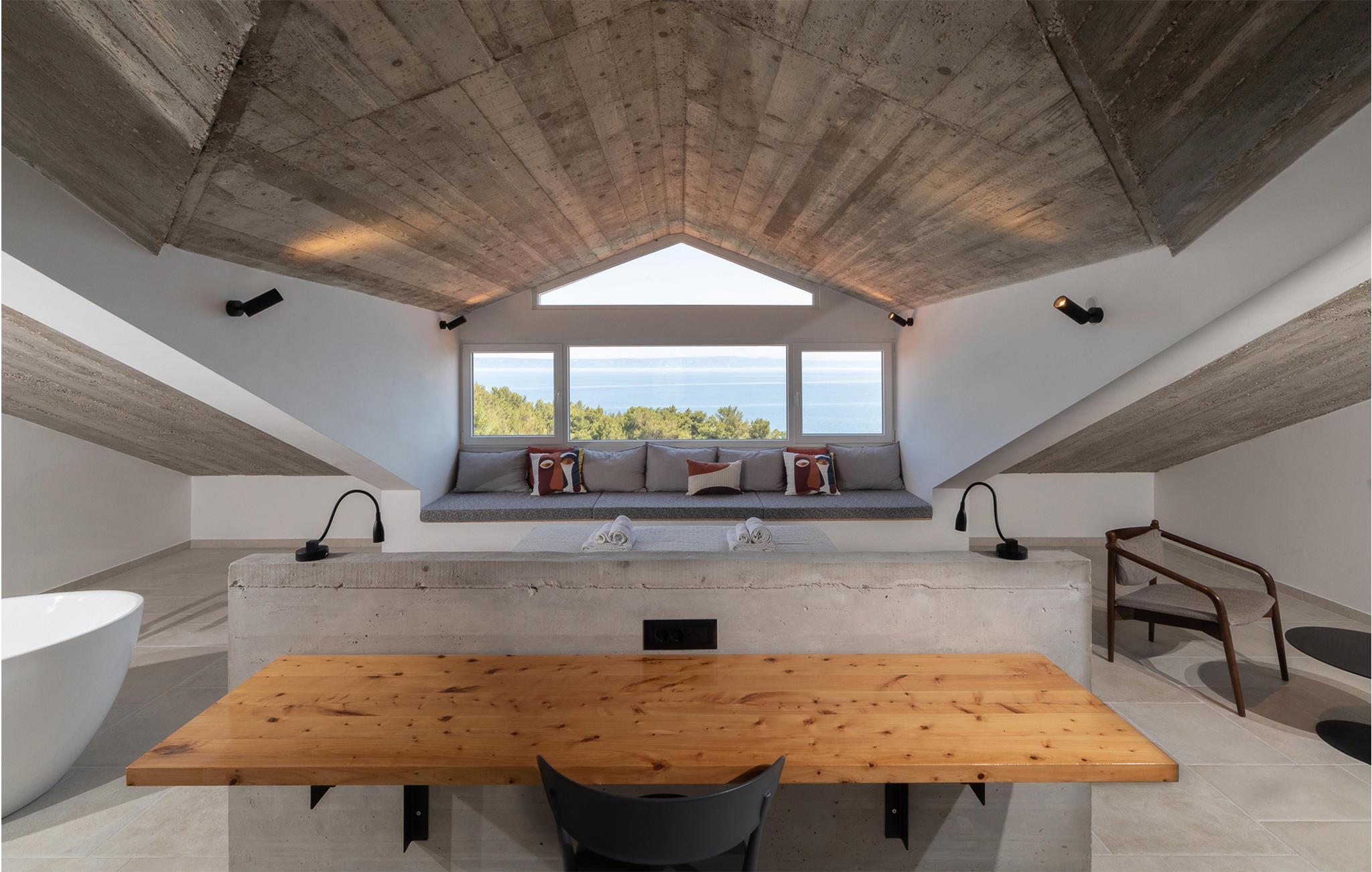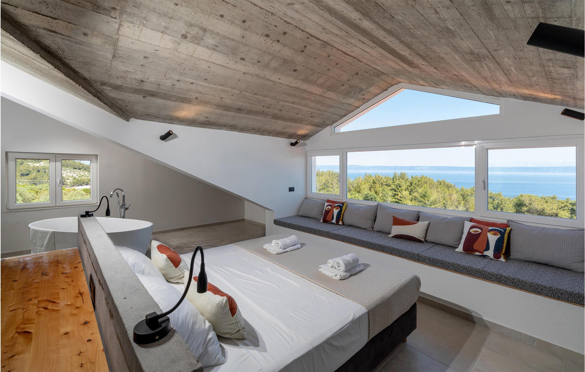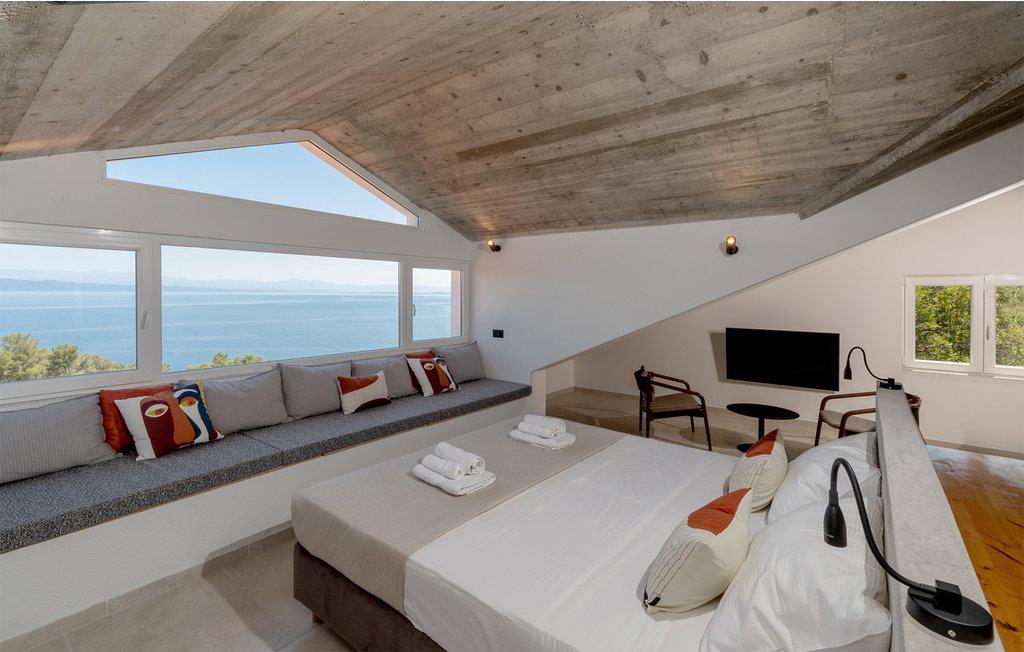 In idyllischer Lage, abseits von Touristenzentren und umgeben von Natur mit fantastischem Blick auf das Meer, befindet sich dieses wunderbares Ferienhaus. Es liegt auf einem weitläufigen Grundstück in der Bucht Žukova, auf der Nordseite der Insel Korcula. Das mit Liebe zum Detail eingerichtete Urlaubsdomizil lädt Familien und Freunde zum Verweilen ein. Das Haus besteht aus zwei Teilen, einem Penthouse-Apartment, das aus einem offenen Schlafzimmer mit freistehender Badewanne besteht, einer praktischen Küche mit Kühlschrank und Bar sowie einem separaten Schlafzimmer, das sich ideal für Kinder eignet, damit eine kleinere Familie zusammen bleiben kann.