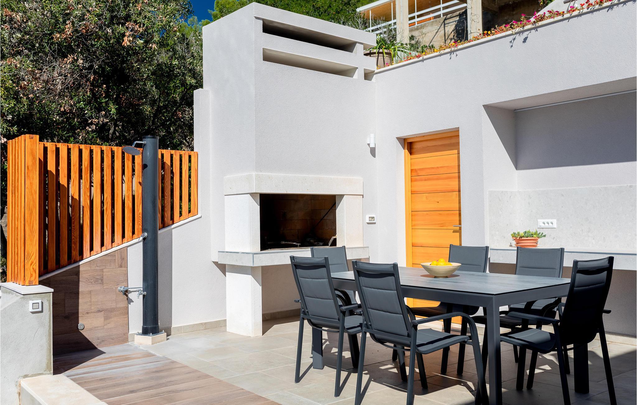 In diesem Ferienhaus können Sie mit Ihren Lieben einen erholsamen Urlaub verbringen, in dem kaum ein Urlaubswunsch offen bleibt. Bis zu 8 Personen finden in den 4 Schlafzimmern Platz. Durch bodentiefe Fenster haben Sie eine fantastische Aussicht auf das Meer. Die Einrichtung des vollklimatisierten Ferienhauses ist modern und geschmackvoll und die Ausstattung sehr gut.