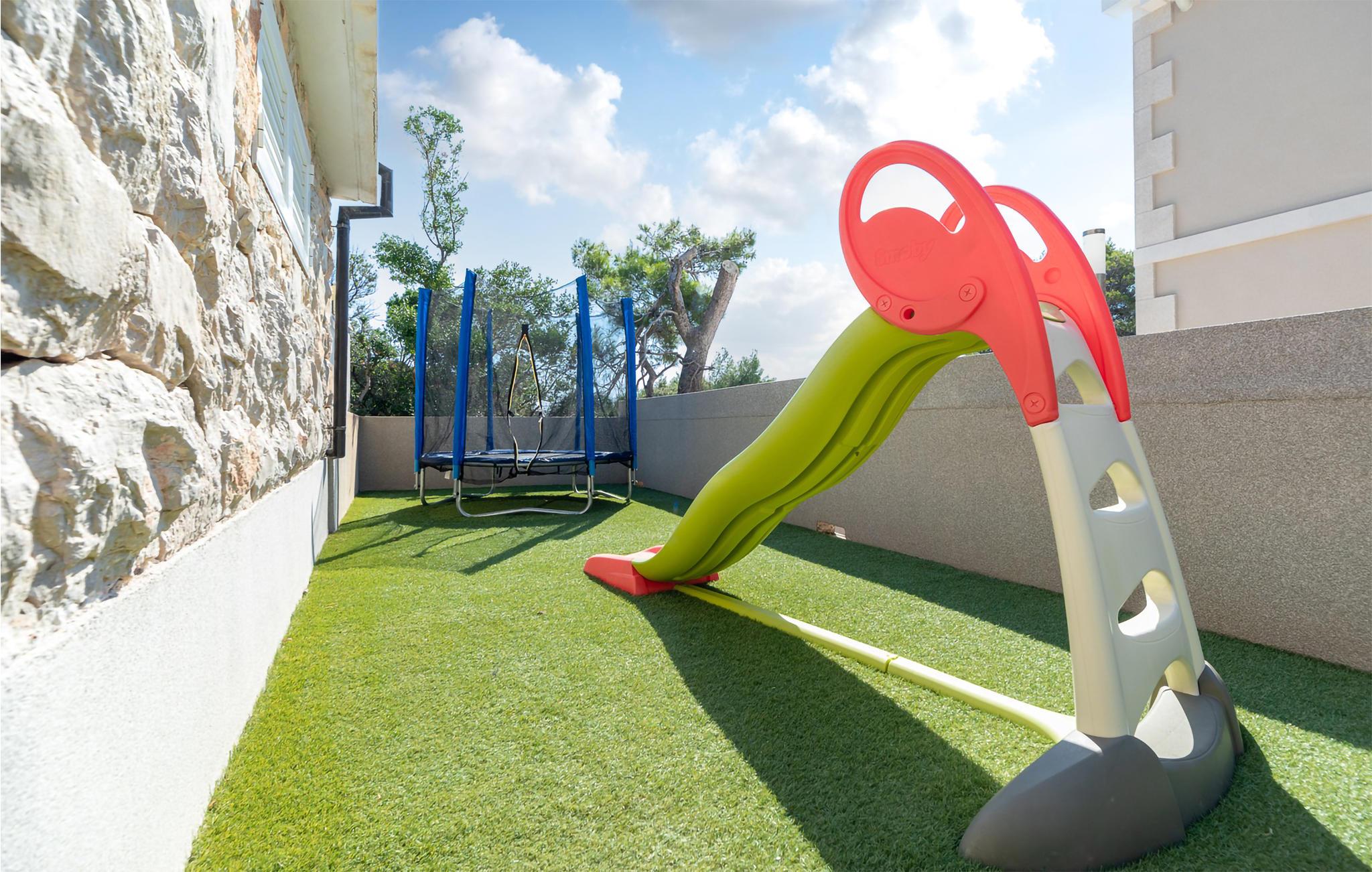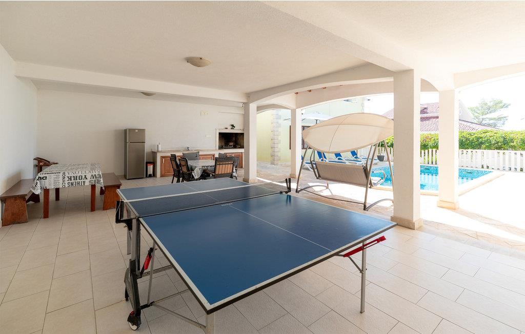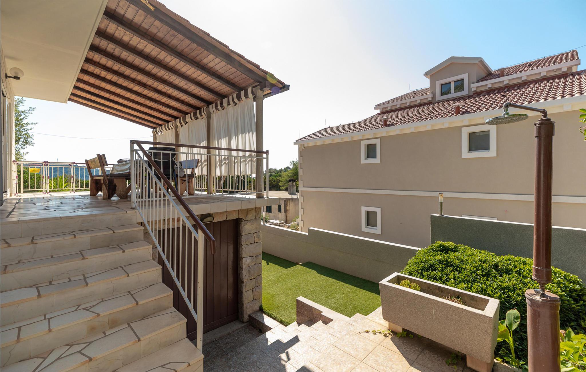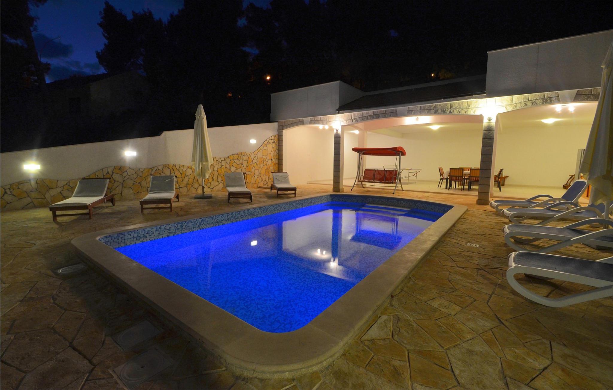 Möchten Sie Ihren Urlaub in einem Poolferienhaus in einer unglaublichen Lage verbringen? Dieses helle und modern eingerichtete Ferienhaus ist von Pinienbäumen und mediterranen Pflanzen umgeben. Nur wenige Schritte trennen Sie vom Meer an der Südküste der Insel Korcula. Im Erdgeschoss liegen zwei Schlafzimmer und zwei Badezimmer, während Sie im Dachgeschoss zwei weitere Bäder und drei Schlafzimmer finden. Die Poolterrasse bietet Ihnen noch eine Miniküche, Tischtennis, Grill und Gartenmöbel. Eine Ecke nur für Kinder, mit einem Trampolin und einer Rutsche, liegt auch auf dem Grundstück. Die überdachte Dachgeschossterrasse bietet Ihnen eine herrliche Aussicht. Nur fünf Autominuten vom Haus befinden sich einige kinderfreundliche Kiesstrände.