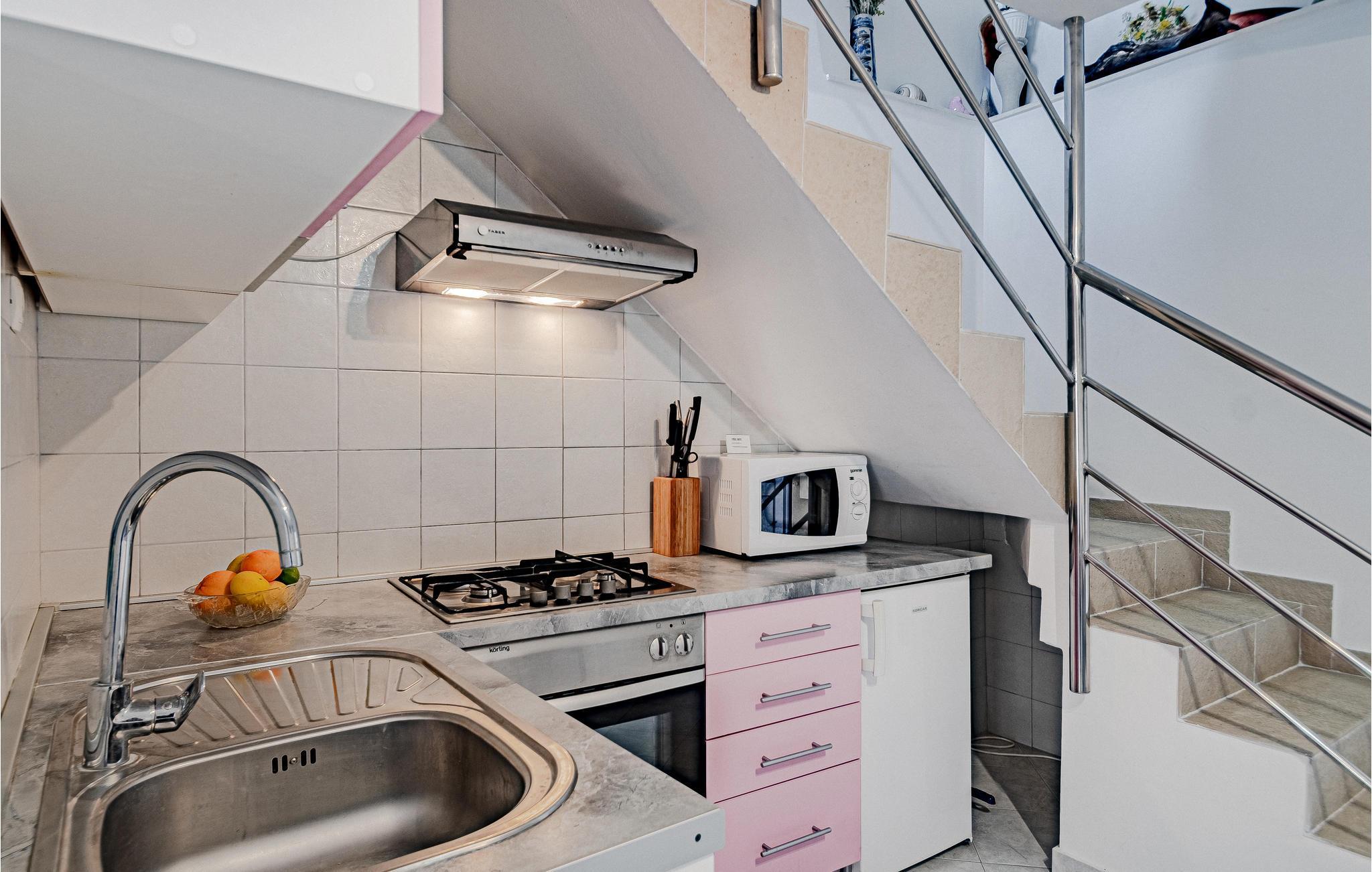 Diese zweistöckige Ferienwohnung liegt im Zentrum des malerischen Fischerdorfes Racisce und in der Nähe des Kiesstrandes. Die Küche, Esszimmer und das Bad finden Sie im Erdgeschoß. Die Innentreppe führt in das Obergeschoß zum Schlafzimmer mit Terrasse, von welcher sich ein wunderschöner Blick auf die Adria erstreckt. Wer die Ruhe liebt und weitab vom Massentourismus seinen Urlaub verbringen möchte, ist hier genau richtig. Naturliebhaber können sich auf Spaziergänge durch Olivenhaine und Weinberge freuen, während Sonnenanbeter, westlich von Racisce, von den Buchten mit Kiesstrand Vaja und Samograd begeistert sein werden.