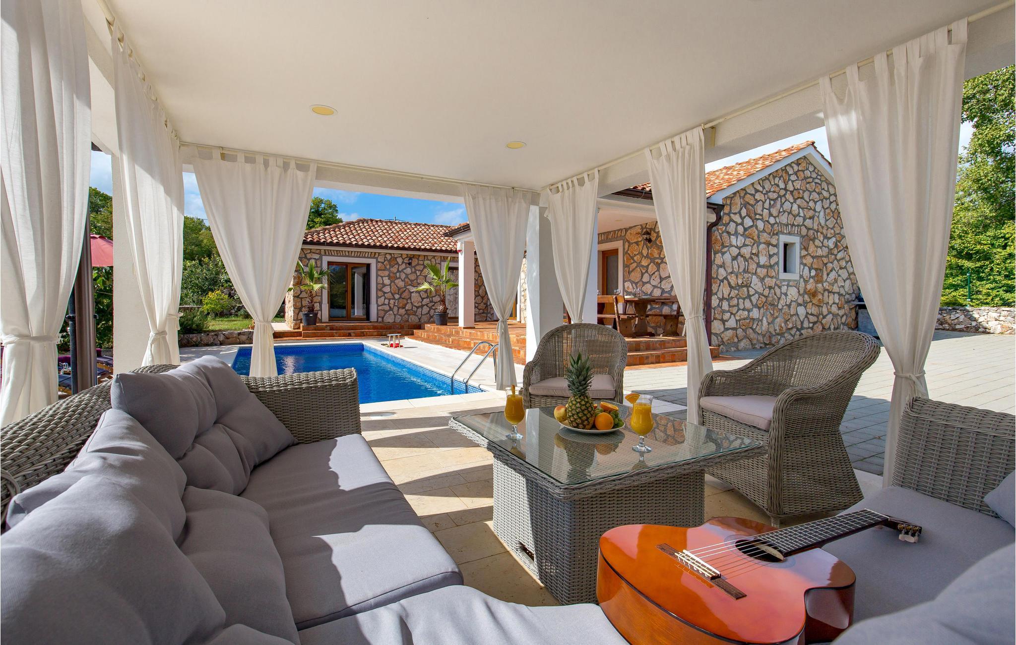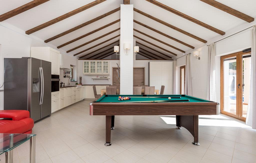 Freuen Sie sich auf einen erfüllten Urlaub in diesem sehr charmanten und modern eingerichteten Ferienhaus. Machen Sie morgens die Tür auf, treten Sie auf die große Terrasse und springen Sie in den Pool. Genießen Sie den Morgenkaffee in einem der überdachten Bereiche der Terrasse oder, wenn Sie es drinnen bevorzugen, im großen Wohnzimmer. Entspannen Sie sich nach einem Tag mit Sehenswürdigkeiten oder Strandausflügen auf den Liegestühlen am Pool bei einer kalten Erfrischung.