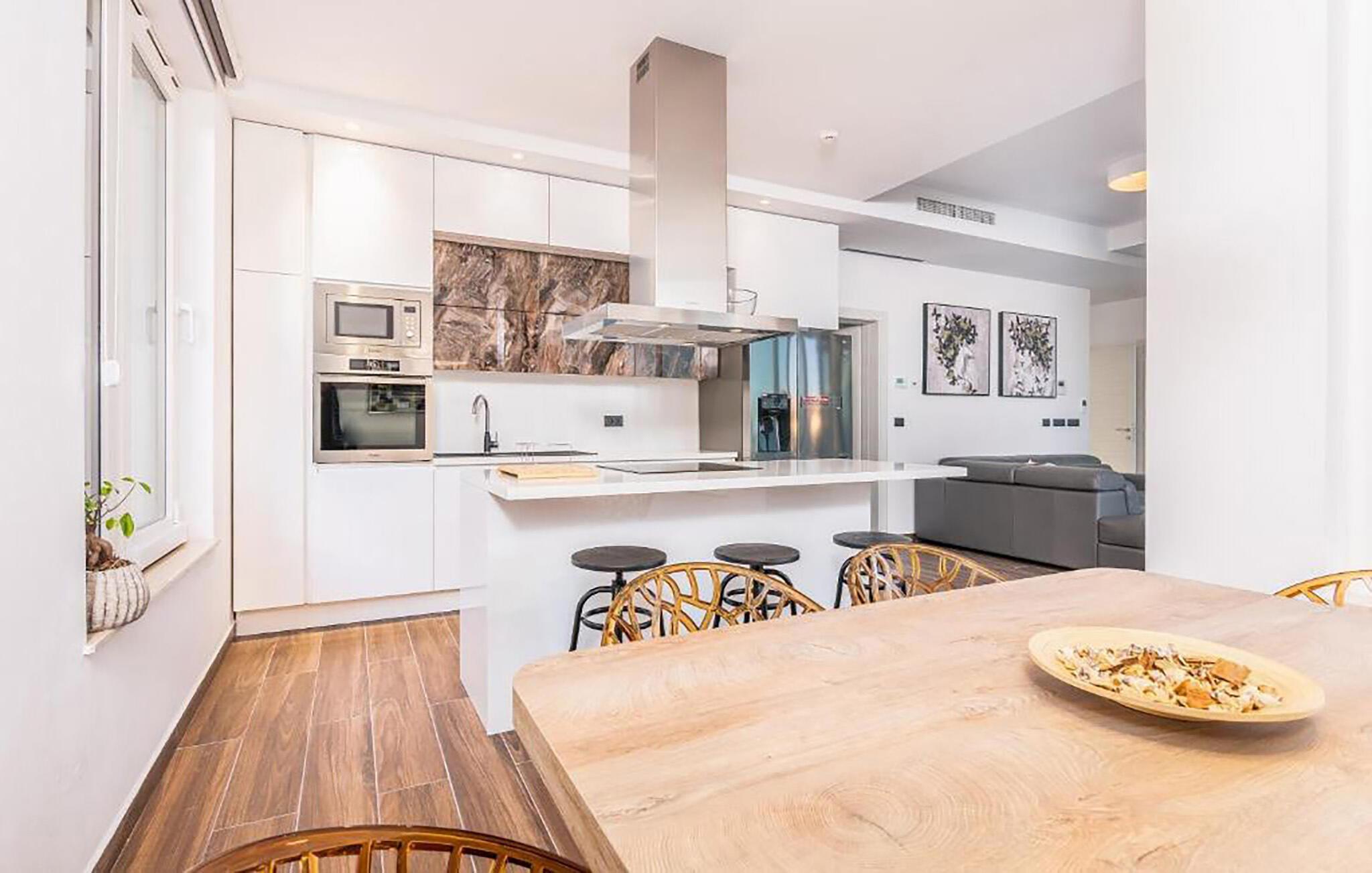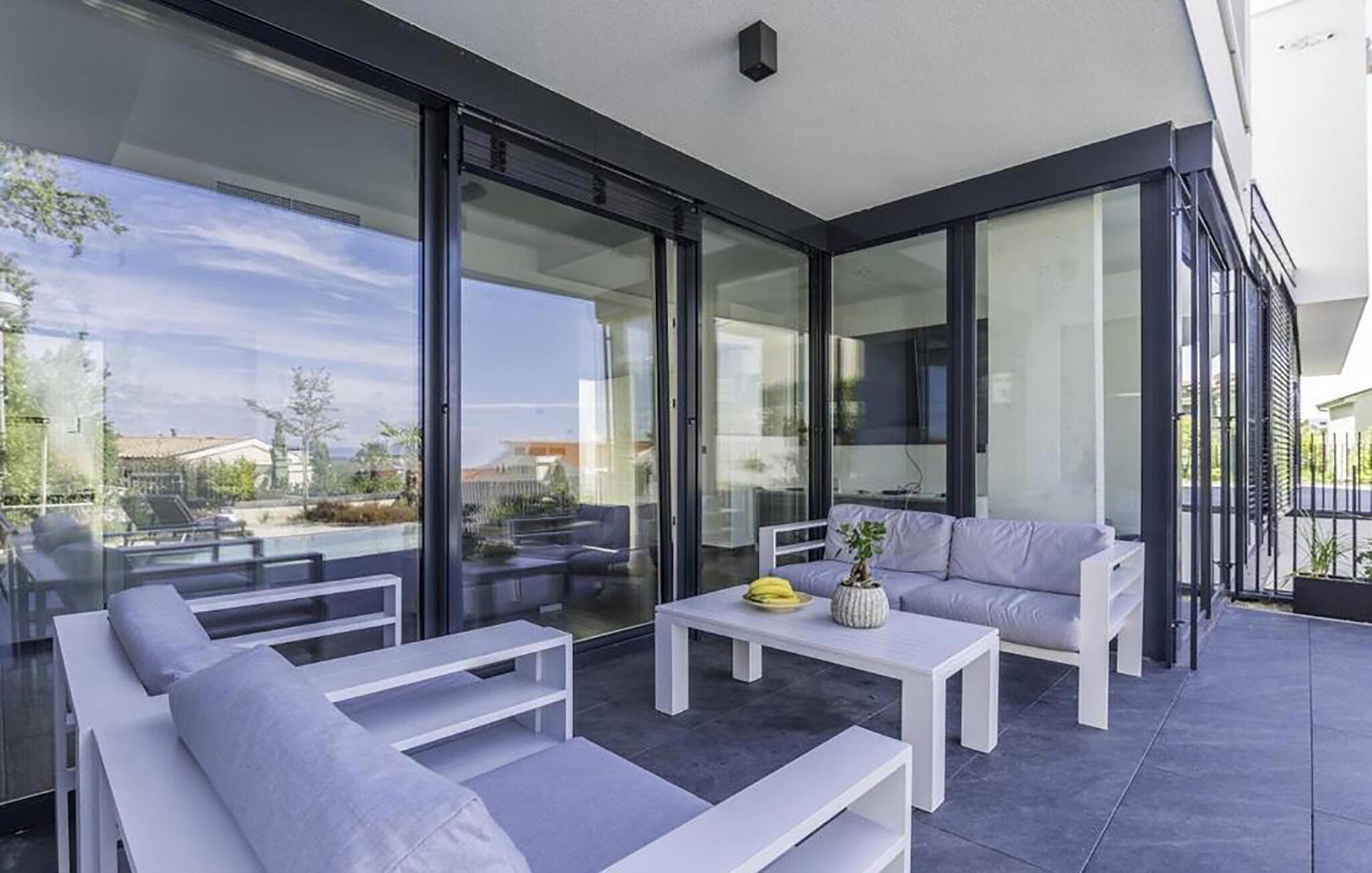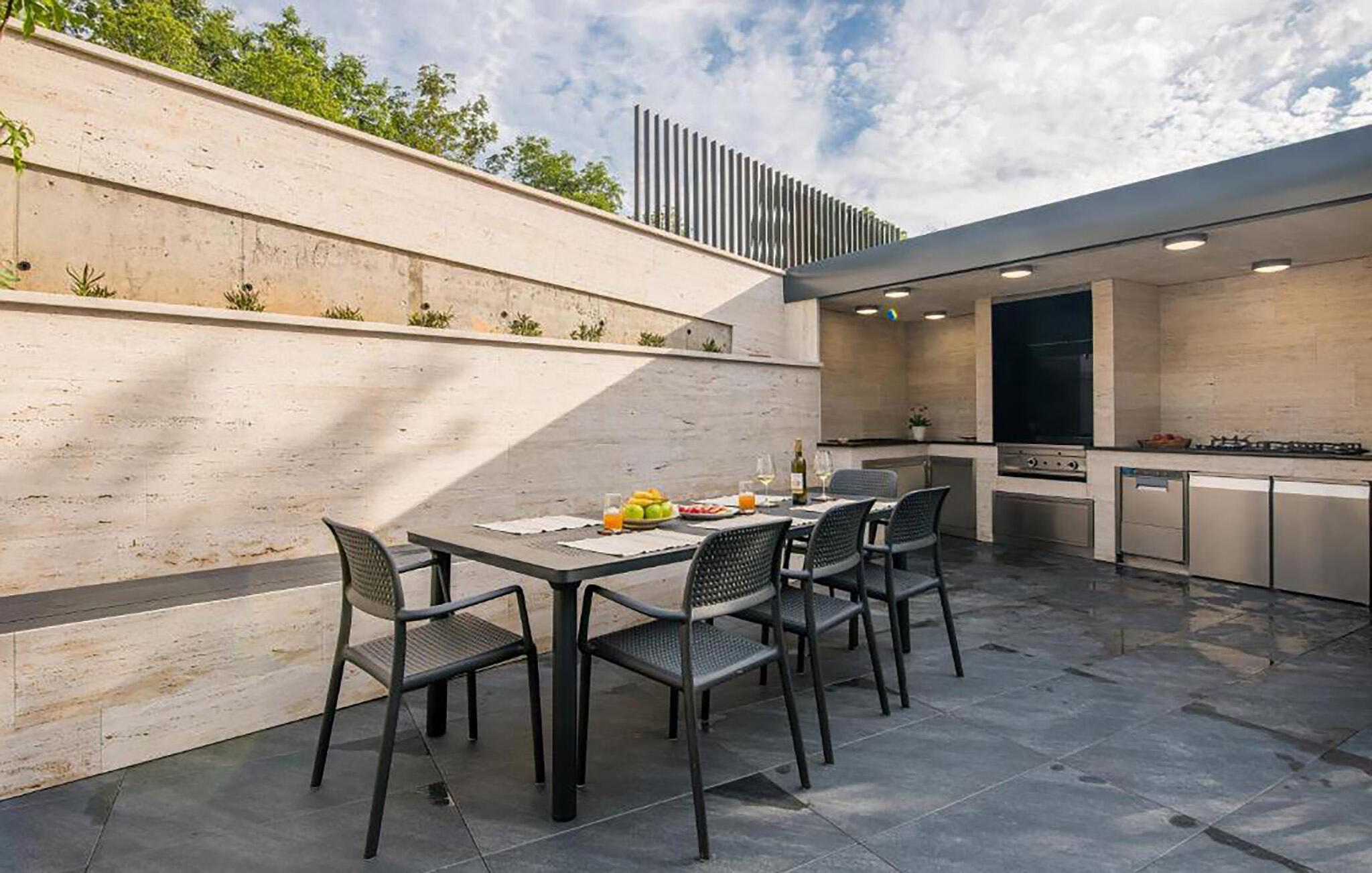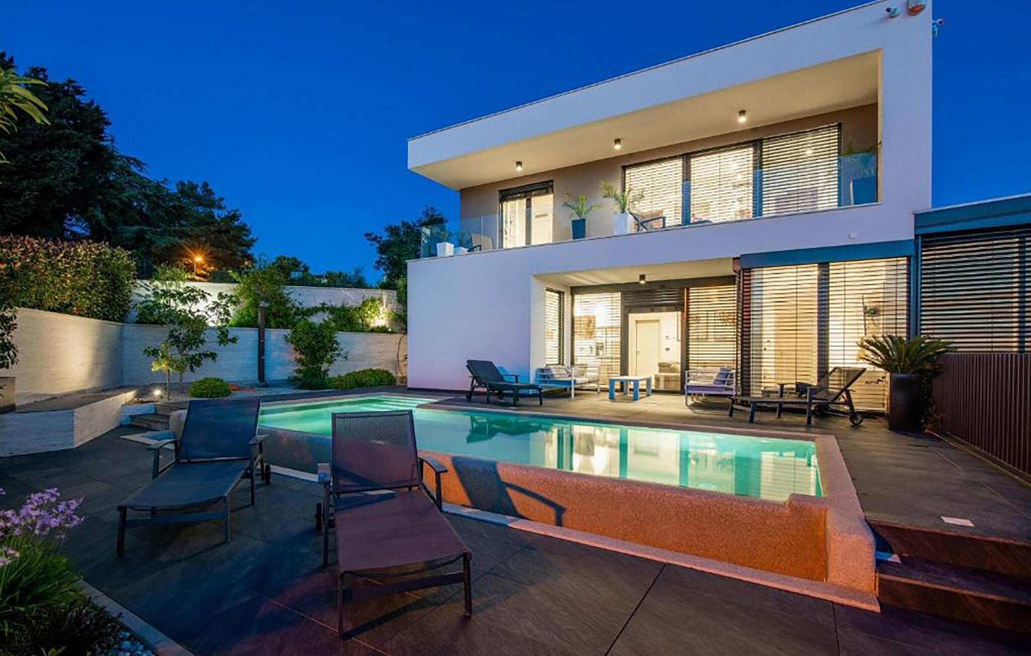 Im Außenbereich erwartet Sie eine idyllische Atmosphäre mit einem großzügigen Pool und einem einladenden Wintergarten. Hier finden Sie auch einen Whirlpool für fünf Personen – ideal, um den Abend unter freiem Himmel ausklingen zu lassen. Nutzen Sie die erstklassige Lage nahe dem Strand und den Restaurants, um das mediterrane Flair zu genießen.