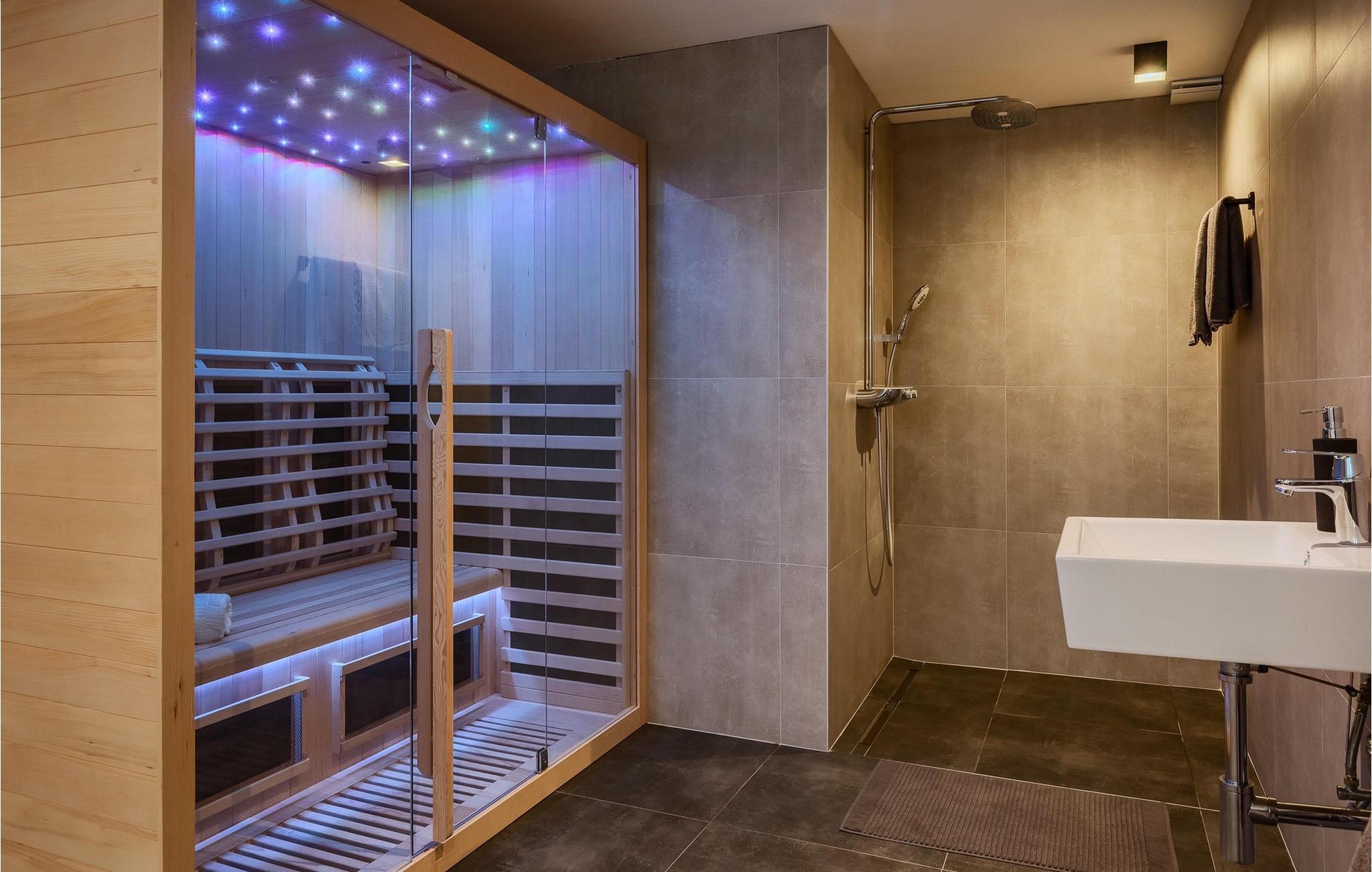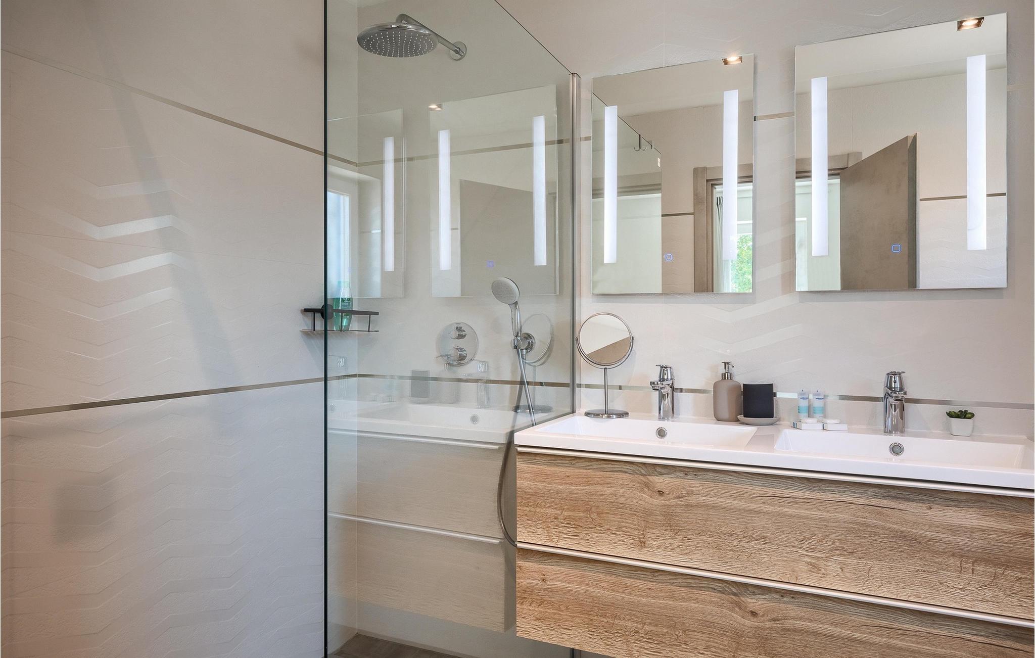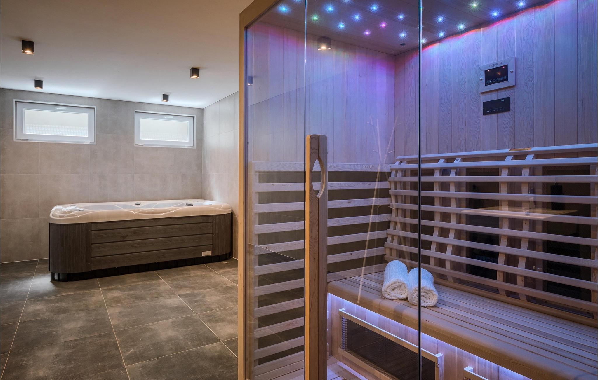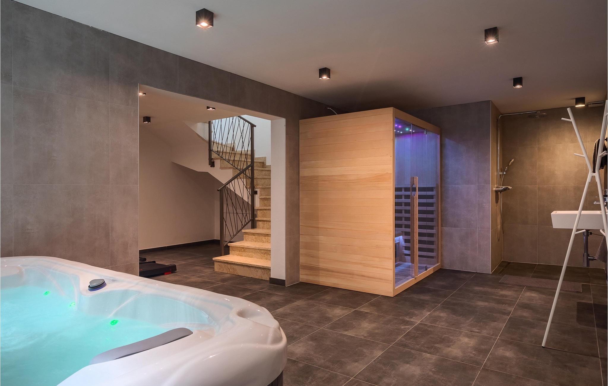 Das Innere der Villa ist modern eingerichtet. Das Erdgeschoss der Villa verfügt über ein wunderbares Wohnzimmer und eine elegant eingerichtete voll ausgestattete Küche mit Essbereich. Auf der gleichen Etage befindet sich auch ein Schlafzimmer mit eigenem Bad. Im ersten Stock finden Sie 3 weitere elegant eingerichtete Schlafzimmer mit eigenem Bad. Auf der gleichen Etage stehen Ihnen auch zwei geräumige Terrassen, wo Sie einen atemberaubenden Blick auf die Umgebung genießen können! Aber das ist nicht alles! Im Untergeschoss dieser Villa finden Sie einen Raum mit Sauna und Jacuzzi sowie einen Fitnessraum, wo Sie sich richtig entspannen können.