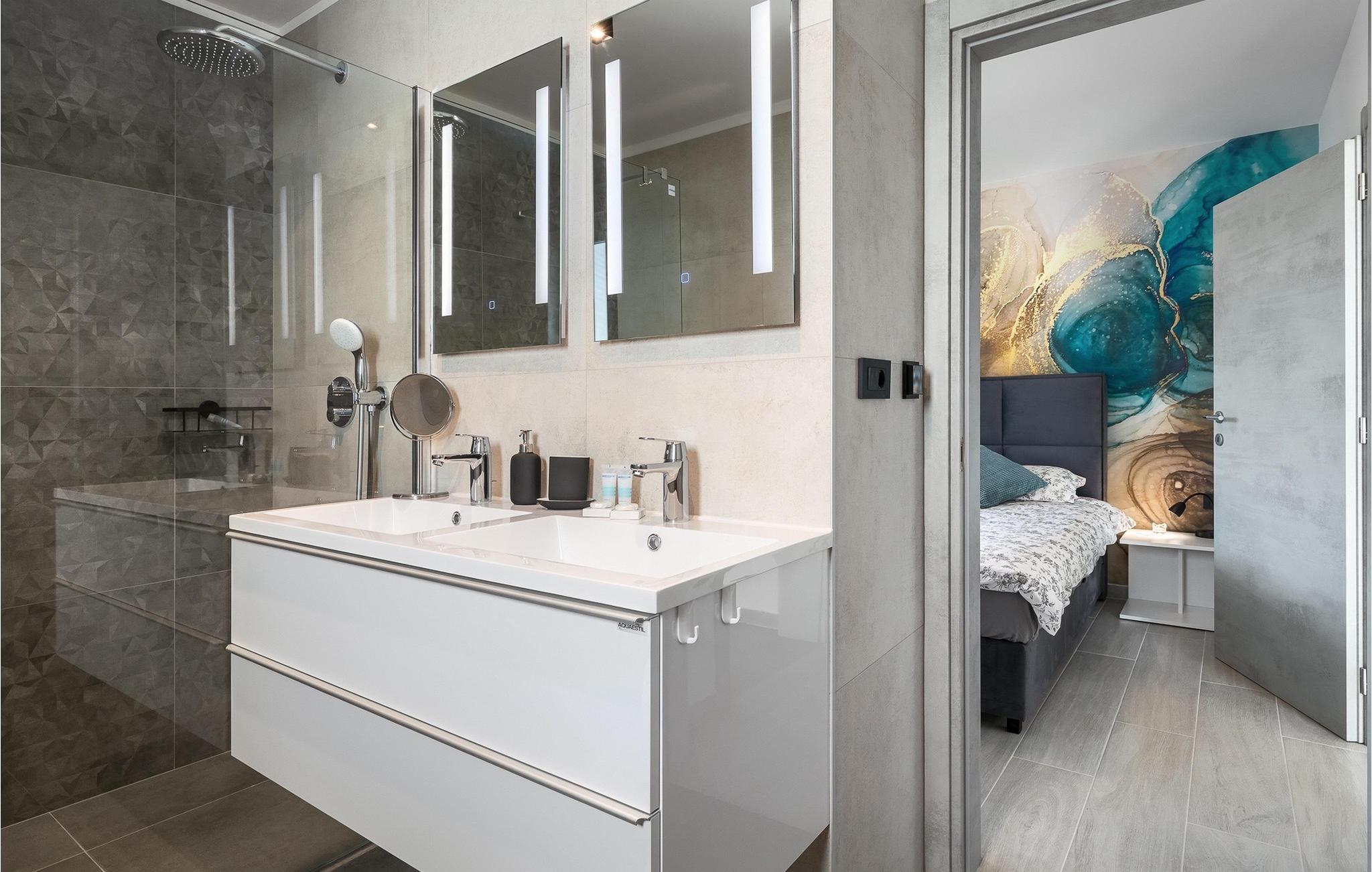 Wenn Sie eine Unterkunft für einen erholsamen Familienurlaub nah zum Meer suchen, dann ist die Villa Valle Malinska die perfekte Wahl für Sie. Die wunderschöne Villa Valle Malinska liegt auf der bezaubernden Insel Krk. Vor der Villa befindet sich ein Pool, wo Sie sonnige Tage mit Ihrem Lieblingsgetränk in der Hand verbringen werden. Neben dem Pool steht Ihnen auch die überdachte Terrasse mit einem Esstisch und einem Grill zur Verfügung, wo Sie an warmen Sommerabenden Ihre Lieblingsspezialitäten mit Familie und Freunden genießen können.