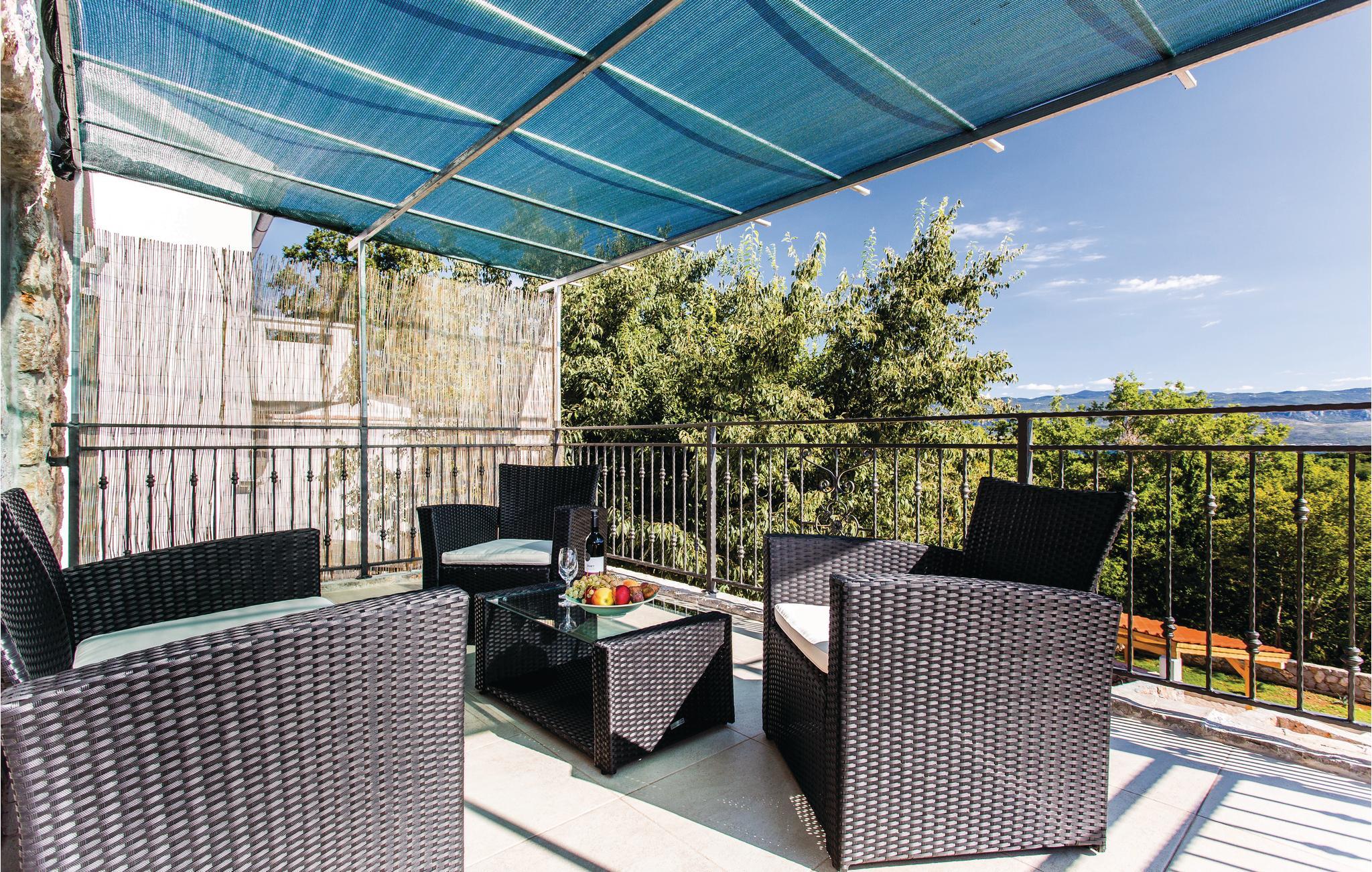 Dieses gemütliche Ferienhaus liegt im Dorf Risika, abseits vom Großstadttrubel, neben einem Wald. Die großzügigen Innenräume sind modern ausgestattet und erstrecken sich durch das Erdgeschoss, wo ein Wohnzimmer, ein Esszimmer mit Küche und eine Toilette untergebracht sind. Das Wohnzimmer öffnet sich auf eine Terrasse mit herrlichem Meerblick. Eine Innentreppe führt in den 1. Stock, wo es 2 Zimmer mit Zutritt auf Terrasse und ein Badezimmer gibt. Finden Sie eine Erfrischung im Pool, entspannen Sie mit Ihrem Lieblingsbuch oder Barbecue mit der Familie. Mit dem Auto sind Sie schnell am Sandstrand. Besuchen Sie Malinska, Krk und Baska.