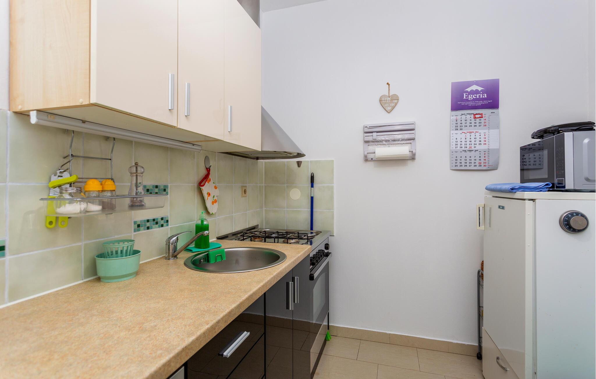 In der nahegelegenen Stadt Krk sollten Sie durch das historische Stadtzentrum schlendern und verborgene Cafés sowie entzückende Boutiquen entdecken. Genießen Sie die regionale Gastronomie in einem der vielen Restaurants. Machen Sie auch einen Ausflug zur Biserujka-Höhle, einer faszinierenden Tropfsteinhöhle auf der Insel, und entdecken Sie die vielfältige Flora und Fauna des nahegelegenen Punat.