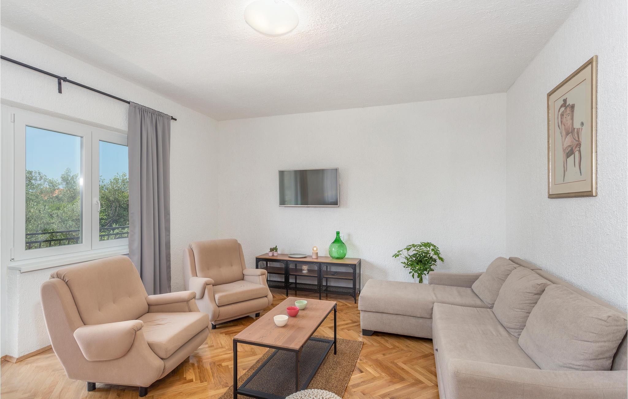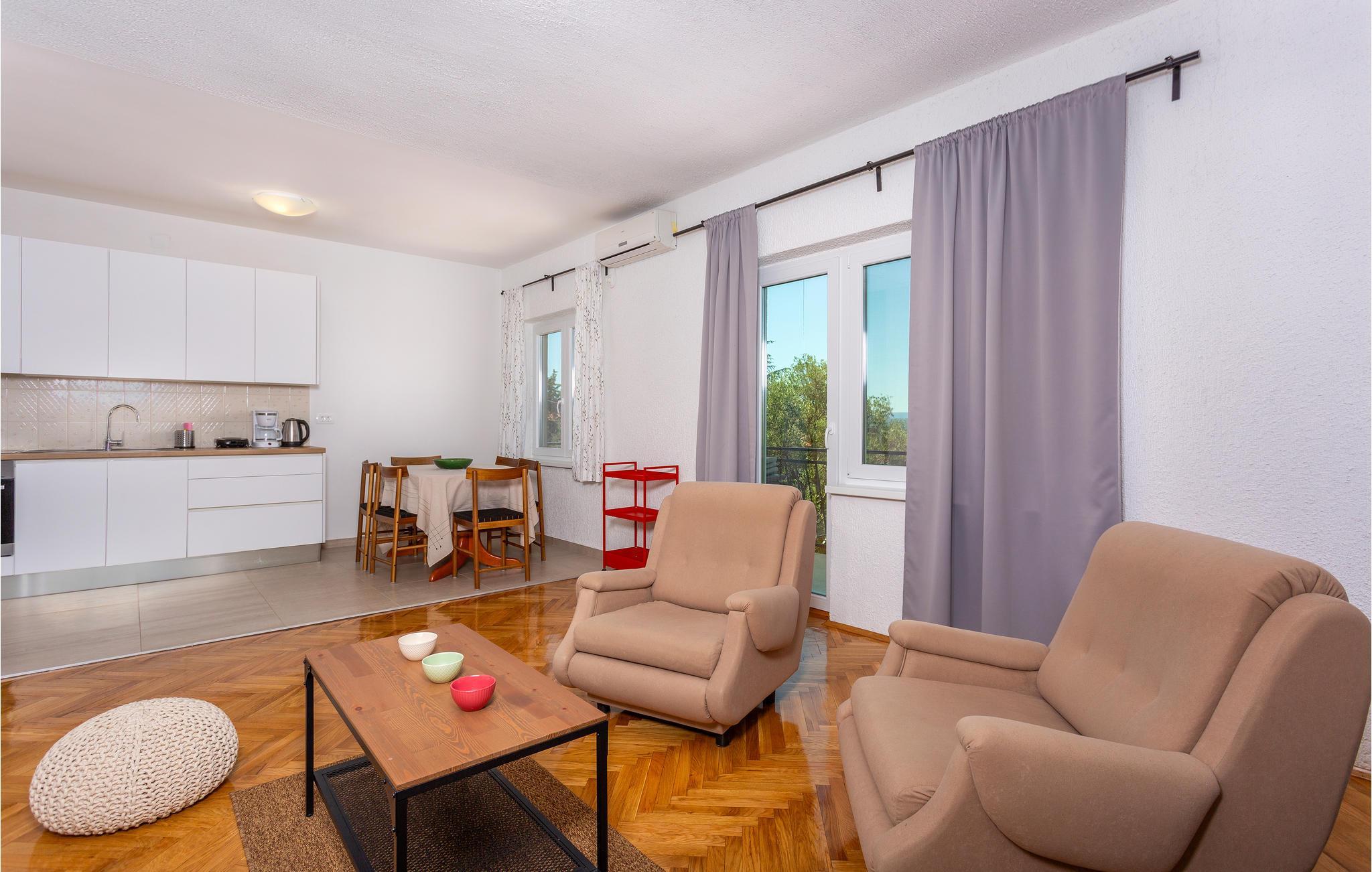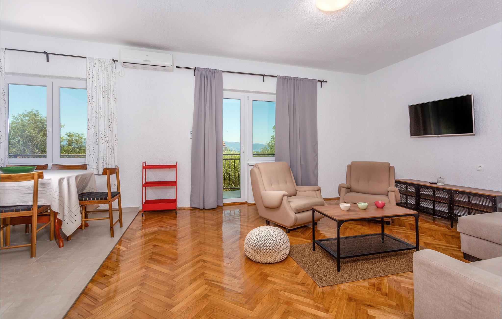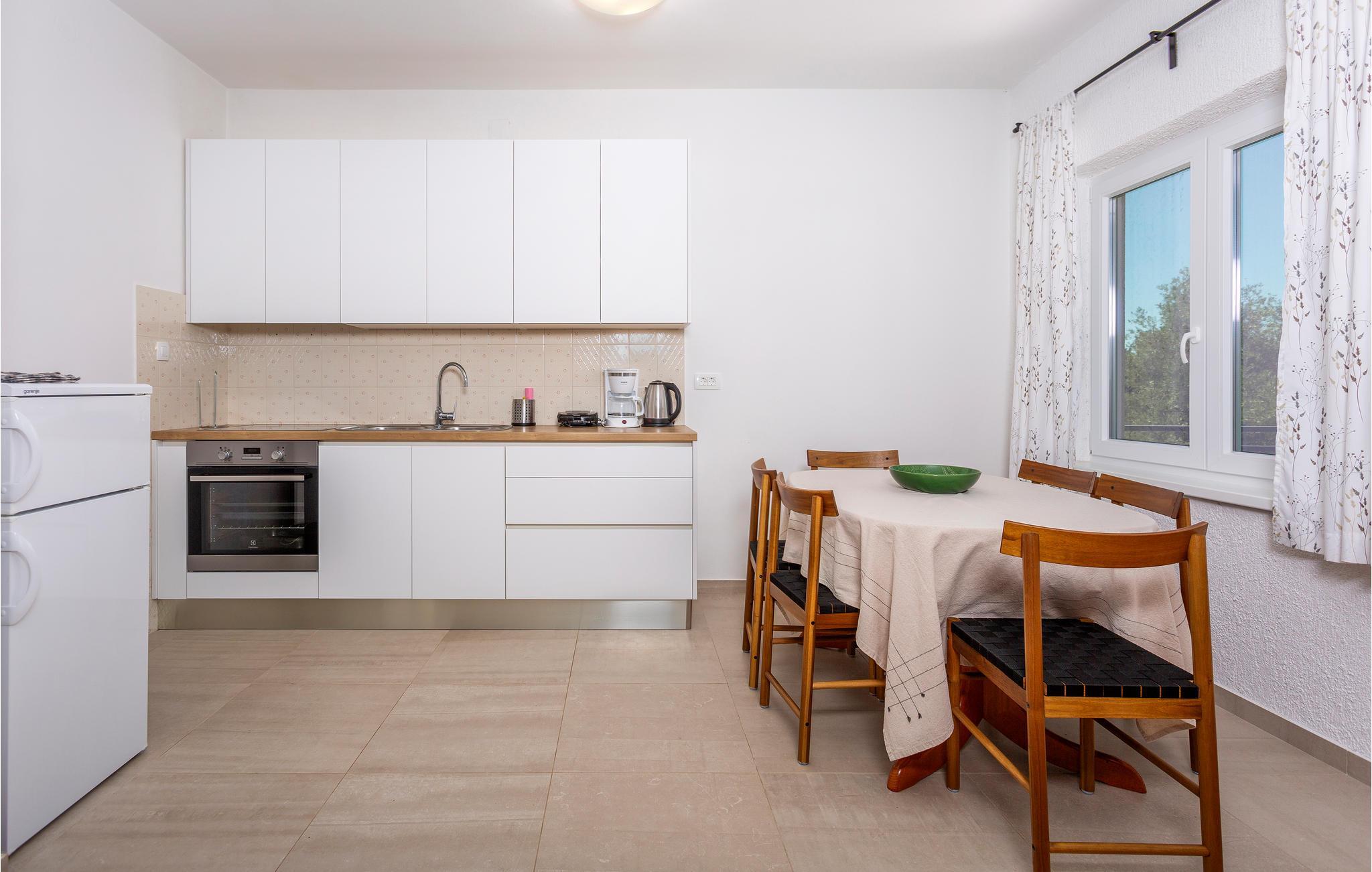 Geräumige Ferienwohnung im kleinen Dorf Sv. Vid oberhalb von Malinska. Die Wohnung im Obergeschoss ist einfach und funktionell eingerichtet, ideal für eine größere Familie. Vom Haus aus erreichen Sie schnell die Strände in Malinska, Njivice und Krk oder den Sandstrand Sv. Marko bei Risika. Das nahe gelegene Malinska ist ein Badeort mit vielfältigen Einrichtungen, sowohl für einen erholsamen als auch erlebnisreichen Urlaub. Es gibt Wanderwege, Sportangebote und eine gute Gastronomie sowie kulturelle und historische Sehenswürdigkeiten. Die Insel Krk lädt auch zu Erkundung ihrer schönen Landschaft mit dem Fahrrad, denn das Wegenetz ist gut ausgebaut.