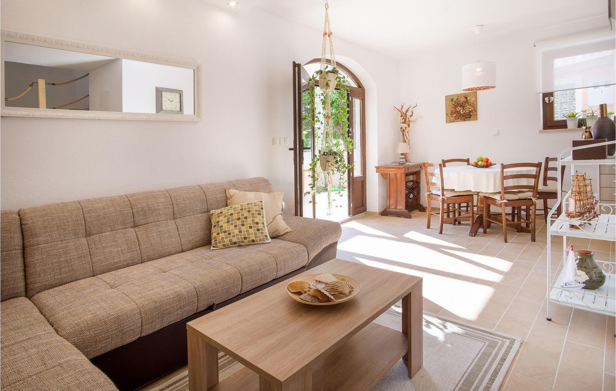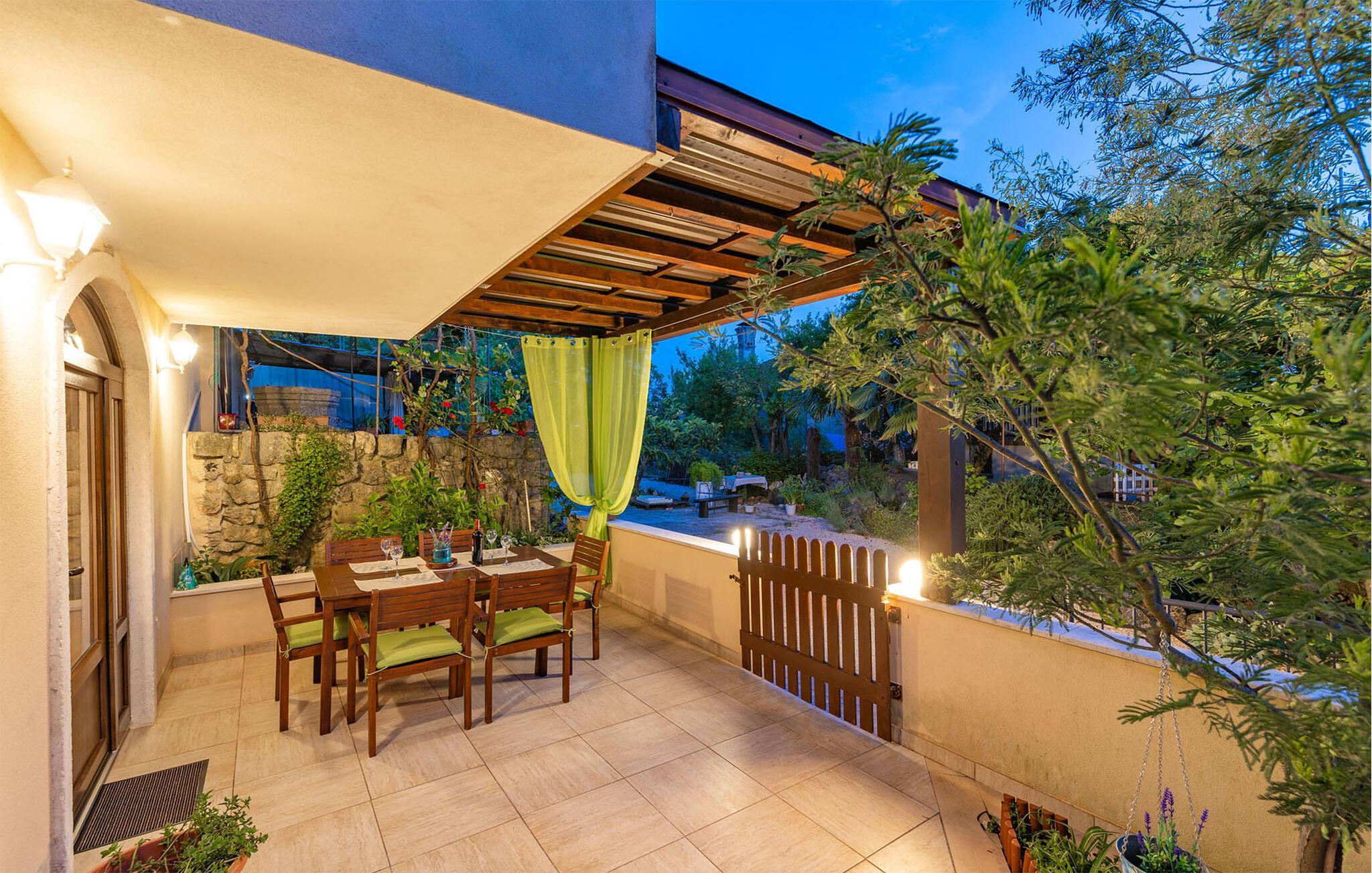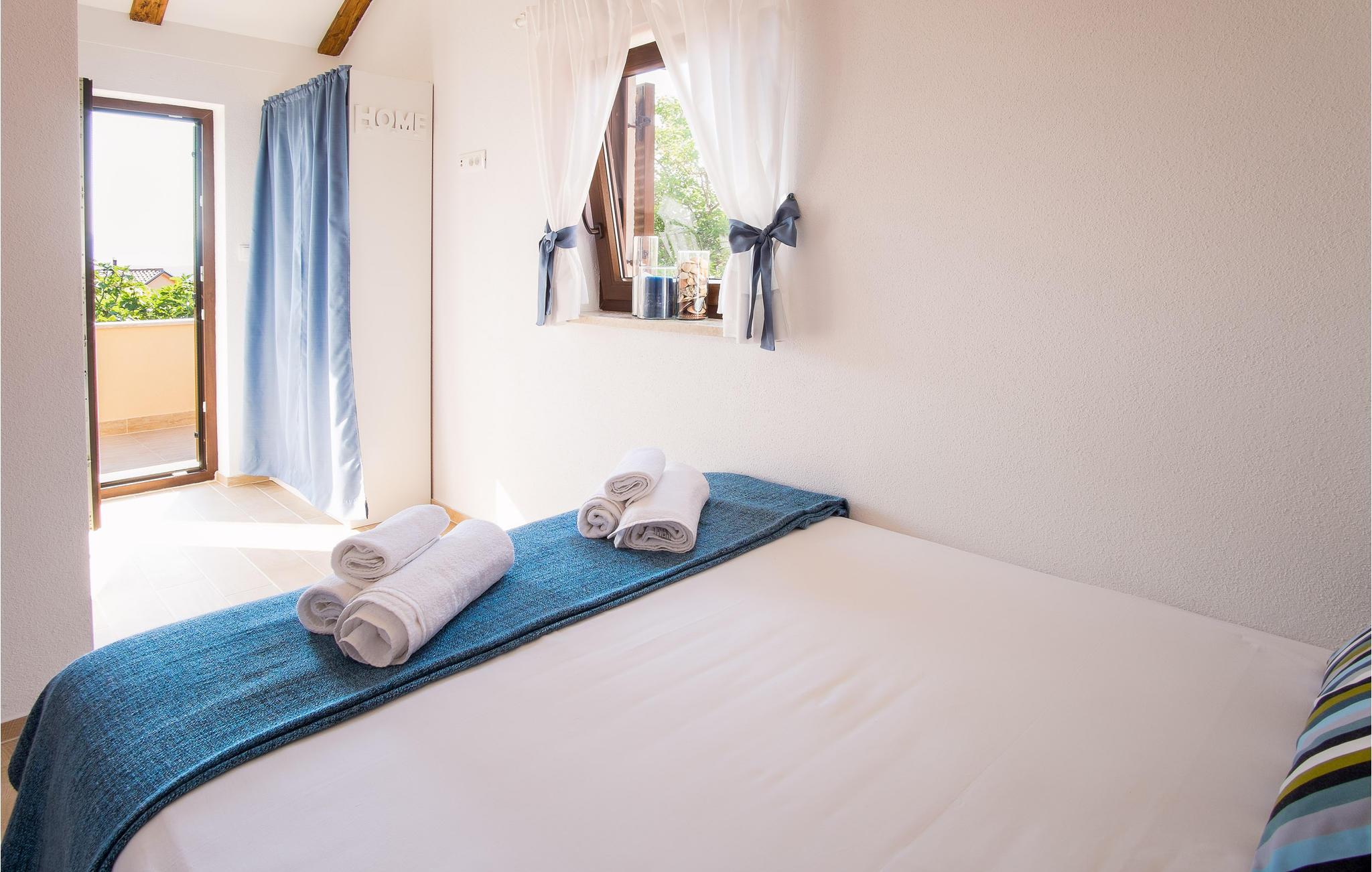 Im kleinen Ort Sveti Vid Miholjice, in der Nähe von Malinska und auf der Insel Krk befindet sich diese modern und funktionell eingerichtete Doppelhaushälfte. Im Erdgeschoss ist der geräumige Wohnraum mit Küche und Essbereich, während im ersten Stock zwei Schlafzimmer sind. Die ist ein ideales Urlaubsziel für einen Familienurlaub. Auf dem schönen Grundstück steht Ihnen eine Terrasse mit Grill zur Verfügung, auf der Sie die langen Sommertage und Abende verbringen können. Im nahe gelegenen Ort Malinska sind die nächsten Badestrände während die ganze Insel voll von Kultur-, Unterhaltungs- und Sportangeboten ist. Probieren Sie die lokalen kulinarischen Spezialtäten und die einheimischen Weinsorten, die Ihren Urlaub vollkommen machen werden. Der Außenpool befindet sich in einem Teil des Grundstücks, der mit einem schmalen Fußgängerweg vom Haus getrennt ist. Hier werden Sie die warmen Sommertage genießen.