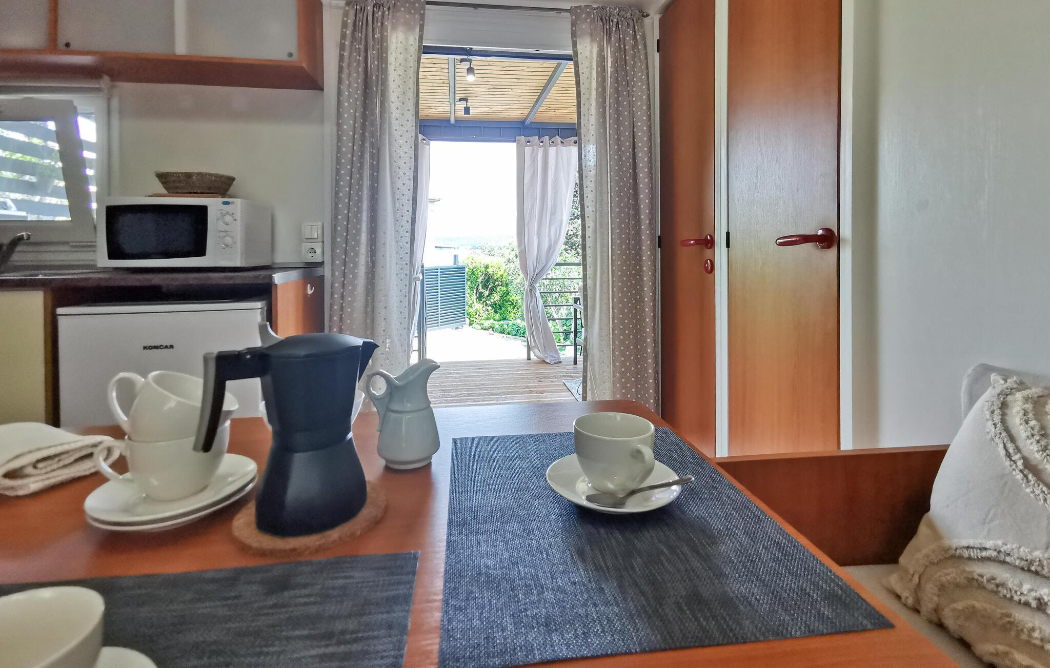 Besonders hervorzuheben ist die große, überdachte Terrasse mit Blick auf den gepflegten Garten. Hier können Sie Ihre Mahlzeiten im Freien genießen, während Sie die Meeresbrise und die warme Sonne Kroatiens spüren. Der Garten lädt zum Entspannen ein und bietet ausreichend Platz für Kinder zum Spielen.