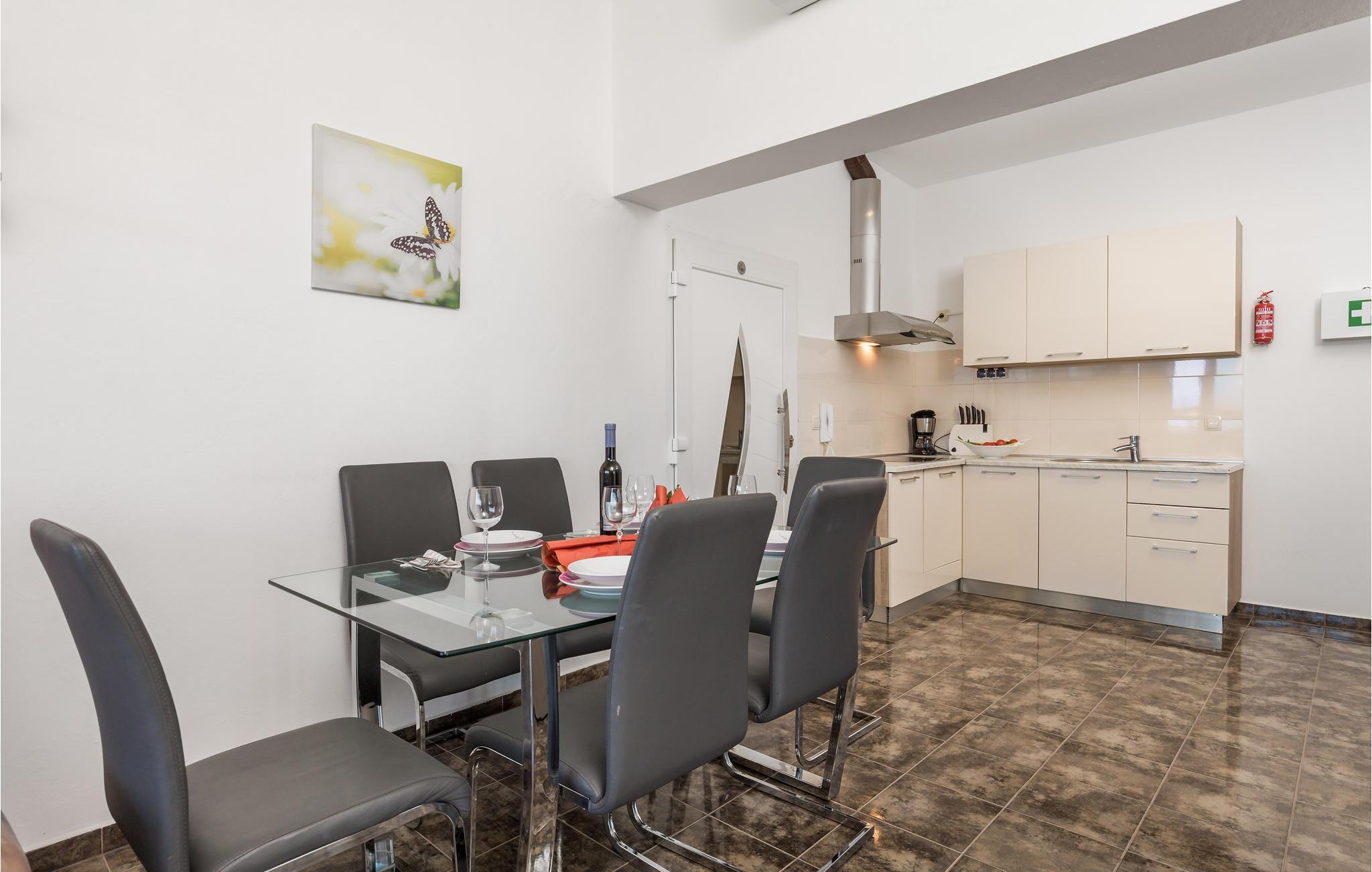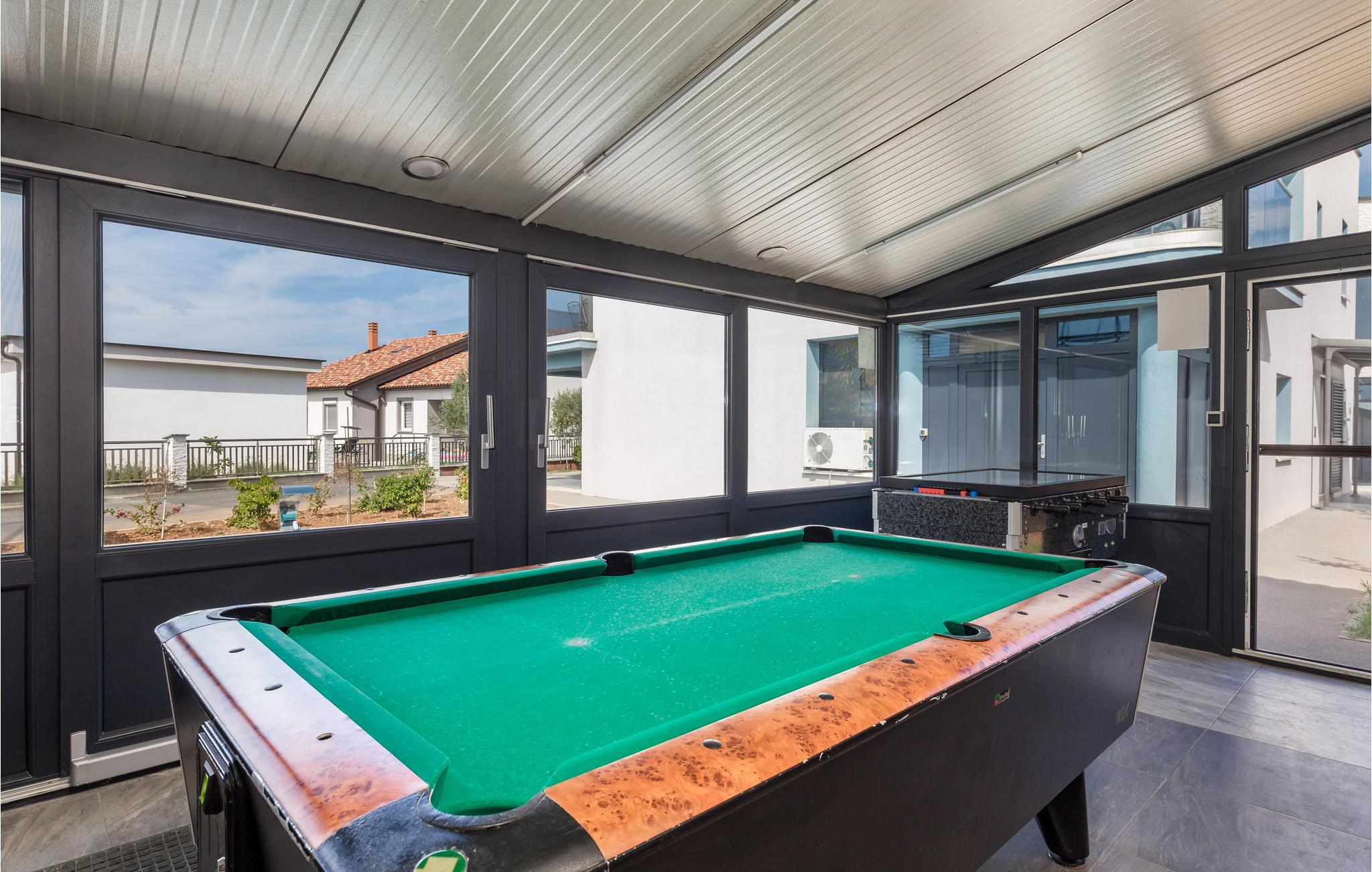 Verbringen Sie Ihren Sommerurlaub in einem attraktiven Ambiente. Die kleine Küstenortschaft Vrh liegt in der Nähe der Stadt Krk. Im Nebengebäude, welches für die gemeinsame Nutzung ist, können Sie Billard, Darts und Tischfußball spielen. Für die Kleinsten gibt es Schaukel, Rutsche und Spielhaus und für Erfrischung in den heißen Sommertagen sorgt der Pool( alle Inhalte sind für die gemeinsame Nutzung). Erleben Sie einen erholsamen Urlaub im verlangsamten Rhythmus in Kontakt mit unberührter Natur und schönen Stränden, auf die Sie der freundliche Hauseigentümer hinweisen wird. Im Ort wird der bekannte Räucherschinkens von Krk hergestellt, dort können Sie sich auch verköstigen. Entdecken Sie die Insel Krk, eine Insel voller Kultur und Geschichte, Olivenhainen sowie Wander- und Radstrecken. Für einen aktiven Urlaub am Meer gibt es Wake Boarding und den Wasser-Ski-Lift in Punta. Das schmackhafte Lammfleisch der Insel hat einst römische Kaisern schon geschmeckt.