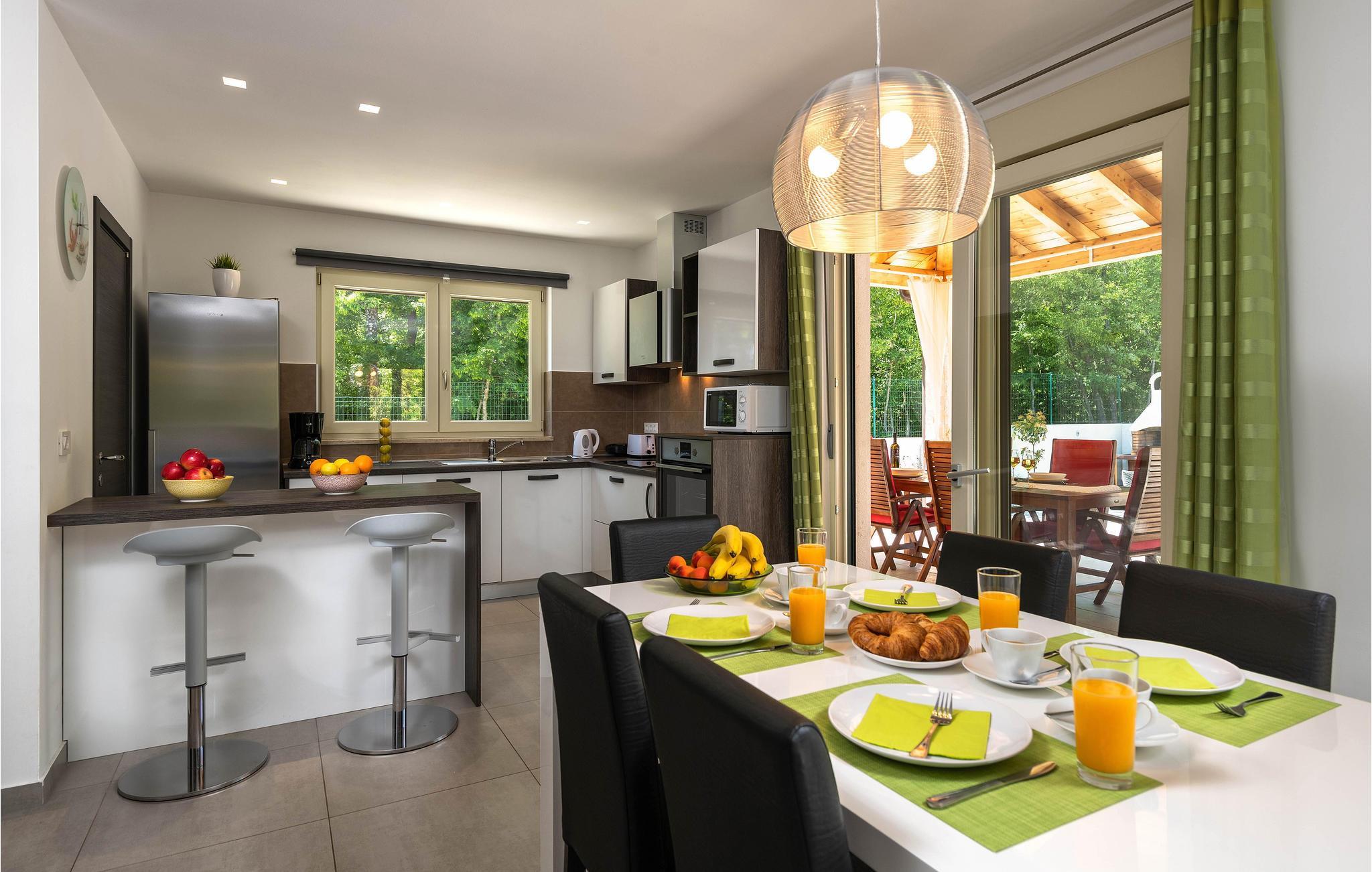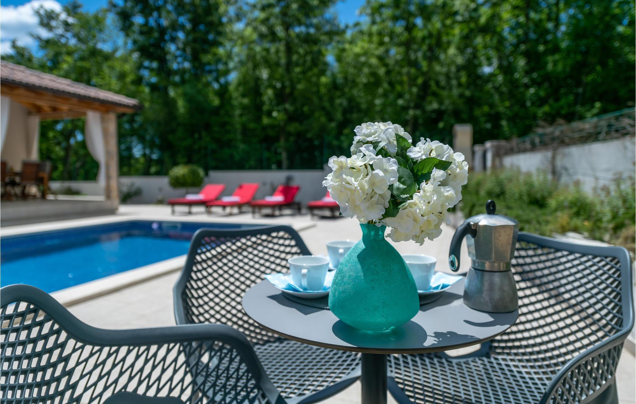 In Istrien empfängt Sie dieses großartige Ferienhaus für Ihren gelungenen Urlaub. Hier werden Sie sich mit Ihren Lieben wie zuhause fühlen, entspannen und es sich einfach gutgehen lassen. Freuen Sie sich auf das komfortable Innere des Hauses, wo Sie nach Herzenslust in der Küche zaubern, auf dem Sofa Relaxen, kühle Abende vor dem Kamin verbringen oder die herrliche Terrasse beim Buchlesen genießen können. Im Garten und der Terrasse werden Sie sich bestimmt viele Sonnenstunden verbringen. Baden Sie im Pool oder relaxen Sie im Whirlpool. Anschließend können Sie im Garten grillen oder mit der ganzen Familie auf dem Spielplatz oder dem Volleyballfeld spielen.