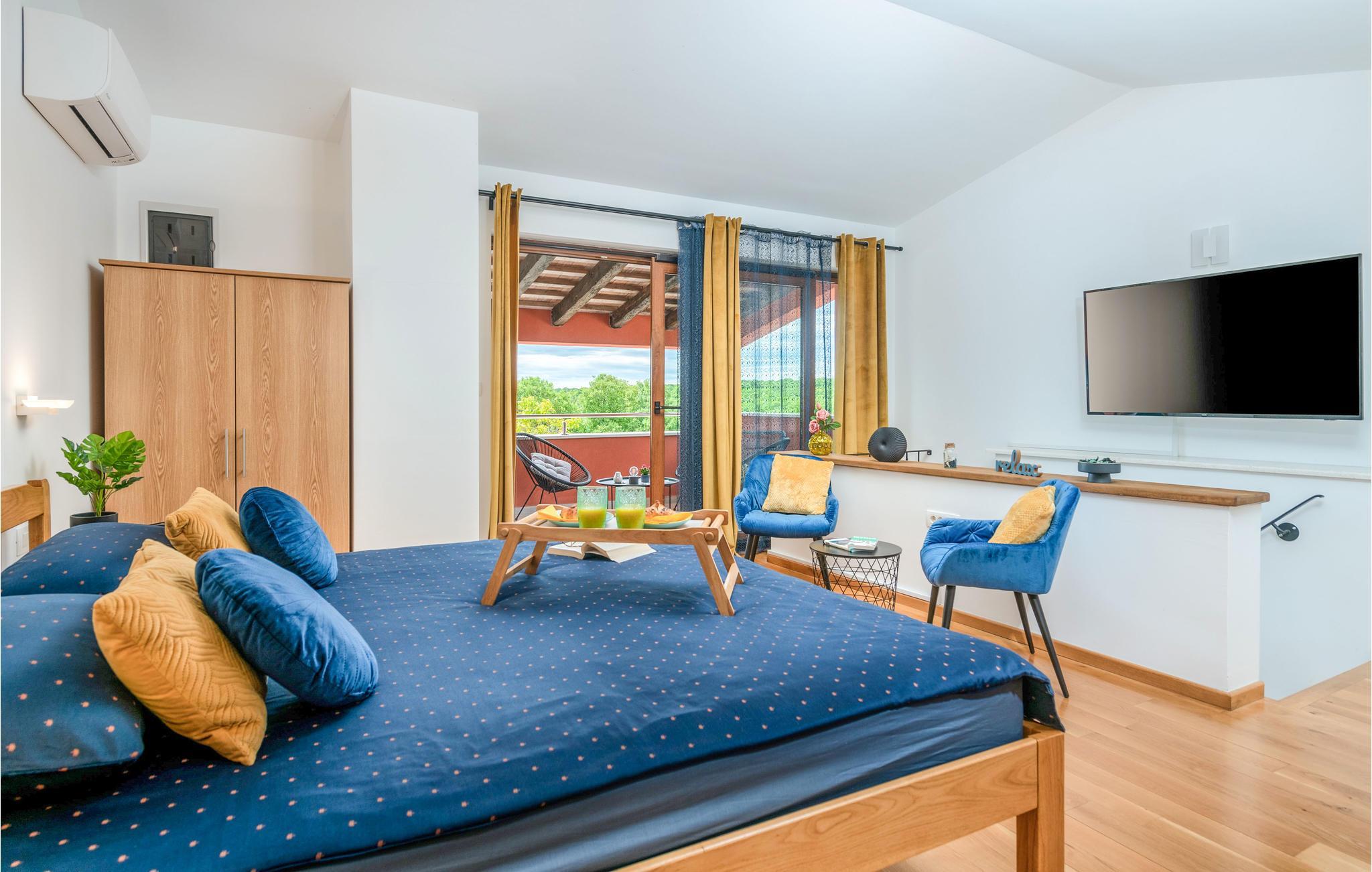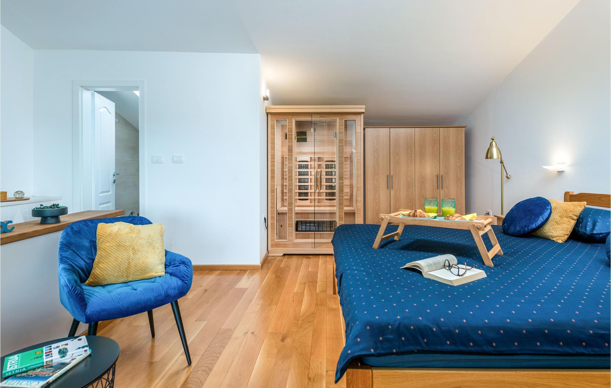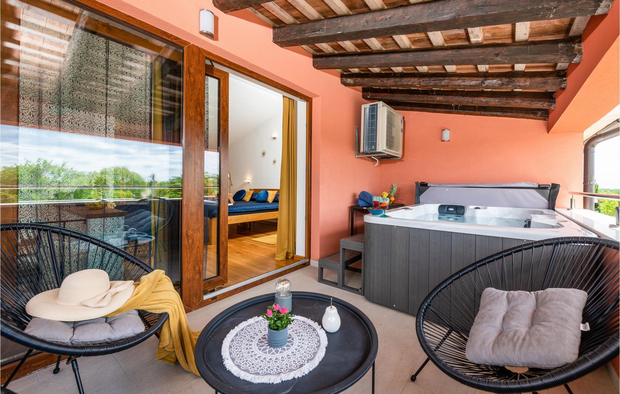 Reisen Sie mit Ihrer Familie oder einem befreundeten Paar zu diesem schönen Ferienhaus. Das Haus erstreckt sich über drei Etagen und bietet Ihnen geschmackvolle und farbenfrohe Räume, die Sie zum Verweilen einladen. Machen Sie es sich auf den Möbeln gemütlich, spielen Karten und genießen im obersten Stock die Sauna und den Whirlpool, von dem Sie eine tolle Aussicht über die grüne Landschaft haben.