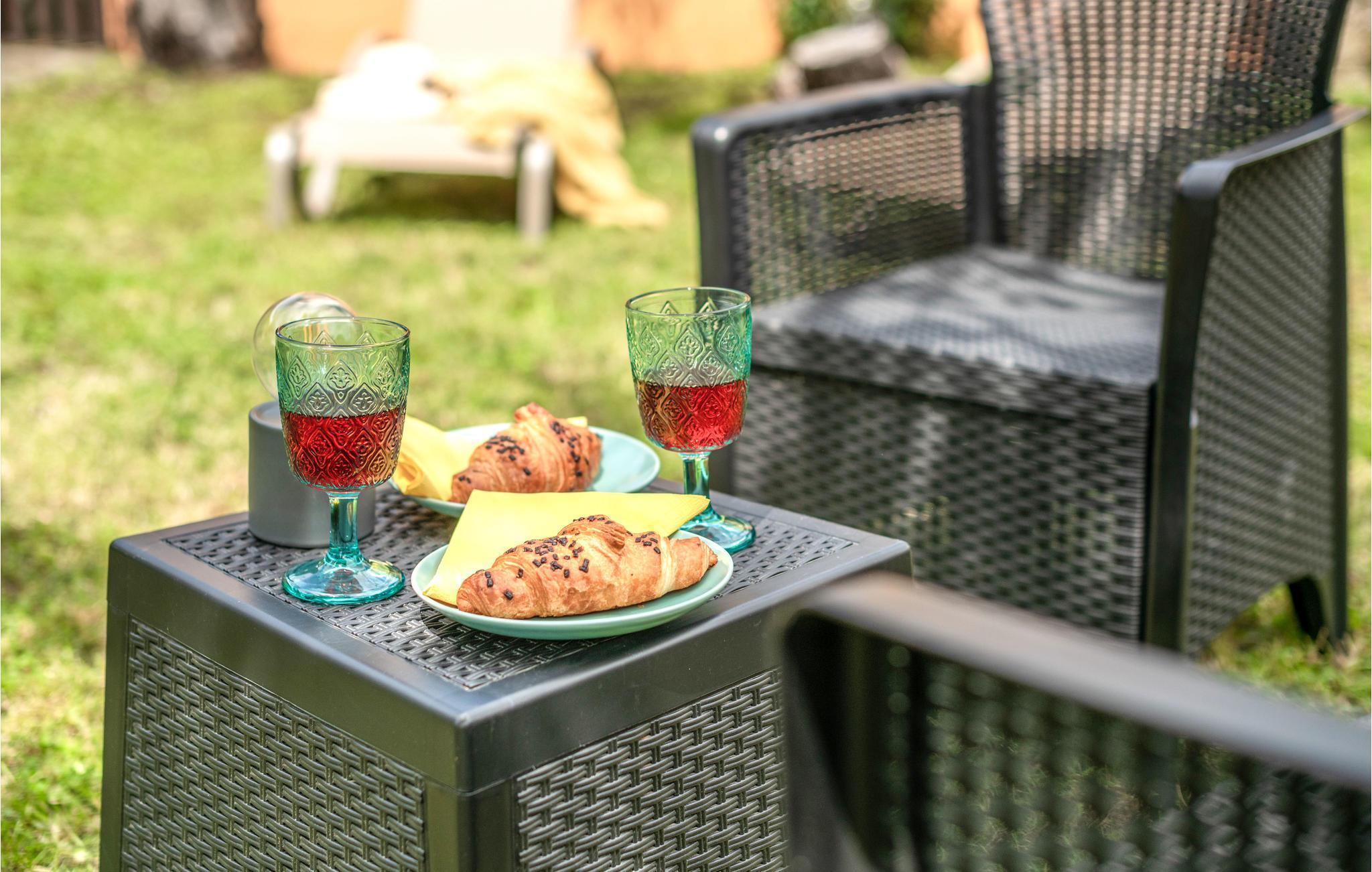 Im Erdgeschoss wartet auch eine schöne Terrasse mit gemauertem Grill auf Sie. Genießen Sie Ihre gegrillten Mahlzeiten im Freien und entspannen sich in der Sonne. Ihre Kinder können im Garten umhertoben und spielen und die vorhandenen Kindereinrichtungen nutzen.