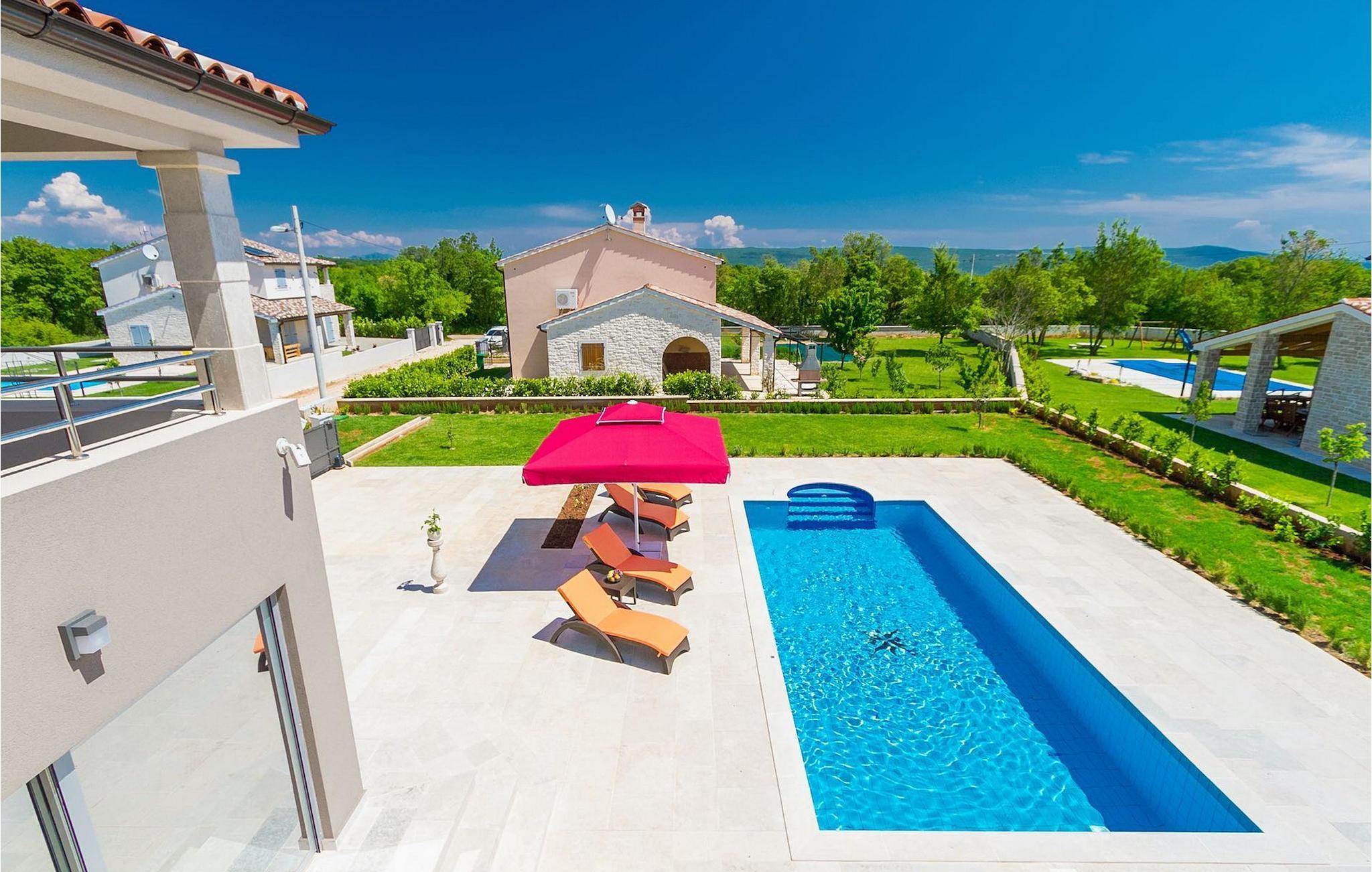 Weg vom Lärm und Gedränge der Sommerküste, jedoch in unmittelbarer Nähe der kleinen malerischen Krnica-Bucht, wohlbekannt für gute Fischrestaurants, sowie einige hervorragende Strände, verspricht diese wunderschöne Villa wahrhafte istrische Sommerferien. Denken Sie an Springen ins erfrischende Wasser, genussvolle Abendessen auf der Terrasse mit gegrilltem Fisch auf Tisch, herrliche Spaziergänge mit den zarten Düften der aromatischen Wildpflanzen, Familien-Radtouren durch die idyllische Hügellandschaft, sowie Tagesausflüge zu den pittoresken Städten und Dörfern reich an Kultur und Geschichte. Innerhalb dieser modernen, dennoch gemütlich eingerichteten Villa finden Sie drei Schlafzimmer mit Ensuite-Bädern mit Blick, sowie einen vorzüglichen, geräumigen Wohn- / Küchen- / Essbereich mit offenem Layout, umgeben von großen, galerieartigen Fenstern, die eine Fülle an natürlichem Licht hineinbringen und dem ganzen Haus Luftigkeit schaffen. Sie öffnen auf den großzügigen überdachten Grillbereich, der einen gemütlichen al fresco Sammelplatz bietet. Mit der Auswahl an Lounge- und Essbereichen, sowohl drinnen als auch draußen, und bequemen Liegestühlen, rund um den hübschen Rasengarten verstreut, um einen sonnigen Platz zu finden, werden Sie wahrscheinlich einfach nur faulenzen wollen, in und aus dem verlockenden Schwimmbad tauchen. Aber für diejenigen mit mehr Energie, gibt es auch einen Tischtennis für spannende Familien-Turniere, sowie Mountainbikes, um die magische Landschaft zu erkunden. Villa Anzela ist die absolut perfekte Wahl für ein echtes Naturerlebnis und ein fabelhafter istrischer Zufluchtsort.Diese wunderschöne Villa liegt inmitten der herrlichen Hügellandschaft Istriens und bietet einen guten Ausgangspunkt, um diese unberührte Region zu erkunden, nur einen Steinwurf jedoch vom smaragdblauen Meer und einsamen Kieselstränden der Adria entfernt. Auf acht Kilometer von der Villa liegt das pittoreske mittelalterliche Städtchen Barban, berühmt für seine alljährlichen traditionellen Ritterspiele "Lauf auf den Ring". Eine sehr gute Pferderanch mit Trekking und Reiten in ihrem Angebot befindet sich im naheliegenden Dorf Manjadvorci. Erlebnishungrige haben zu Ihrer Verfügung einen großen Adrenalinpark nur 2 km von der Villa, ein Tauchzentrum in der schönen, kleinen Bucht von Krnica (10 Fahrminuten entfernt), sowie zahlreiche verschiedene Wander- und Radwege. Eine große Auswahl an Gourmetgerichten, mit köstlichen lokalen Erzeugnissen zubereitet, bedeutet, dass Sie nie weit gehen werden müssen, um ein hervorragendes Essen zu finden. Sie haben auch die Möglichkeit Ihre Lebensmitteln direkt von den lokalen Herstellern zu kaufen. Um die letzte Zutat zu dieser reichen Vielfalt an Aktivitäten hinzuzufügen, liegen die historische Stadt Pula und die lebendigen touristischen Hot Spots nur wenige Fahrminuten entfernt, sowie die Fähren für eine Tour um die atemberaubend schönen umliegenden Inseln.