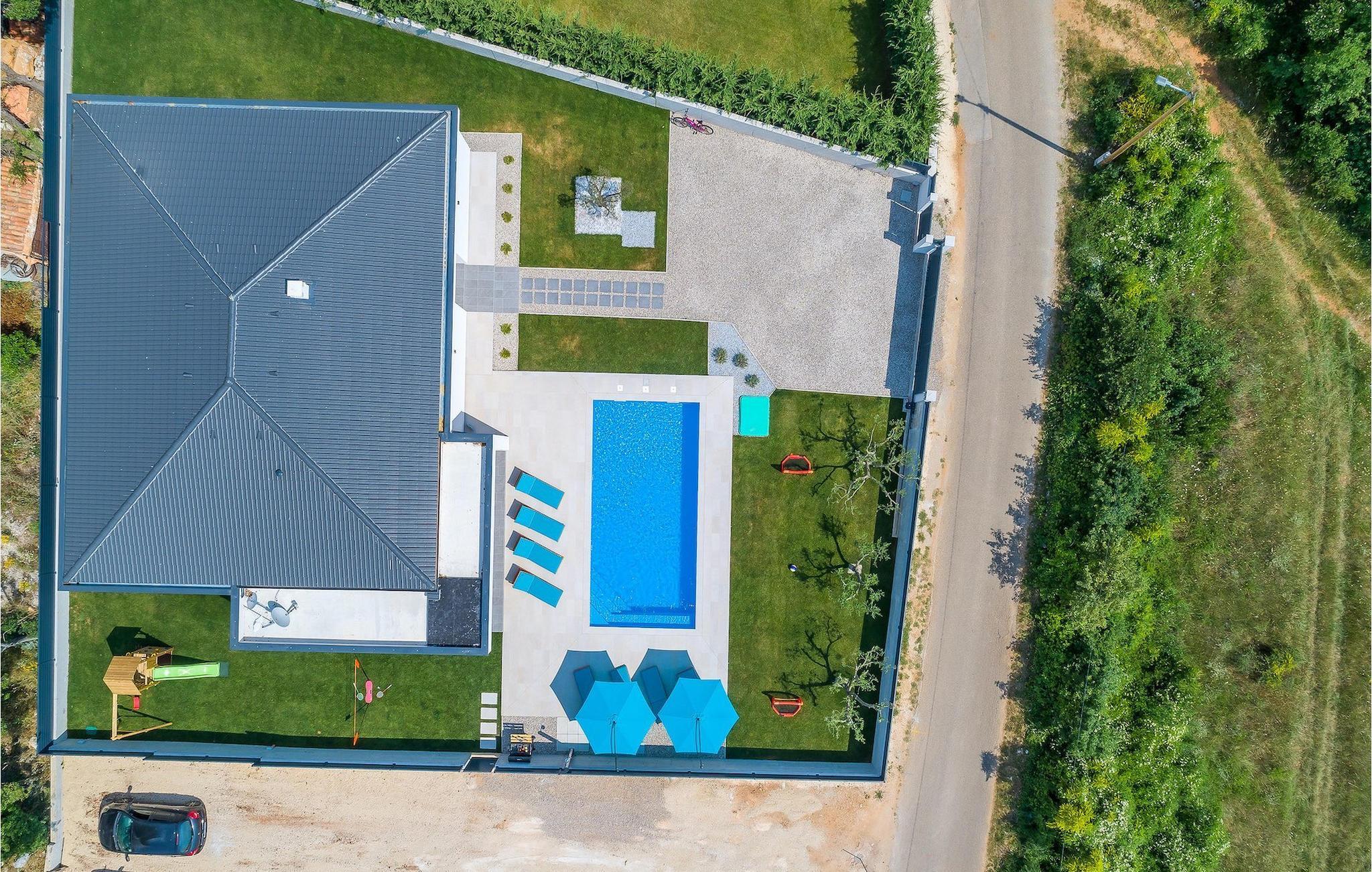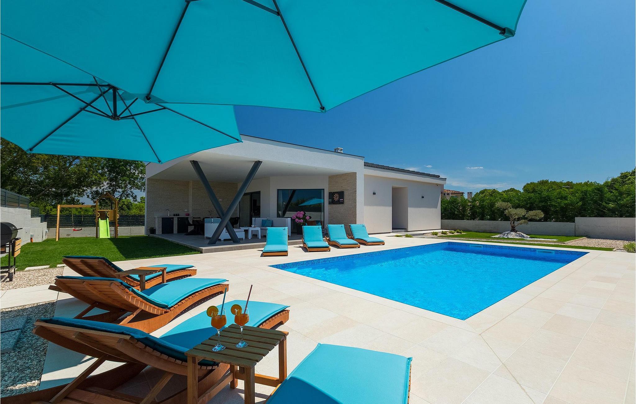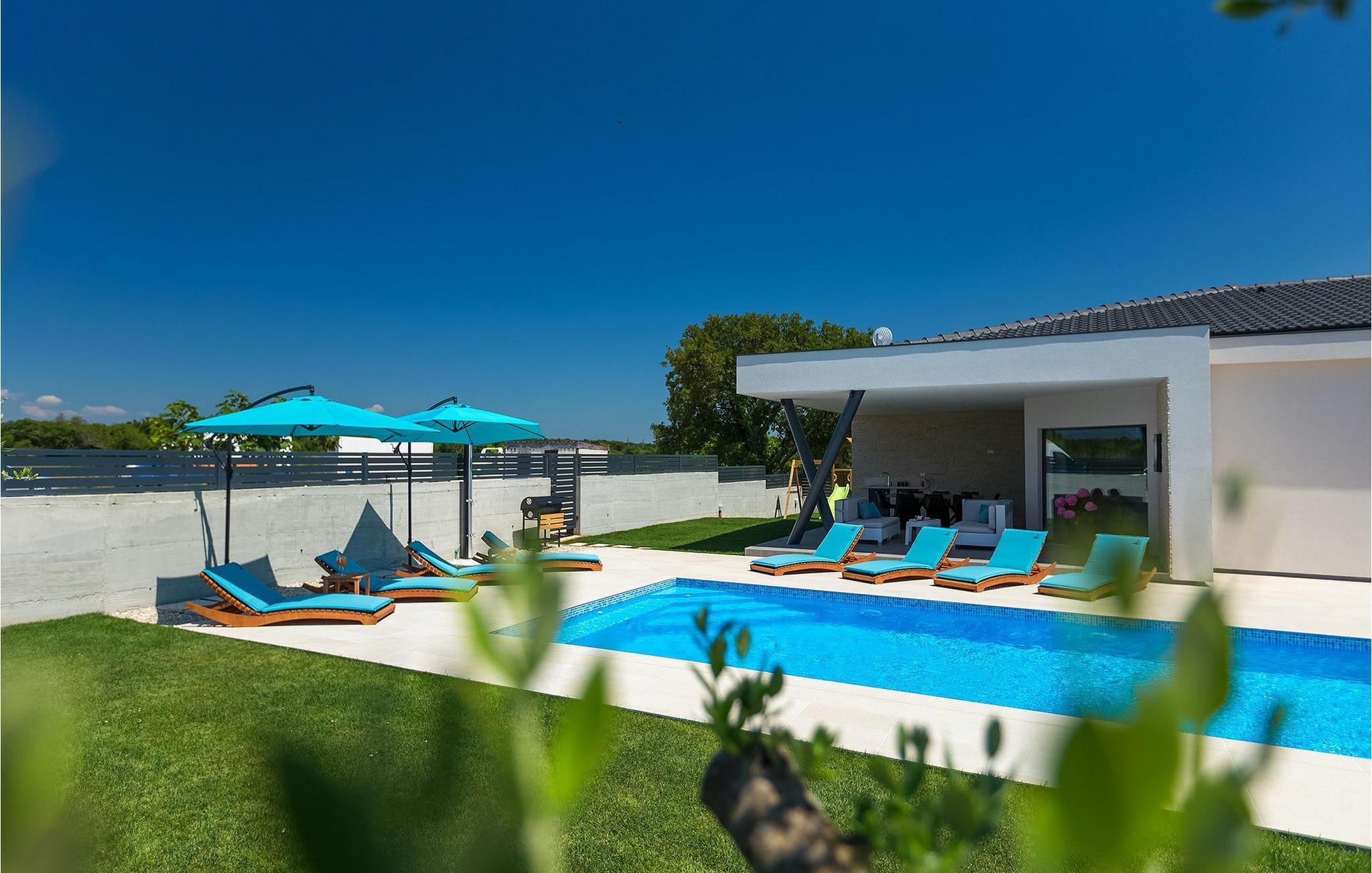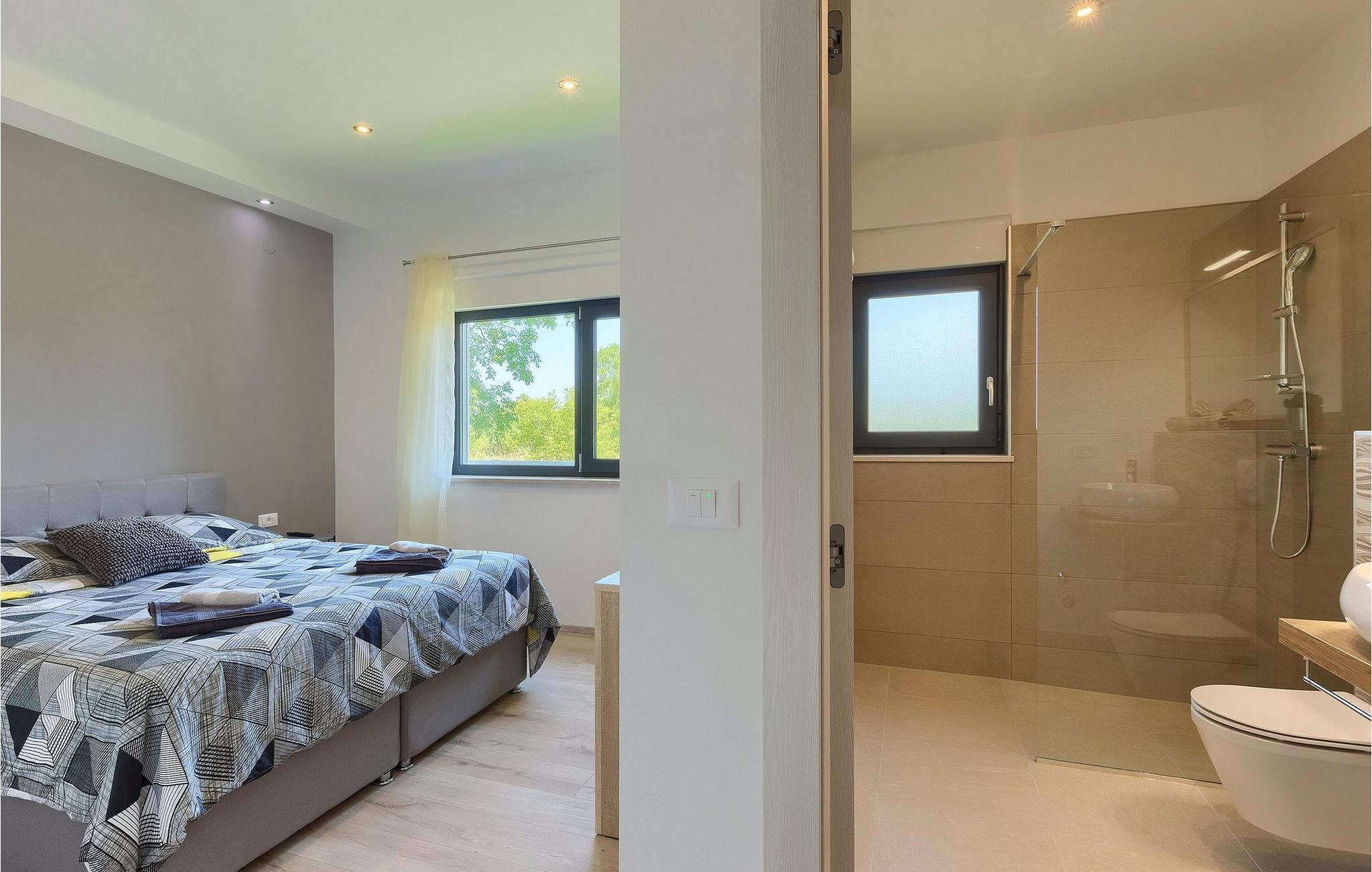 Die Villa verfügt über vier Schlafzimmer mit jeweils eigenem Bad. In 3 von 4 Schlafzimmern finden Sie jeweils 2 Einzelbetten, die nach Ihren Wünschen zusammengestellt werden können, in ein bequemes Doppelbett. Im 4. Schlafzimmer finden Sie ein reguläres Doppelbett. Es gibt auch ein modernes und farbenfrohes Wohnzimmer und ein Esszimmer. Der Außenbereich ist eine beruhigende Oase mit dem privaten Pool als Mittelpunkt des Bereichs. Es gibt auch eine 40 m2 große überdachte Terrasse, die Schutz vor der Sommersonne bietet und auch als Essbereich im Freien dient. Hier können Sie an warmen Sommernächten Ihr Lieblingsgetränk oder -gericht genießen. In der Villa haben Sie kostenfreies WLAN und Parkplätze.Die Villa befindet sich in ländlicher Lage und doch sind die Strände und Resorts entlang dieser Küstenlinie nur ein paar Kilometer entfernt. Die wilde Landschaft mit ihren zahlreichen Küsten- und Waldwegen eignet sich ideal zum Radfahren, lange Erholungswanderungen und Reiten, während die regionalen Spezialitäten in den vielen charmanten Restaurants und Agro-Tourismen in der Umgebung gekostet werden können. Für diejenigen mit abenteuerlichem Geist gibt es ein hervorragend ausgestattetes Tauchzentrum in der nahe gelegenen Bucht von Krnica, während der bekannte Sommerurlaubsort Duga Uvala einen modernen Hotelkomplex mit einem tollen Wellnesscenter sowie diverse Sportanlagen, Bars und Disco bietet. Der beliebte Ferienort Medulin und die wunderschönen architektonischen Sehenswürdigkeiten und kulturellen Veranstaltungen von Pula sind auch nah.