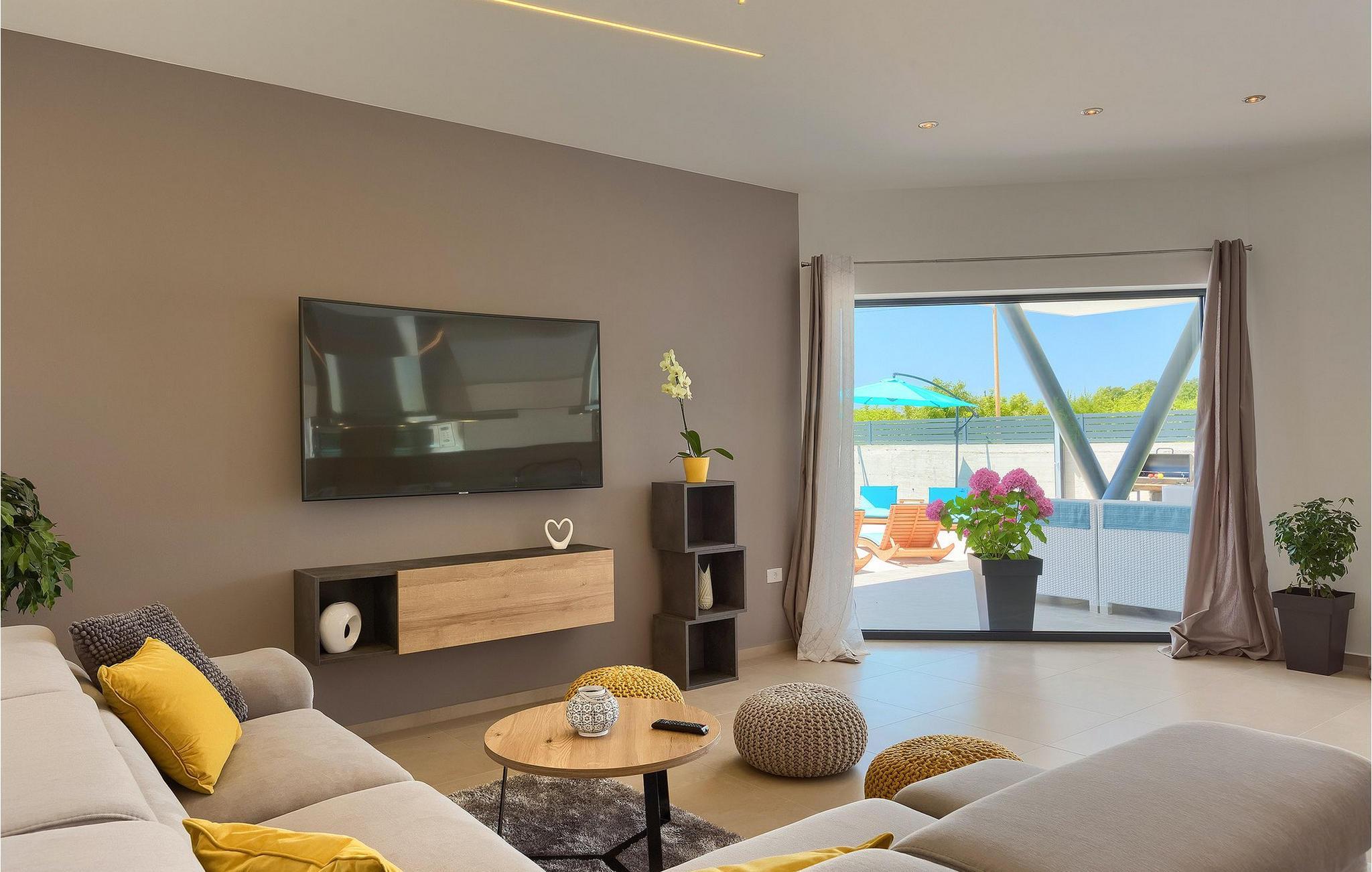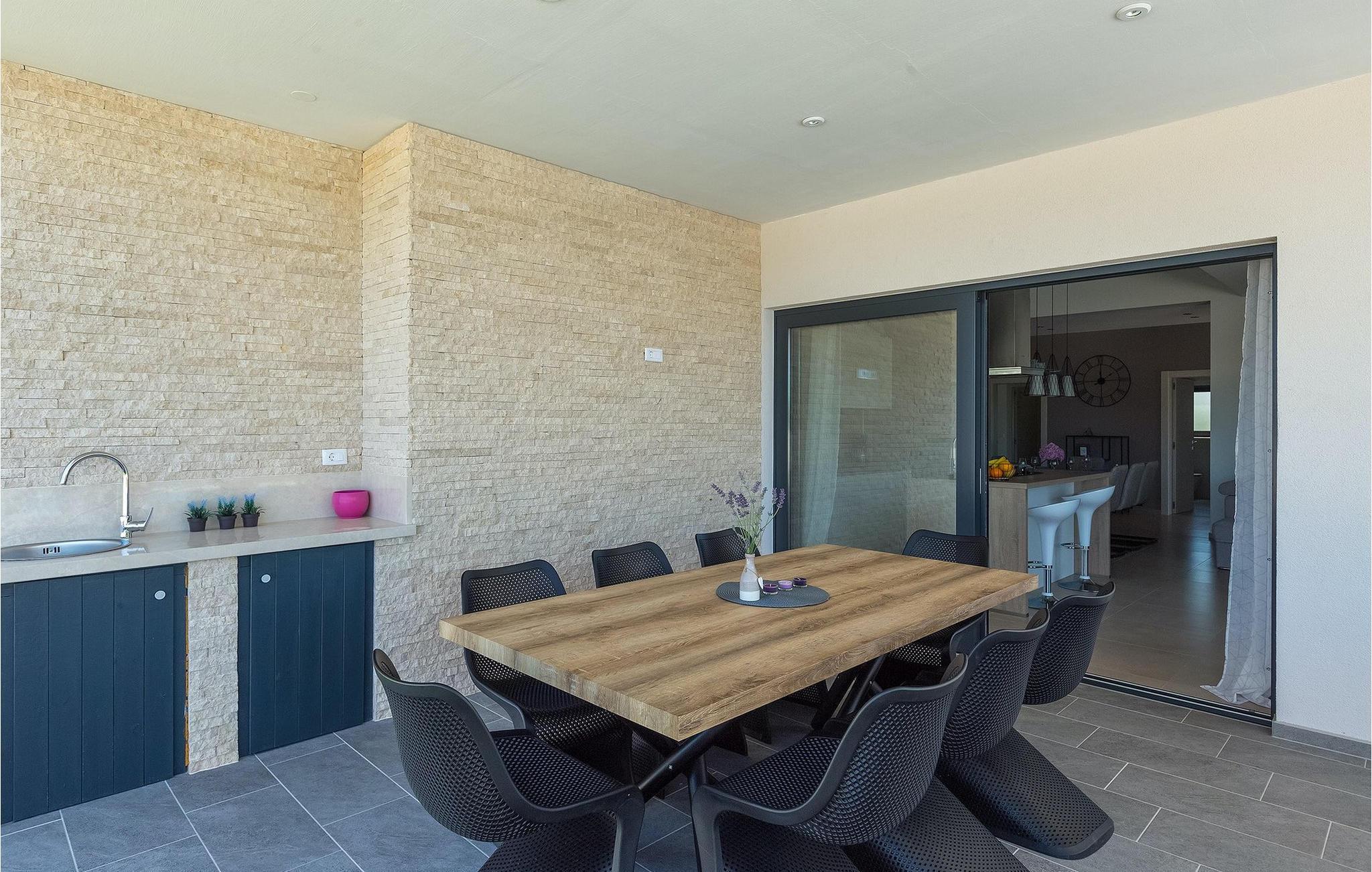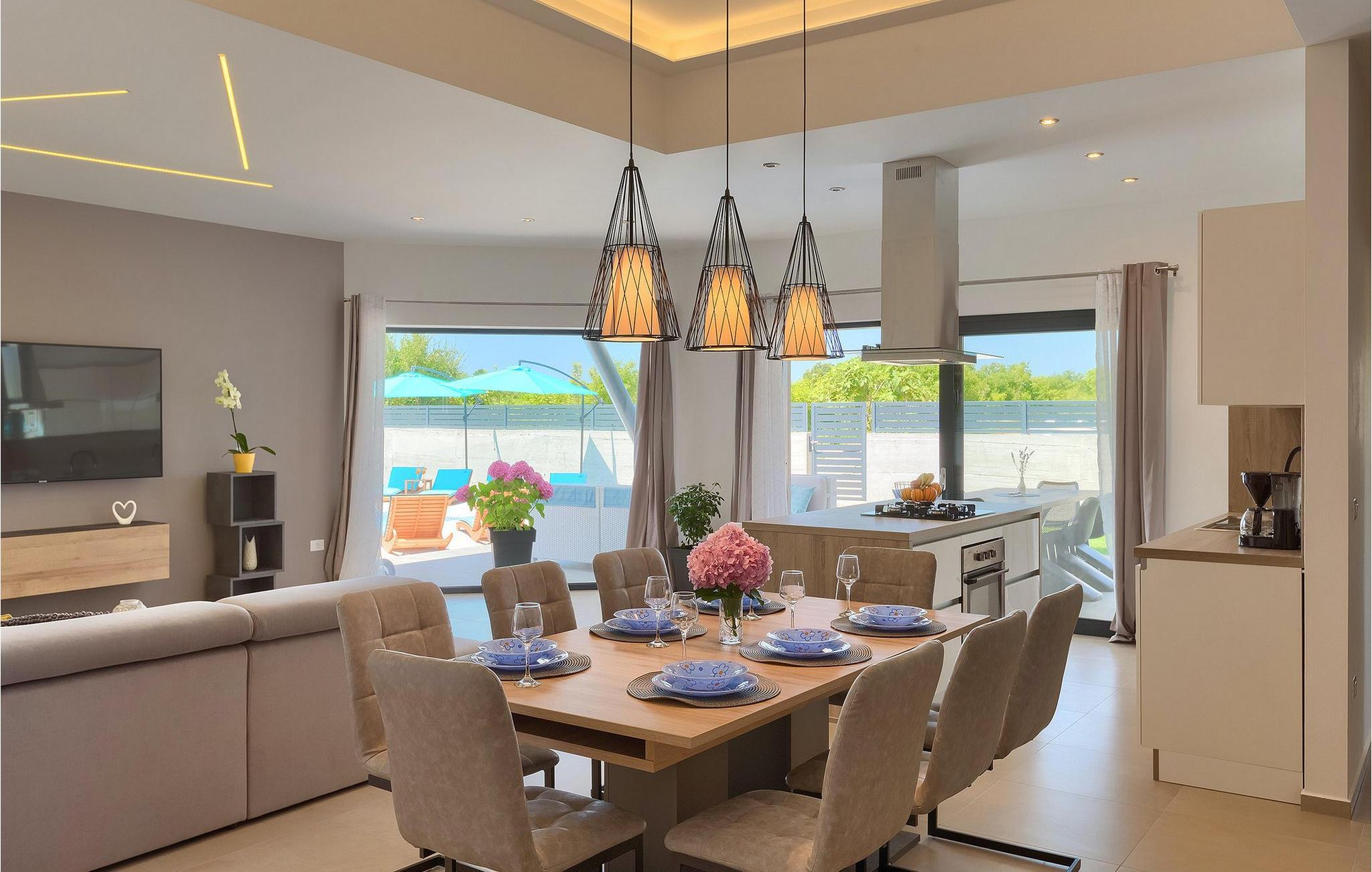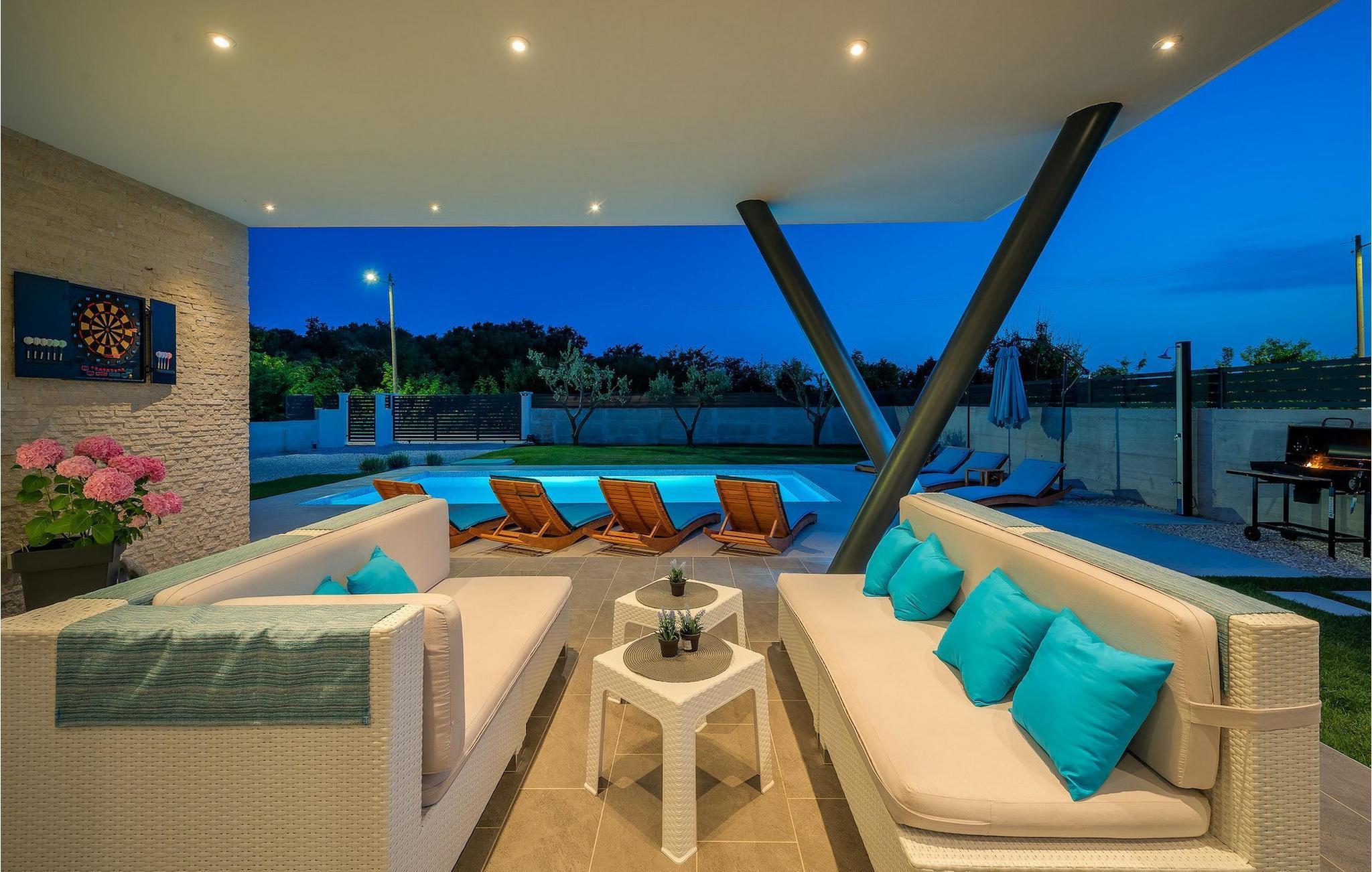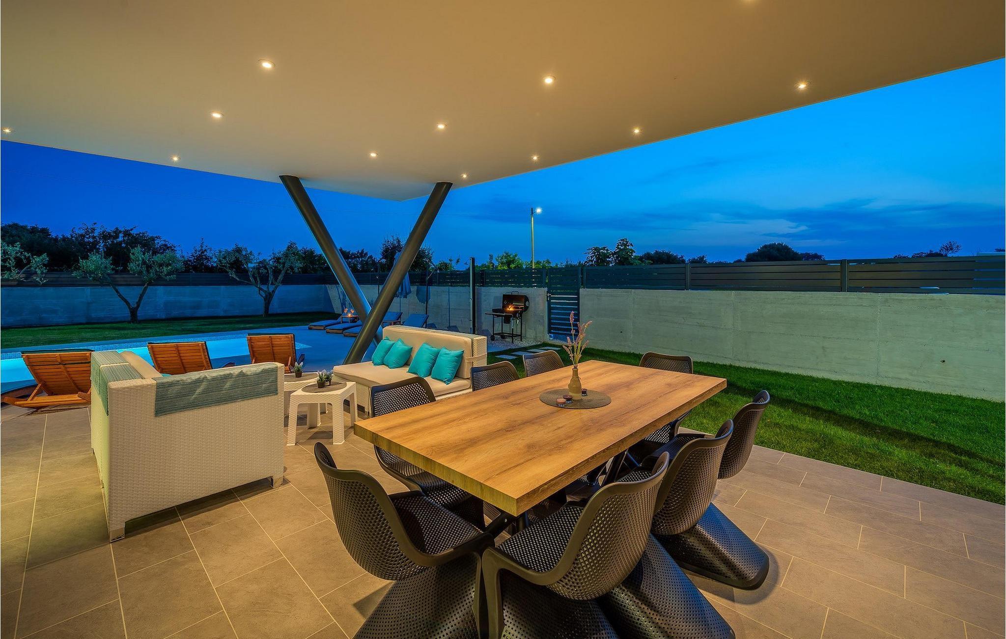 Die Villa verfügt über vier Schlafzimmer mit jeweils eigenem Bad. In 3 von 4 Schlafzimmern finden Sie jeweils 2 Einzelbetten, die nach Ihren Wünschen zusammengestellt werden können, in ein bequemes Doppelbett. Im 4. Schlafzimmer finden Sie ein reguläres Doppelbett. Es gibt auch ein modernes und farbenfrohes Wohnzimmer und ein Esszimmer. Der Außenbereich ist eine beruhigende Oase mit dem privaten Pool als Mittelpunkt des Bereichs. Es gibt auch eine 40 m2 große überdachte Terrasse, die Schutz vor der Sommersonne bietet und auch als Essbereich im Freien dient. Hier können Sie an warmen Sommernächten Ihr Lieblingsgetränk oder -gericht genießen. In der Villa haben Sie kostenfreies WLAN und Parkplätze.Die Villa befindet sich in ländlicher Lage und doch sind die Strände und Resorts entlang dieser Küstenlinie nur ein paar Kilometer entfernt. Die wilde Landschaft mit ihren zahlreichen Küsten- und Waldwegen eignet sich ideal zum Radfahren, lange Erholungswanderungen und Reiten, während die regionalen Spezialitäten in den vielen charmanten Restaurants und Agro-Tourismen in der Umgebung gekostet werden können. Für diejenigen mit abenteuerlichem Geist gibt es ein hervorragend ausgestattetes Tauchzentrum in der nahe gelegenen Bucht von Krnica, während der bekannte Sommerurlaubsort Duga Uvala einen modernen Hotelkomplex mit einem tollen Wellnesscenter sowie diverse Sportanlagen, Bars und Disco bietet. Der beliebte Ferienort Medulin und die wunderschönen architektonischen Sehenswürdigkeiten und kulturellen Veranstaltungen von Pula sind auch nah.
