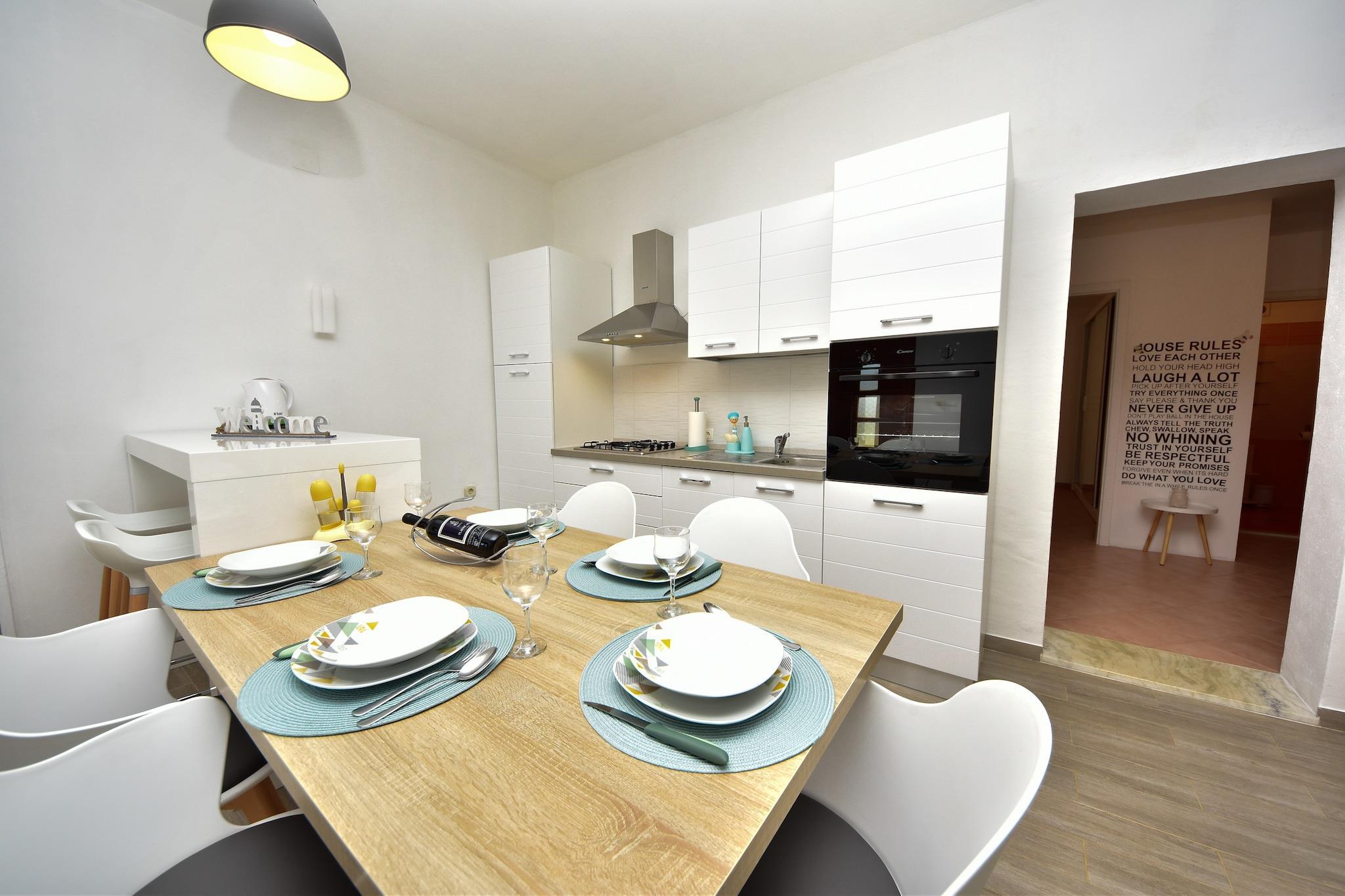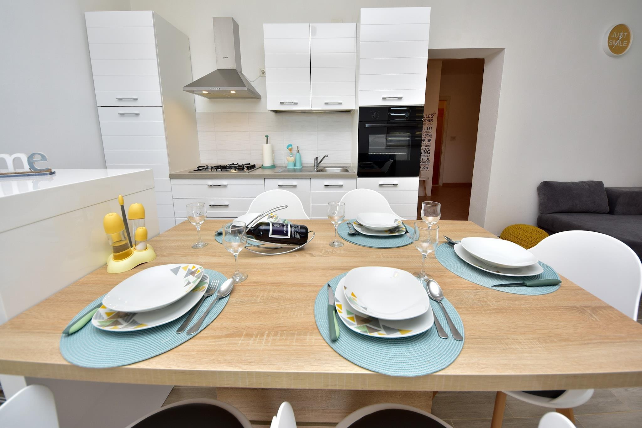 Dieses geräumige Apartment in Krusevo bietet komfortablen Aufenthalt für bis zu sechs Gäste. Nur 50 Meter vom Meer und nur einen kurzen Spaziergang vom Stadtzentrum, Restaurants und Einkaufsmöglichkeiten entfernt, bietet es die perfekte Lage für Komfort und Entspannung. Die private, überdachte Terrasse und der beleuchtete Gemeinschaftsgarten laden zum Entspannen ein. Das Apartment verfügt über eine offene Küche, die mit modernen Geräten wie Kaffeemaschine, Backofen, Mikrowelle und Geschirrspüler ausgestattet ist. Das Wohn-/Esszimmer ist mit Klimaanlage, einem Doppelschlafsofa, einem Flachbild-Sat-TV und Sitzgelegenheiten für sechs Personen ausgestattet. Zwei Schlafzimmer verfügen über ein Etagenbett und zwei Einzelbetten sowie ein Badezimmer mit Dusche und Haartrockner. Für Unterhaltung sorgen ein Trampolin, eine Rutsche, Tischtennis, Darts, eine Schaukel und Fahrräder. Gästen stehen außerdem Grillmöglichkeiten und eine gemeinschaftlich genutzte Waschmaschine zur Verfügung. Parkplätze stehen vor Ort zur Verfügung und kostenloses WLAN sorgt für Ihre Verbindung während Ihres gesamten Aufenthalts. Der Flughafen ist 35 km entfernt, touristische Einrichtungen erreichen Sie nach 4 km.