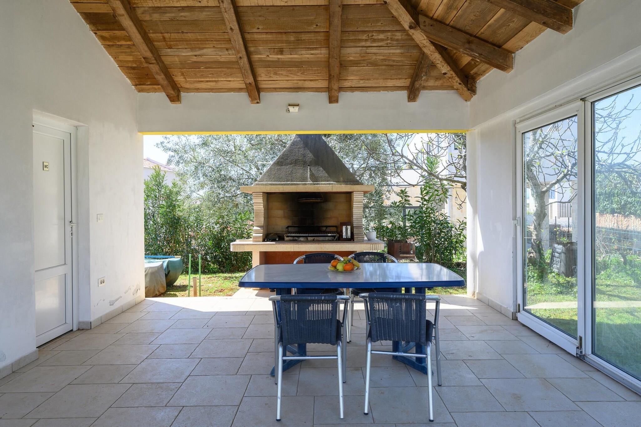 Das Anwesen bietet neben seiner gemütlichen und effizienten Raumaufteilung ein Apartment mit einem Schlafzimmer und Platz für bis zu drei Gäste. Das Apartment ist auf Komfort und Bequemlichkeit ausgelegt und verfügt über einen Garten mit Gartenmöbeln, ein eingezäuntes Grundstück und einen Grillbereich für Mahlzeiten im Freien. Die Gäste können den Gemeinschaftspool genießen, der sich perfekt zum Entspannen eignet. Das Apartment ist mit modernen Annehmlichkeiten ausgestattet, darunter Klimaanlage, eine Wärmepumpe für ganzjährigen Komfort, WLAN, ein Fernseher mit Satellitenkanälen in Englisch und Deutsch und Parkplätze im Freien auf dem Grundstück. Der Balkon bietet einen angenehmen Platz, um die Umgebung zu genießen. Das Apartment befindet sich in Kukci, in einer ruhigen Vorstadtgegend, und bietet einfachen Zugang zu nahe gelegenen Sehenswürdigkeiten und Dienstleistungen. Die Gäste können die nahe gelegenen Strände, Restaurants und die Stadt Porec erkunden, die nur eine kurze Autofahrt entfernt ist. Die Lage des Apartments gewährleistet auch einfachen Zugang zu Einkaufsmöglichkeiten und öffentlichen Verkehrsmitteln, was es zu einem idealen Ausgangspunkt für die Erkundung der Region Istrien macht. Die offene Küche des Apartments ist komplett mit Induktionsgeräten ausgestattet, darunter Kühlschrank, Mikrowelle, Gefrierschrank, Geschirrspüler, Kaffeemaschine, Toaster und Wasserkocher. Sie ist mit allen notwendigen Küchenutensilien, Geschirr und Besteck ausgestattet, sodass die Zubereitung von Mahlzeiten mühelos vonstatten geht. Mit durchdachten Annehmlichkeiten und einer ruhigen Lage eignet sich dieses Apartment gut für kleine Familien oder Paare, die eine komfortable und praktische Unterkunft suchen.