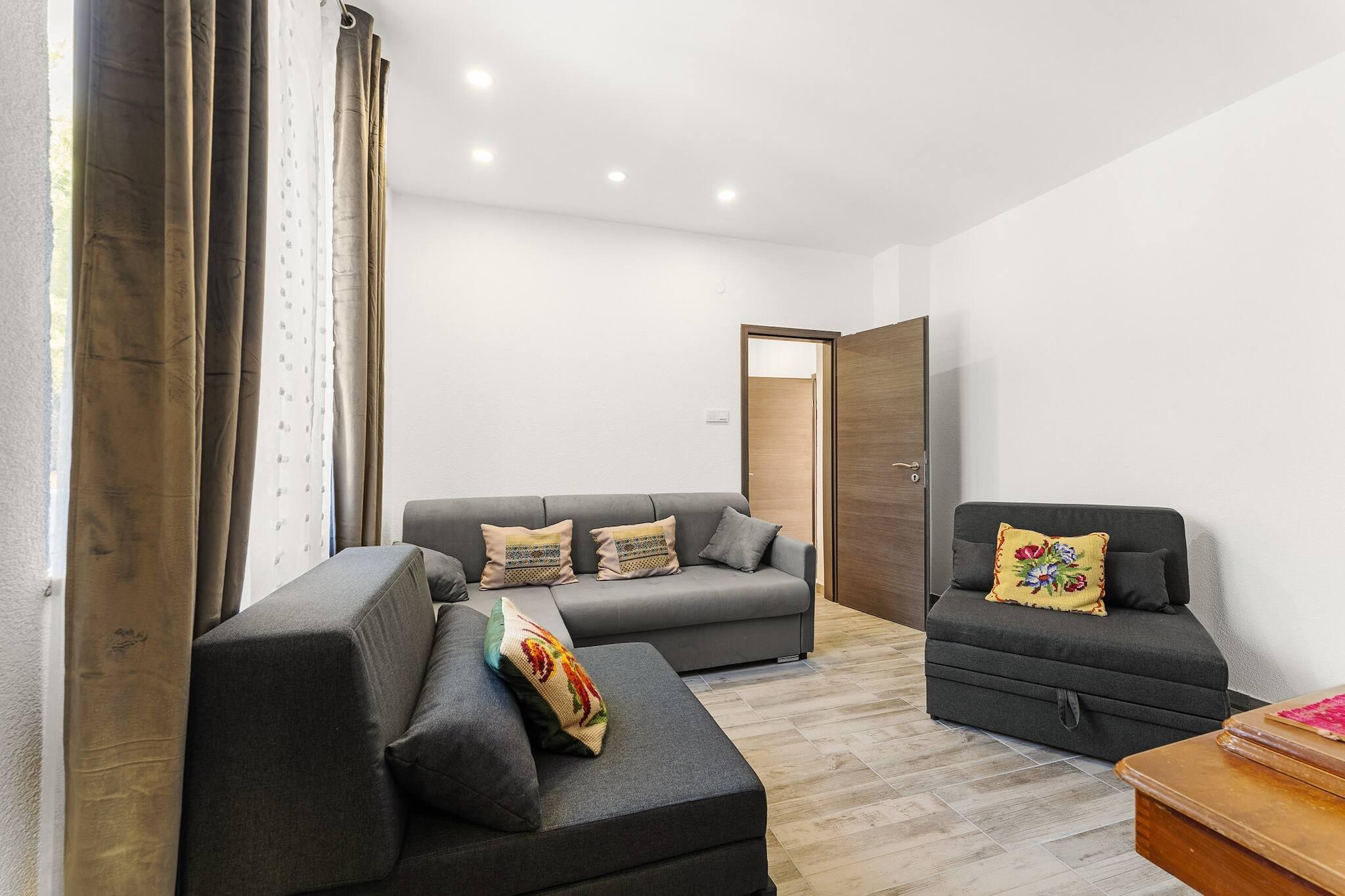 Dieses gemütliche Apartment mit einem Schlafzimmer in Kukljica bietet dank seiner komfortablen Raumaufteilung Platz für bis zu vier Gäste und ist der perfekte Rückzugsort am Meer. Der Wohnbereich verfügt über zwei Einzelschlafsofas und ein Doppelschlafsofa und eignet sich daher ideal für kleine Familien oder Paare. Die gut ausgestattete Küche mit wichtigen Geräten wie Herd, Kühlschrank und Kaffeemaschine ermöglicht es Gästen, ihre eigenen Mahlzeiten zuzubereiten. Zum Apartment gehört außerdem ein privater Garten mit Gartenmöbeln und einem Grillplatz, ideal für Mahlzeiten im Freien. Klimaanlage, WLAN und kostenlose Parkplätze sorgen für zusätzlichen Komfort. Nur 240 Meter vom nächsten Sandstrand entfernt bietet dieses Apartment einfachen Zugang zu Sand- und Felsstränden und bietet Gästen eine große Auswahl an Küstenerlebnissen. Das Stadtzentrum von Kukljica mit seinen Cafés, Restaurants und Geschäften ist fußläufig erreichbar. Der Flughafen Zadar und der Nationalpark Krka sind bequem erreichbar und bieten vielfältige Aktivitäten und Naturschönheiten zum Erkunden. Diese erstklassige Lage macht das Apartment zum idealen Ausgangspunkt für Entspannung und Abenteuer. Das Apartment bietet zudem einen privaten Parkplatz und einen eigenen Eingang für zusätzlichen Komfort. Ob Sie den Tag am Strand verbringen oder die nahegelegenen Sehenswürdigkeiten erkunden – dieses charmante Anwesen ist der perfekte Ort zum Entspannen und Erholen während Ihres Kroatienurlaubs. Für Bootsbesitzer steht auf Anfrage und gegen Aufpreis ein Liegeplatz zur Verfügung.