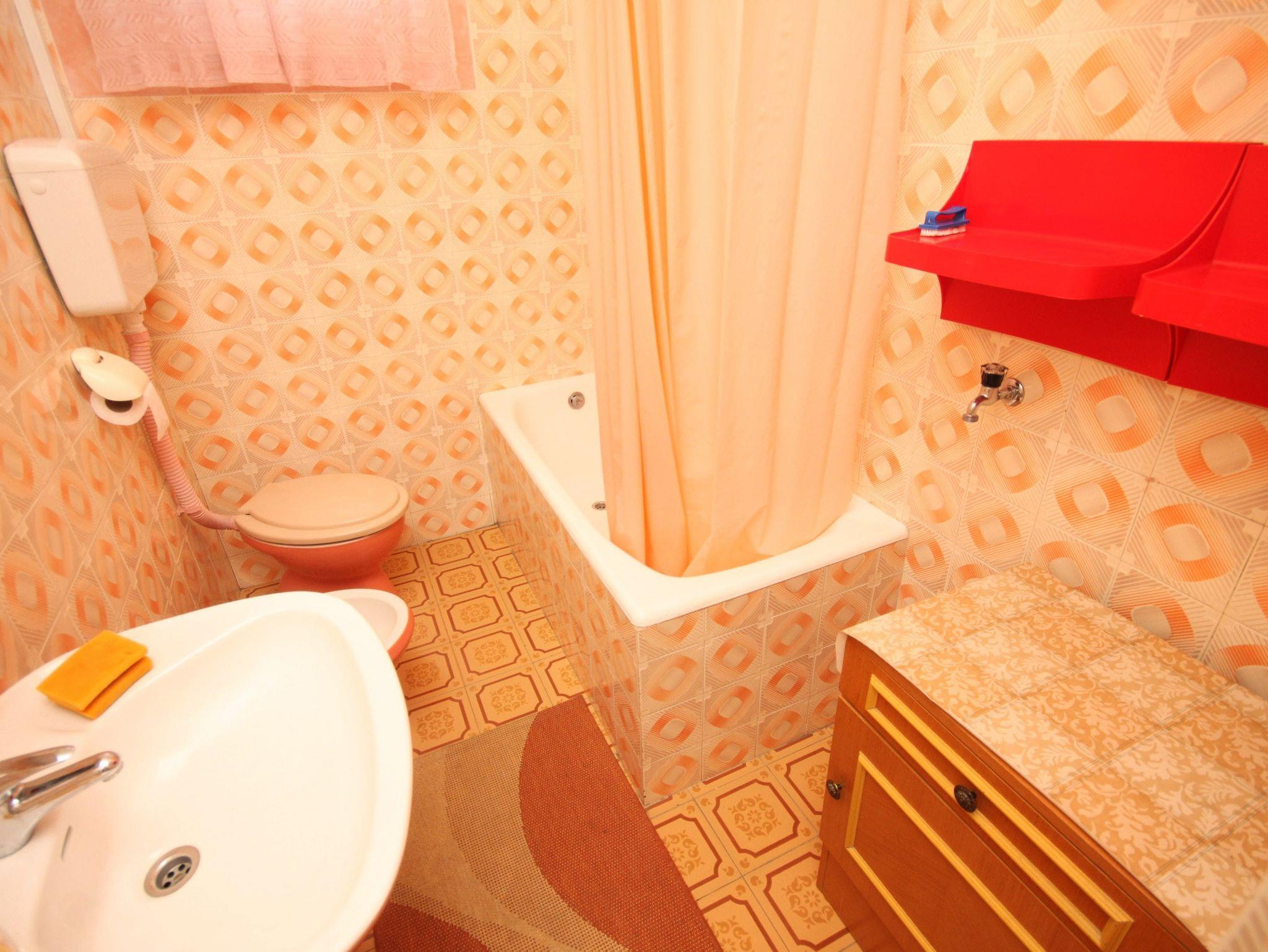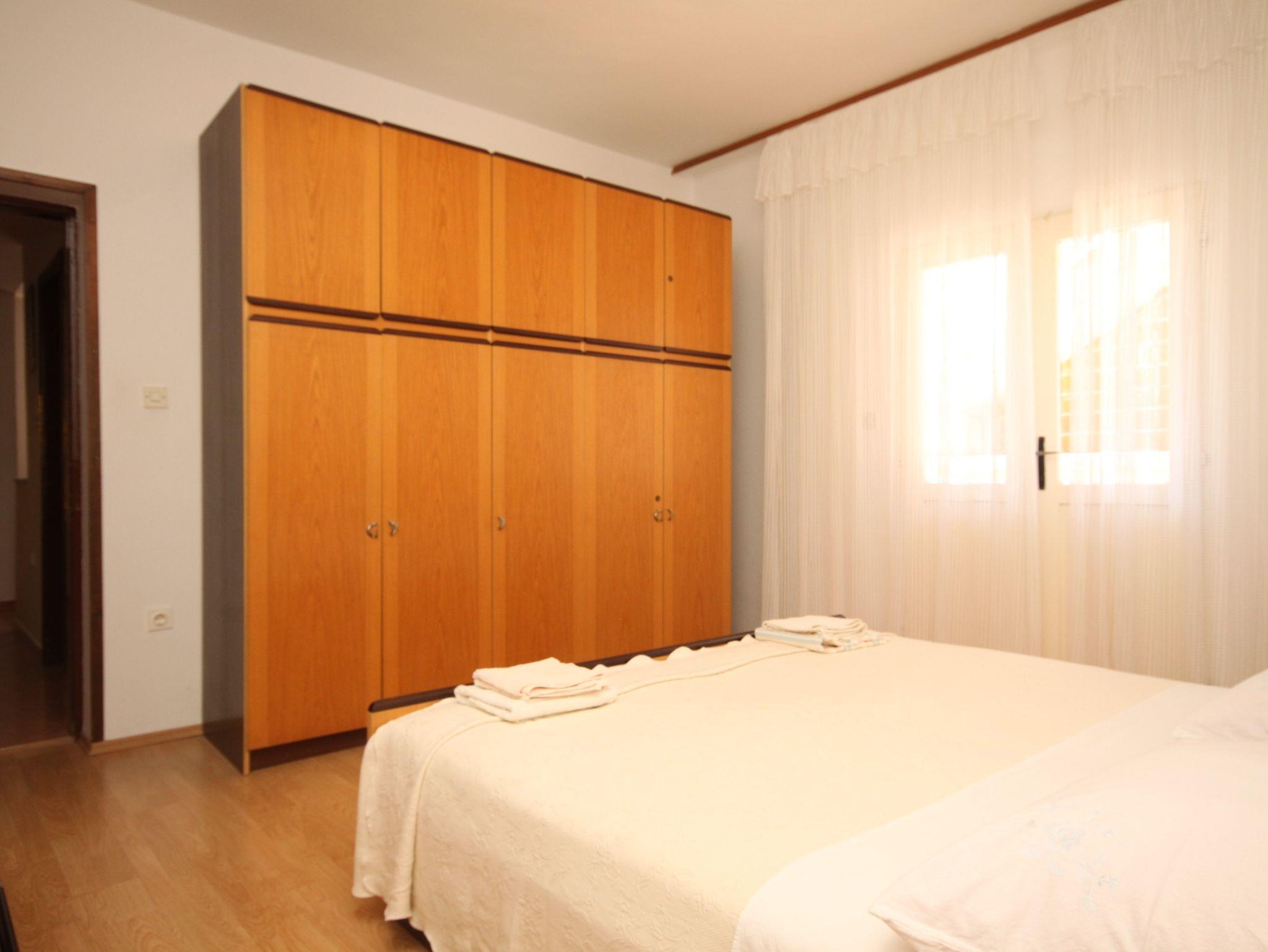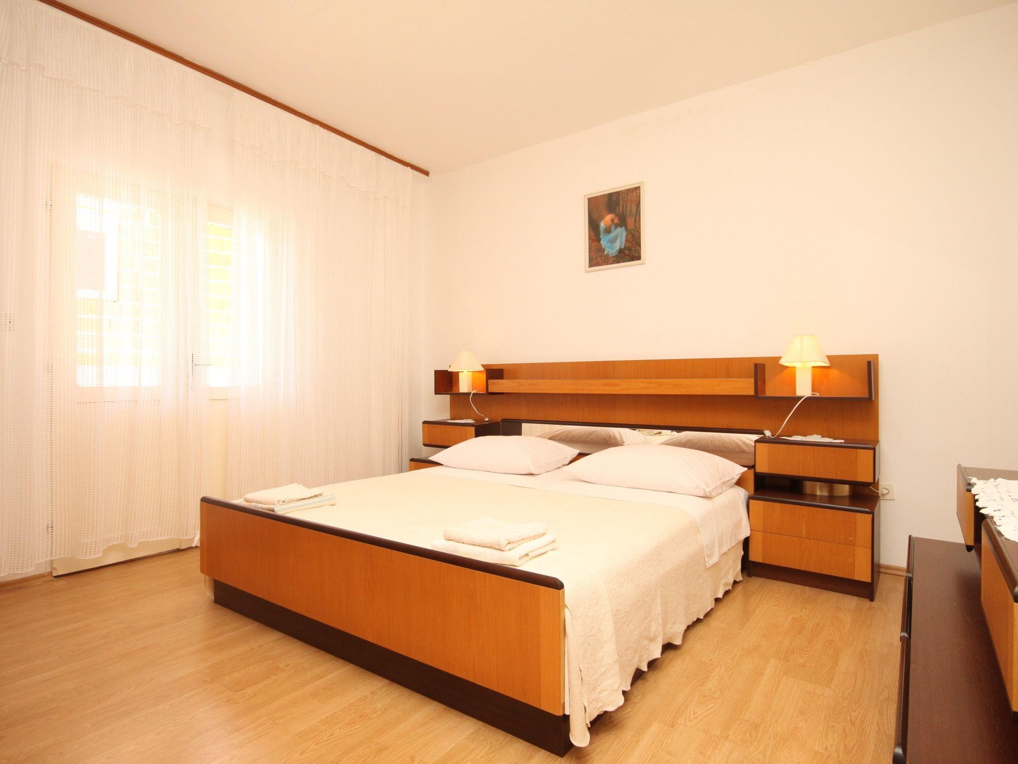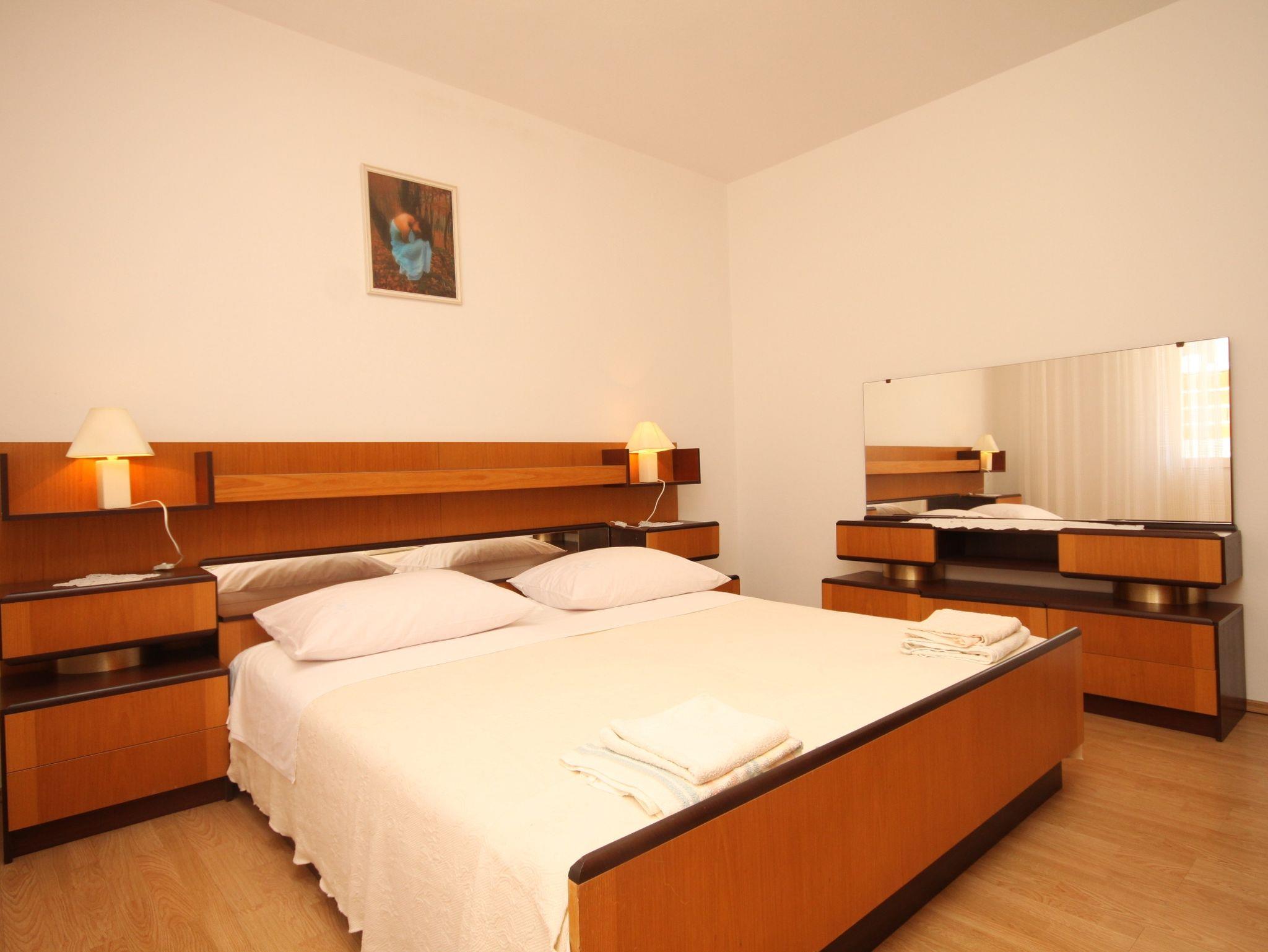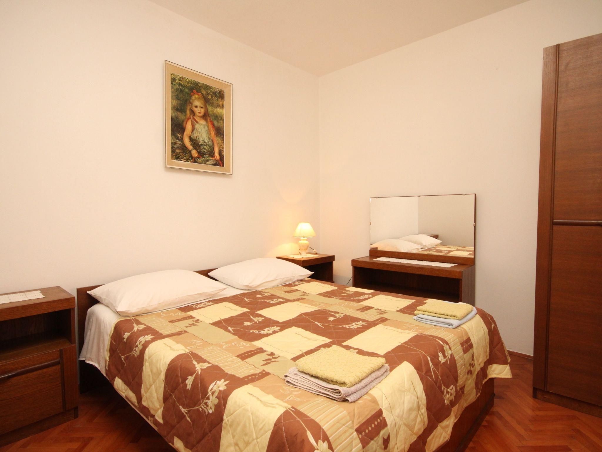 Ferienwohnung bietet Platz für 5 Gäste. Die Betten sind in Schlafzimmern, die es 2 gibt, und in Wohnzimmer, innerhalb einer Gesamtfläche von 56m2, angeordnet. Die Gäste haben eine eigene Terrasse zur Verfügung, auf der sie in warmen Sommernächten genießen können. Es ist erlaubt, Speisen auf dem Gemeinschafts-Grill vorzubereiten. In der Unterkunftseinheit besteht die Möglichkeit des Mitbringens von Haustieren gegen Aufpreis. IM PREIS INBEGRIFFEN: Kurtaxe, Endreinigung, Klimatisierung, Parkplatz, Internet, Föhn. VERBINDLICHE ZUSÄTZLICHE KOSTEN: Aufzahlung für Kurzaufenthalte (prozentualer Zuschlag pro Nächtigungsanzahl: 30% - 1, 20% - 2, 10% - 3). UNVERBINDLICHE ZUSÄTZLICHE KOSTEN: Wäschewaschen (10,00 € Waschen), Bootsanlegeplatz (10,00 € pro Nacht), Haustiere (8,00 € pro Nacht), Zusatzbett (10,00 € pro Nacht). Die Verfügbarkeit zusätzlicher Dienstleistungen in Ihrem reservierten Termin und die Preise derselben (falls nicht aufgeführt) müssen im Voraus überprüft werden. Zusätzliche Dienstleistungen die in der Zahlungsaufforderung nicht aufgeführt sind werden direkt beim Vermieter bezahlt, angenommen der Gast nutzt auch diese.