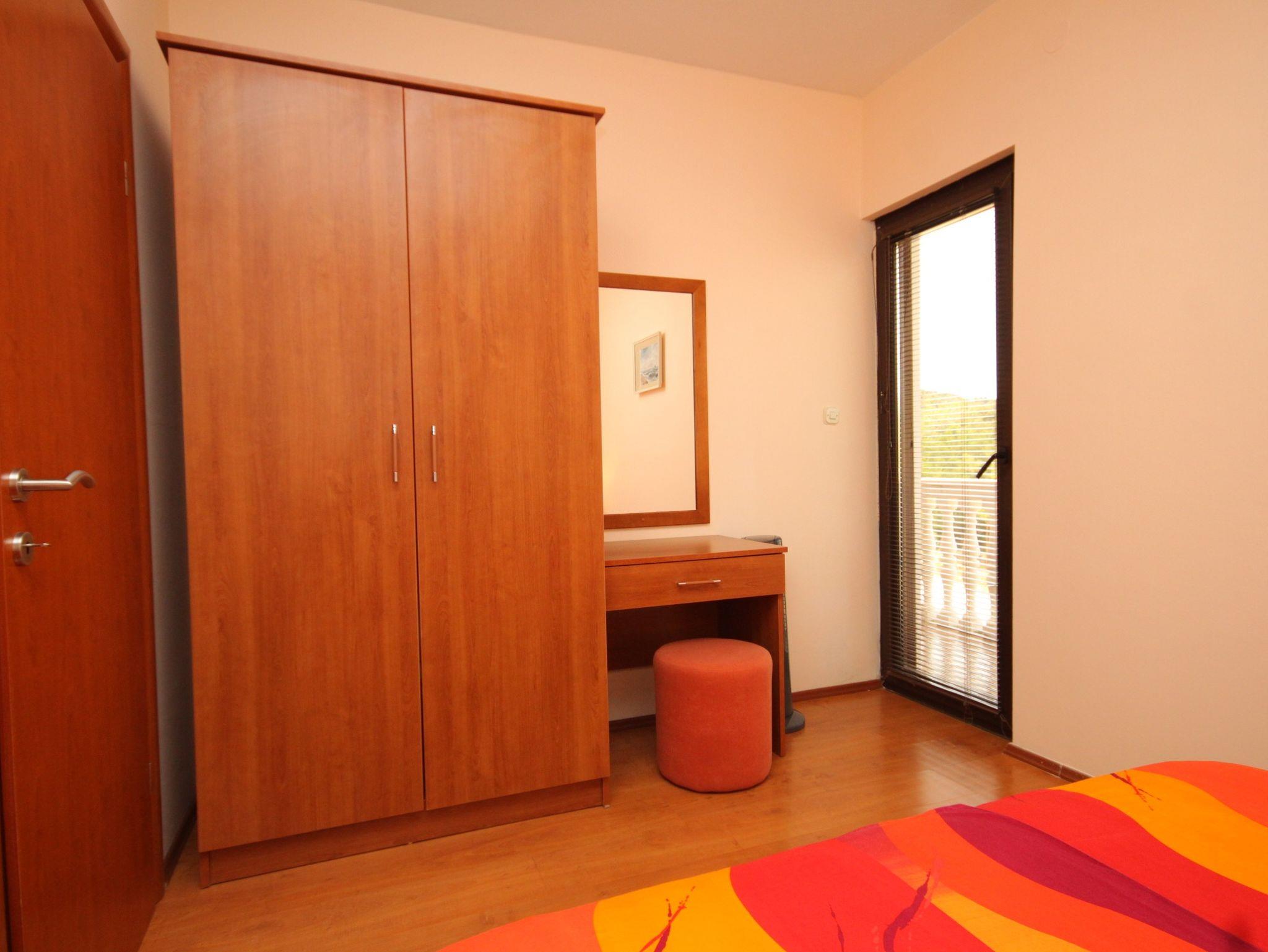 Ferienwohnung bietet Platz für 4 Gäste. Die Betten sind in Schlafzimmern, die es 2 gibt, innerhalb einer Gesamtfläche von 43m2, angeordnet. Die Gäste haben einen eigenen Balkon zur Verfügung, auf der sie in warmen Sommernächten genießen können. Das Apartment bietet Meerblick. Es ist erlaubt, Speisen auf dem Gemeinschafts-Grill vorzubereiten. In der Unterkunftseinheit besteht die Möglichkeit des Mitbringens von Haustieren gegen Aufpreis. IM PREIS INBEGRIFFEN: Kurtaxe, Endreinigung, Klimatisierung, Parkplatz, Internet, Wäschewaschen, Bügeleisen, Bügelbrett, Föhn. VERBINDLICHE ZUSÄTZLICHE KOSTEN: Aufzahlung für Kurzaufenthalte (prozentualer Zuschlag pro Nächtigungsanzahl: 30% - 1, 20% - 2, 10% - 3). UNVERBINDLICHE ZUSÄTZLICHE KOSTEN: Haustiere (5,00 € pro Nacht). Die Verfügbarkeit zusätzlicher Dienstleistungen in Ihrem reservierten Termin und die Preise derselben (falls nicht aufgeführt) müssen im Voraus überprüft werden. Zusätzliche Dienstleistungen die in der Zahlungsaufforderung nicht aufgeführt sind werden direkt beim Vermieter bezahlt, angenommen der Gast nutzt auch diese. Ermäßigung auf den Grundpreis: Gratistag 28=25 (bei einem Aufenthalt von 28 oder mehr Tagen erhalten Sie 3 kostenlose Tage für den Aufenthalt bis 31.12.26).