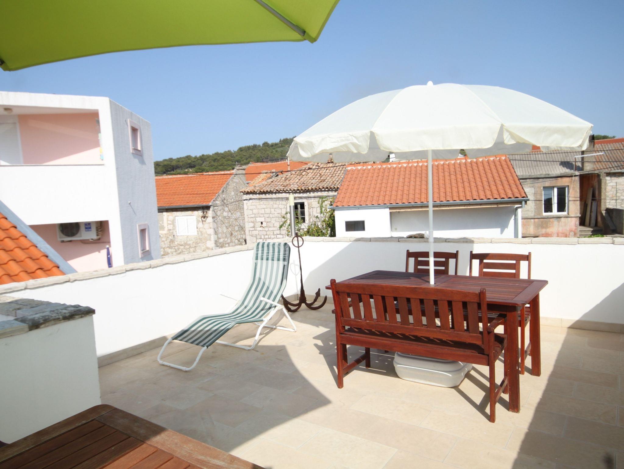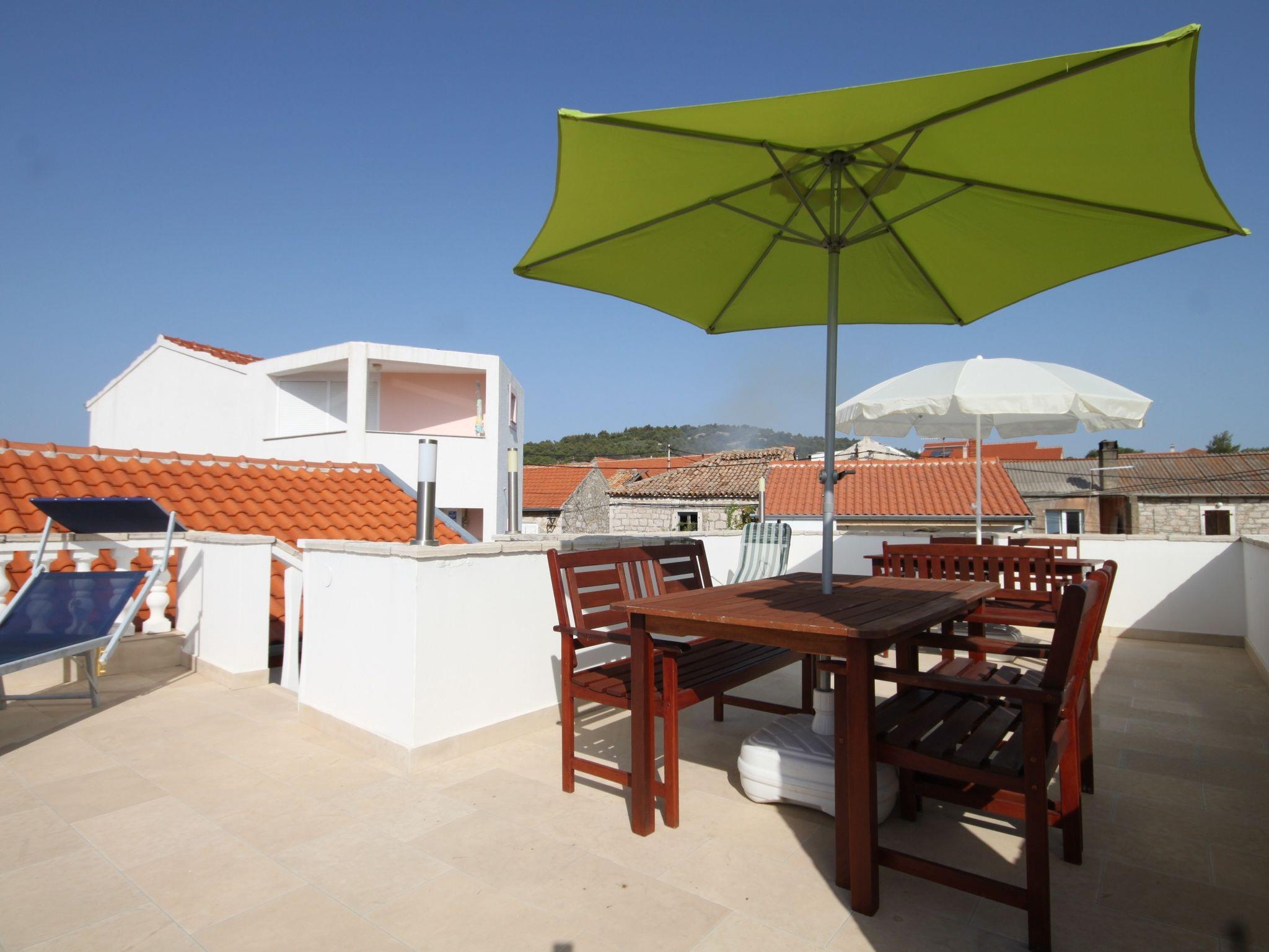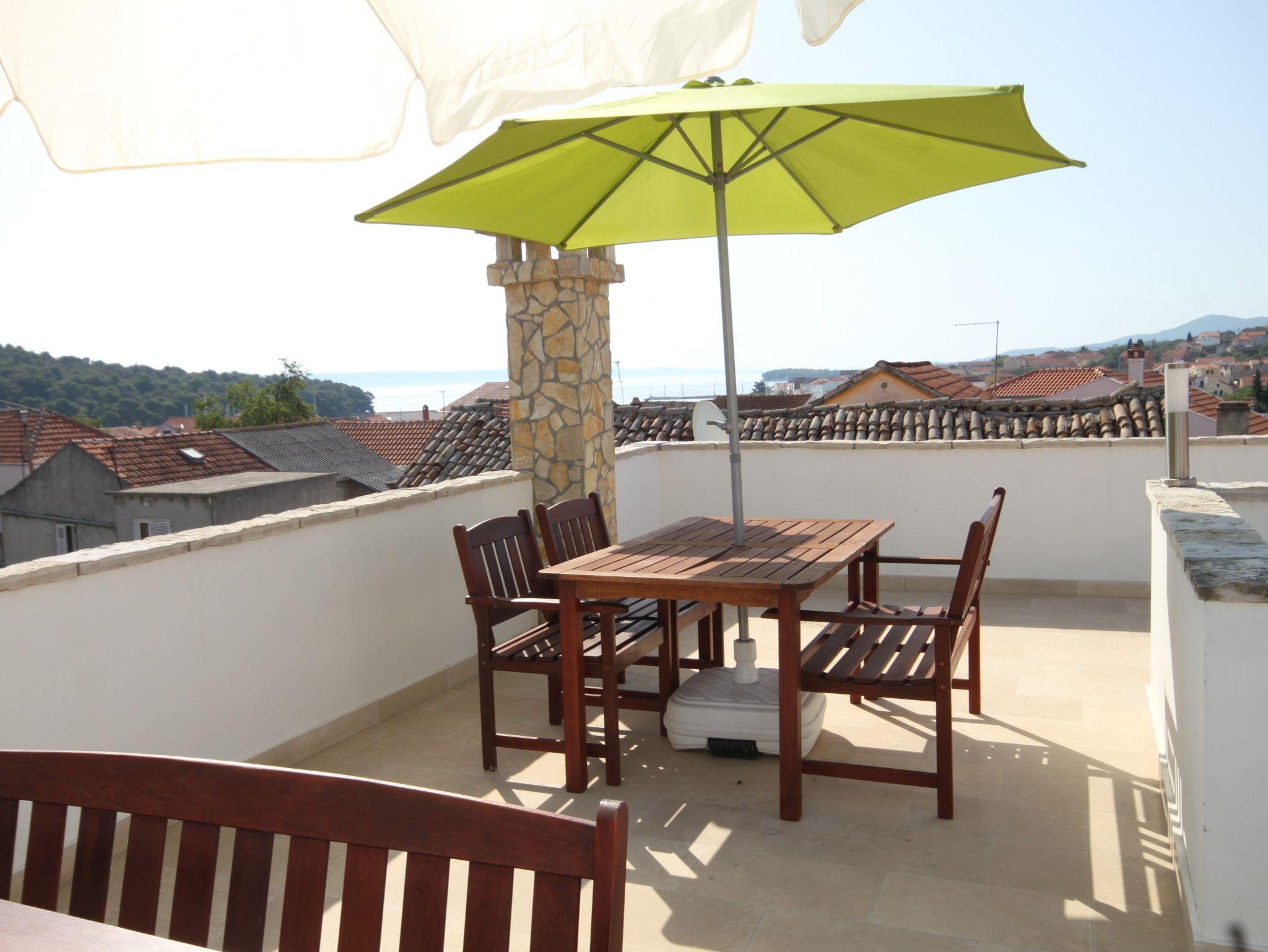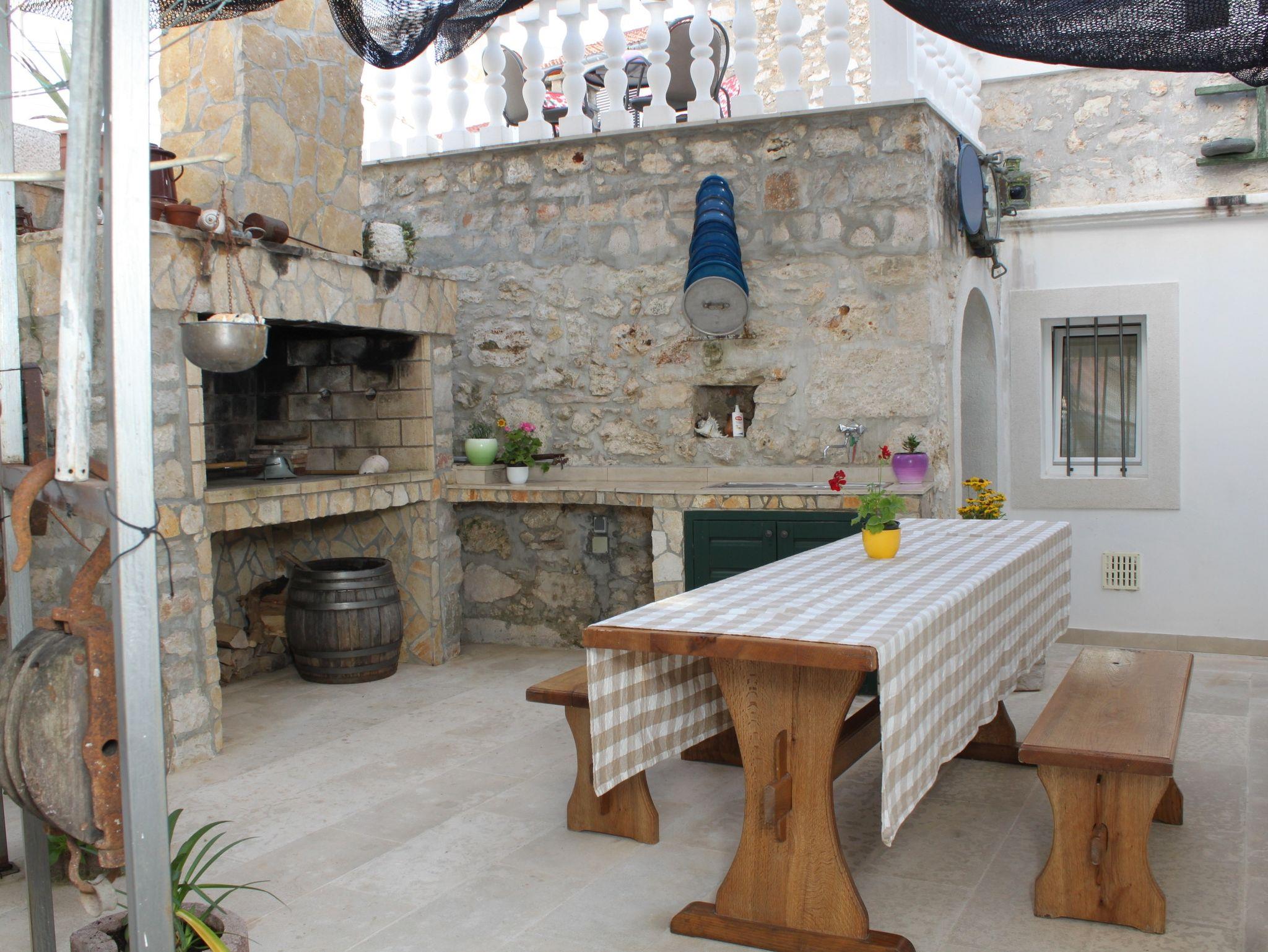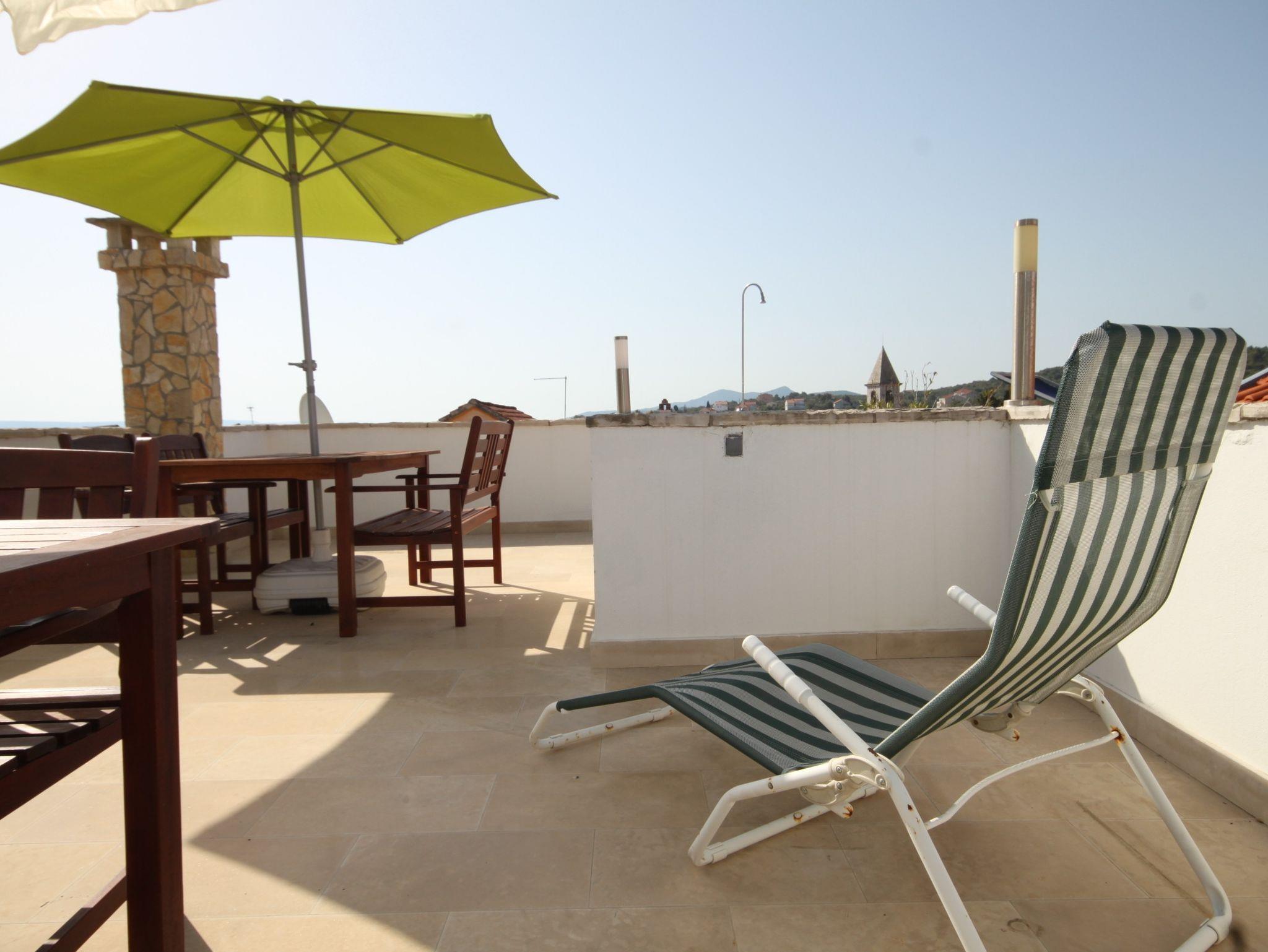 Haus bietet Platz für 9 Gäste. Die Betten sind in Schlafzimmern, die es 4 gibt, innerhalb einer Gesamtfläche von 106m2, angeordnet. Die Gäste haben eine eigene Terrasse zur Verfügung, auf der sie in warmen Sommernächten genießen können. Das Haus bietet Meerblick. Für vollen Genuss und Entspannung gibt es einen privaten Grill für Gäste dieser Unterkunft. IM PREIS INBEGRIFFEN: Kurtaxe, Endreinigung, Klimatisierung, Internet, Kinderbett, Bügeleisen, Bügelbrett, Föhn, Liegestühle. VERBINDLICHE ZUSÄTZLICHE KOSTEN: Aufzahlung für Kurzaufenthalte (prozentualer Zuschlag pro Nächtigungsanzahl: 30% - 1, 20% - 2, 10% - 3). Die Verfügbarkeit zusätzlicher Dienstleistungen in Ihrem reservierten Termin und die Preise derselben (falls nicht aufgeführt) müssen im Voraus überprüft werden. Zusätzliche Dienstleistungen die in der Zahlungsaufforderung nicht aufgeführt sind werden direkt beim Vermieter bezahlt, angenommen der Gast nutzt auch diese. Ermäßigung auf den Grundpreis: Gratistag 21=19 (bei einem Aufenthalt von 21 Tagen oder mehr erhalten Sie 2 Gratistage für den Aufenthalt bis 31.12.26).