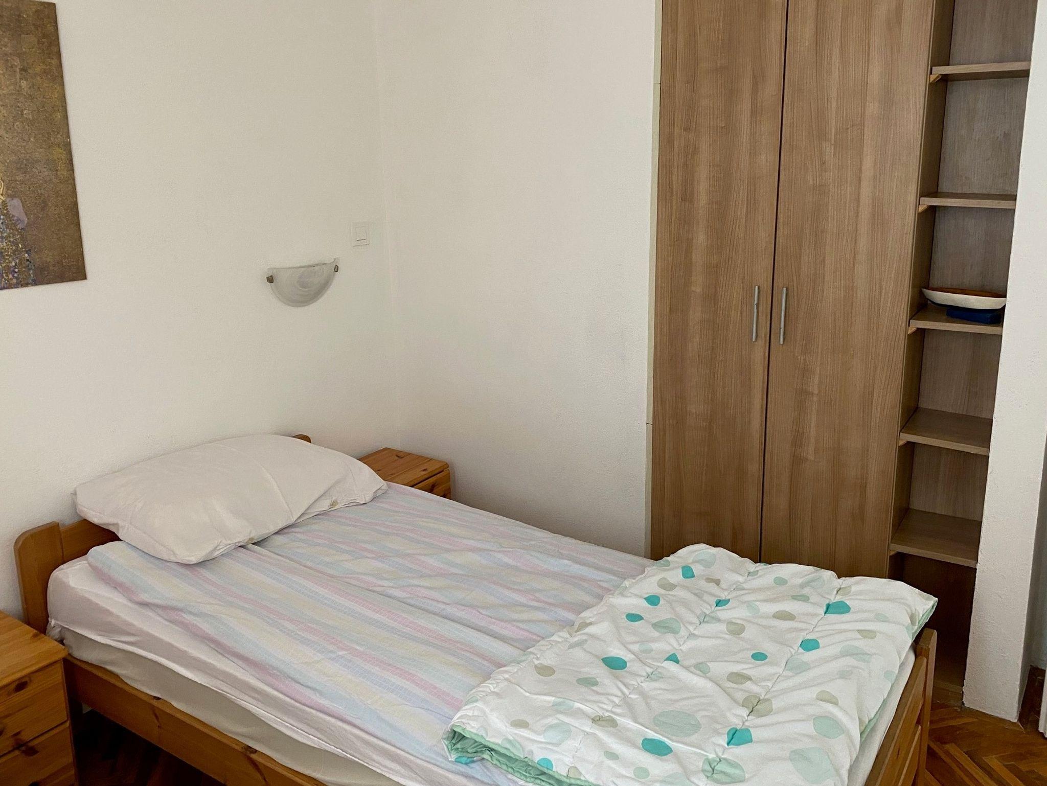 Ferienwohnung bietet Platz für 5 Gäste. Die Betten sind in Schlafzimmern, die es 2 gibt, und in Wohnzimmer, innerhalb einer Gesamtfläche von 62m2, angeordnet. Die Gäste haben eine eigene Terrasse zur Verfügung, auf der sie in warmen Sommernächten genießen können. Das Apartment bietet Meerblick. Für vollen Genuss und Entspannung gibt es einen privaten Grill für Gäste dieser Unterkunft. In der Unterkunftseinheit besteht die Möglichkeit des Mitbringens von Haustieren gegen Aufpreis. IM PREIS INBEGRIFFEN: Kurtaxe, Endreinigung, Klimatisierung, Parkplatz. UNVERBINDLICHE ZUSÄTZLICHE KOSTEN: Haustiere (5,00 € pro Nacht). Die Verfügbarkeit zusätzlicher Dienstleistungen in Ihrem reservierten Termin und die Preise derselben (falls nicht aufgeführt) müssen im Voraus überprüft werden. Zusätzliche Dienstleistungen die in der Zahlungsaufforderung nicht aufgeführt sind werden direkt beim Vermieter bezahlt, angenommen der Gast nutzt auch diese. Ermäßigung auf den Grundpreis: Gratistag 14=13 (bei einem Aufenthalt von 14 Tagen oder mehr erhalten Sie einen Gratistag für den Aufenthalt bis 31.12.26).