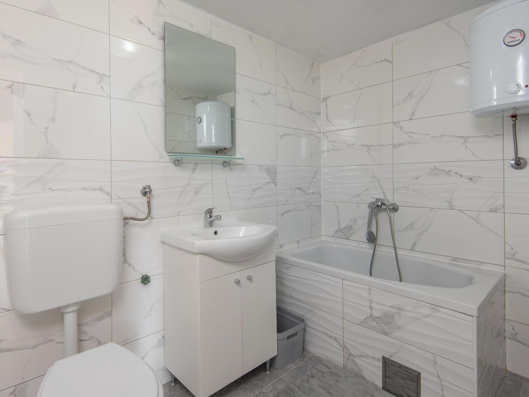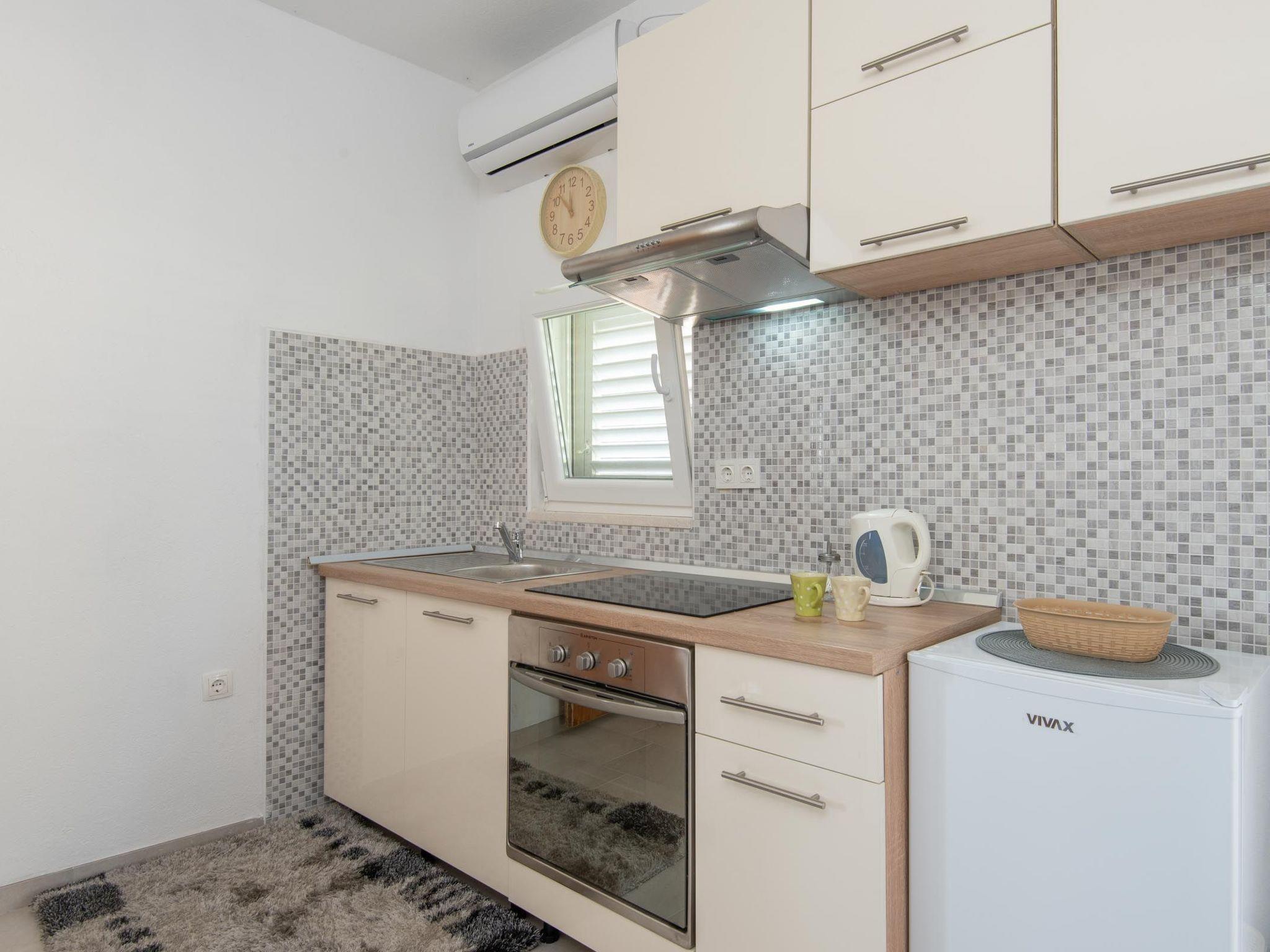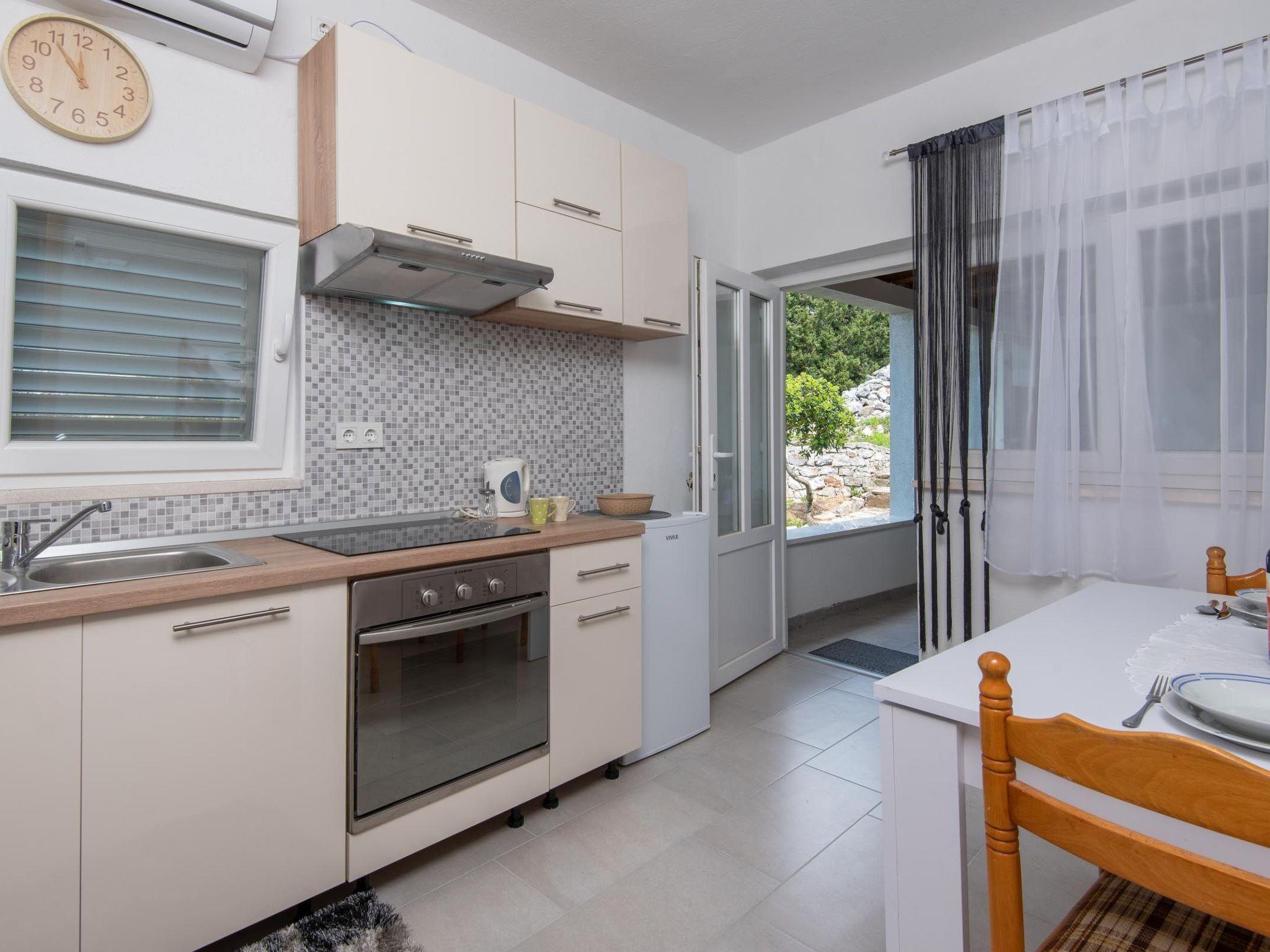 Der Außenbereich des Hauses ist ebenso beeindruckend, mit einer großen Terrasse und einem Balkon, die die Gäste dazu einladen, die Natur in Ruhe zu genießen. Der Garten steht ausschließlich den Gästen zur Verfügung und bietet ein lauschiges Plätzchen zum Entspannen und Genießen der schönen Umgebung. Da keine Haustiere erlaubt sind, können die Gäste den unberührten Zustand der Außenbereiche genießen. Die zusätzlichen Grilleinrichtungen bieten eine perfekte Gelegenheit, im Freien zu speisen und die milden dalmatinischen Abende zu genießen.