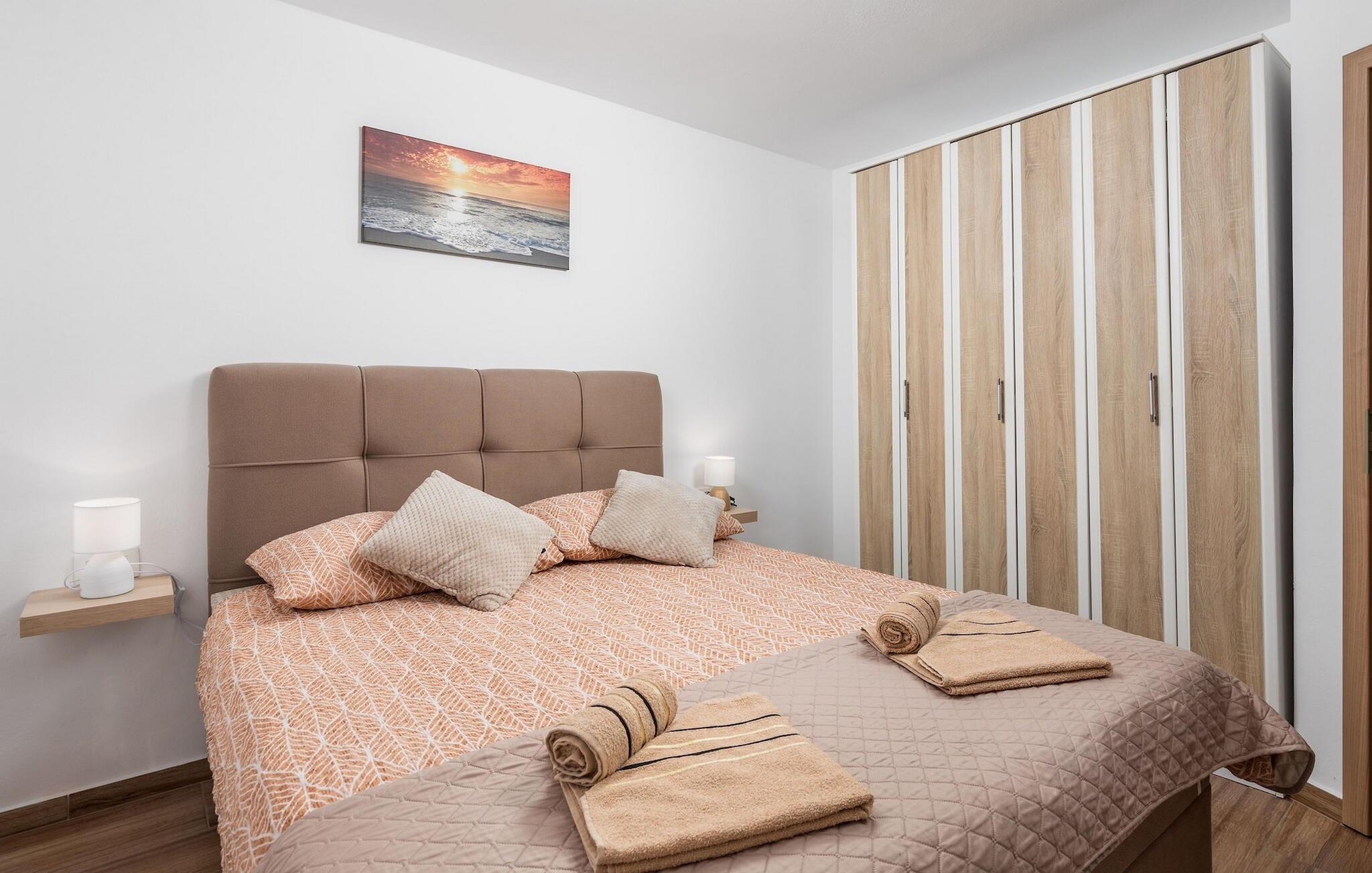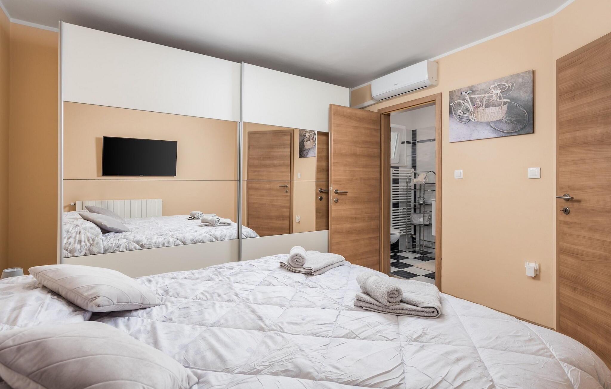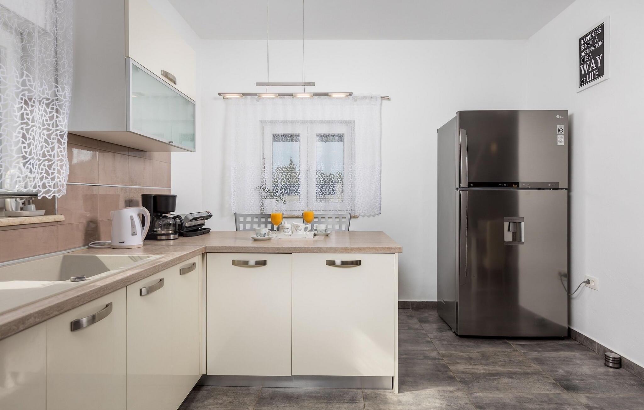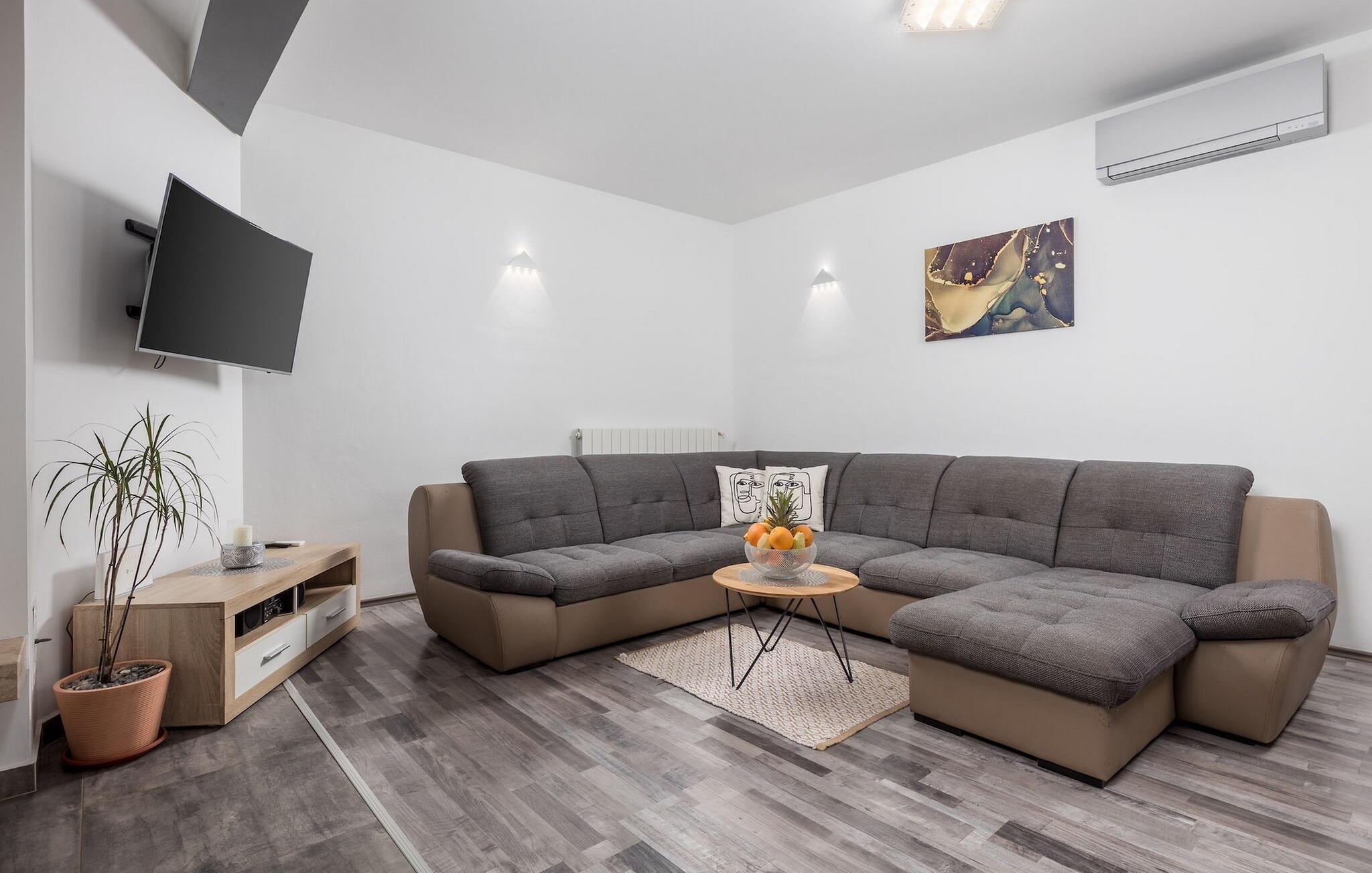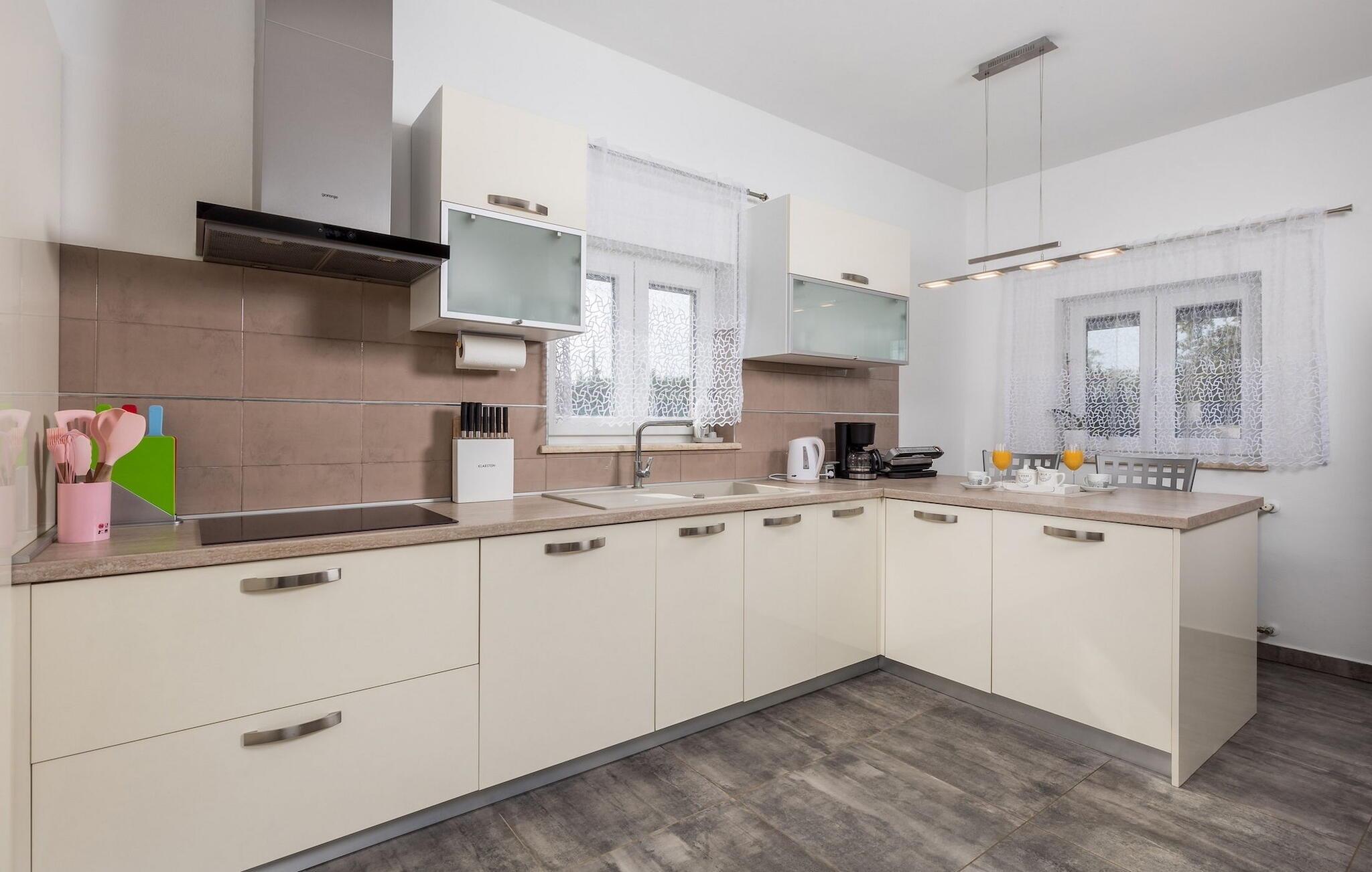 Verbringen Sie einen wunderschönen, erholsamen Urlaub in diesem charmanten Ferienhaus. Villa Daris kann bis zu 6+2 Gäste beherbergen und eignet sich perfekt für einen Urlaub mit einer Gruppe von Freunden oder der Familie. Die Villa ist mit viel Liebe zum Detail im modernen Design eingerichtet und eignet sich besonders für Familien mit kleinen Kindern, da sich alle Räume im Innenteil des Hauses auf einer Ebene befinden.
