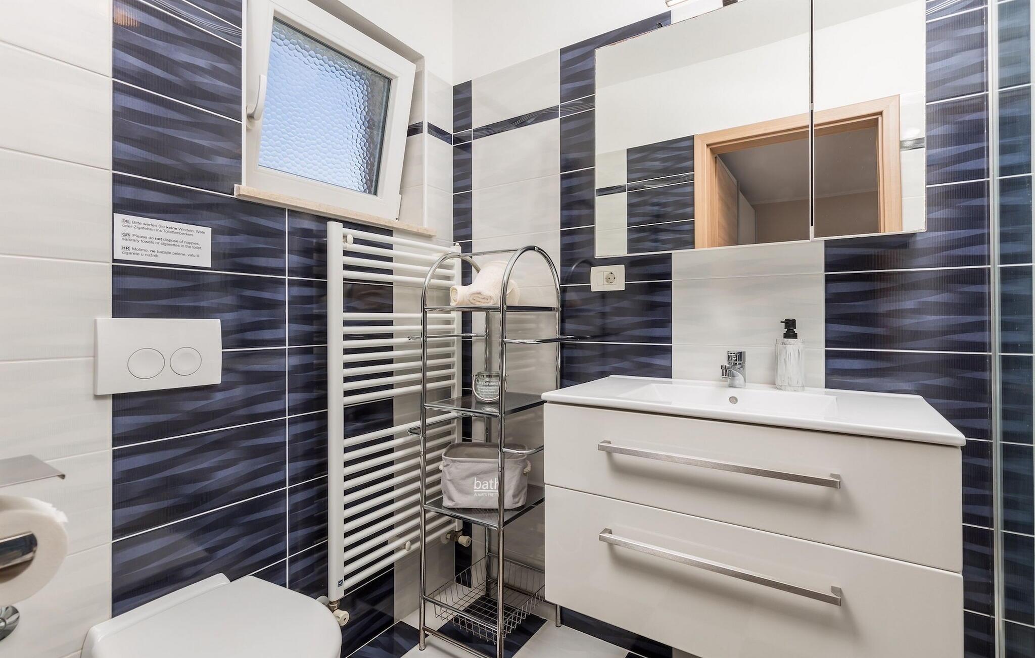 Badezimmer (nr. 2) - WC. Warmes und kaltes Wasser. Dusche