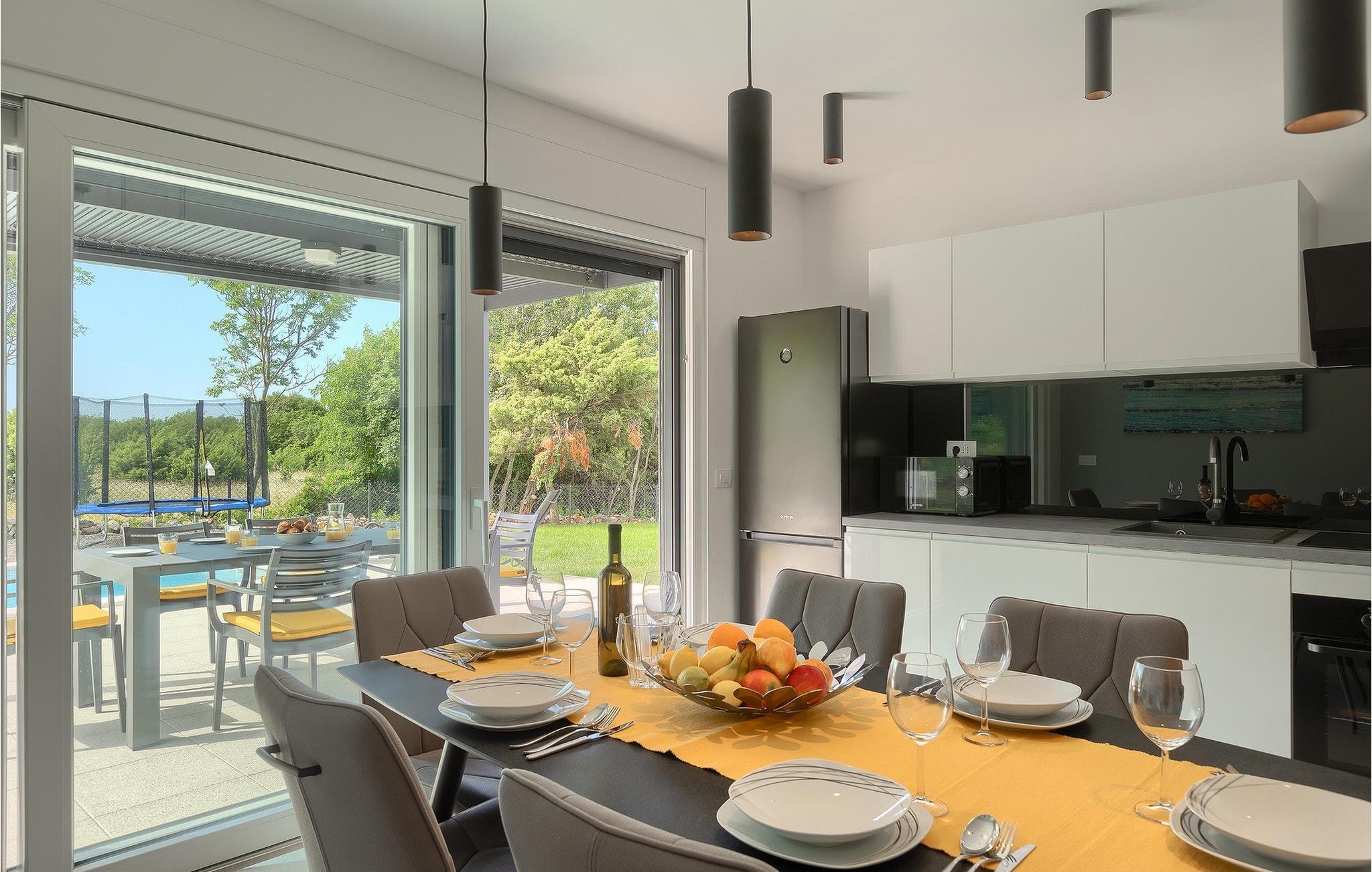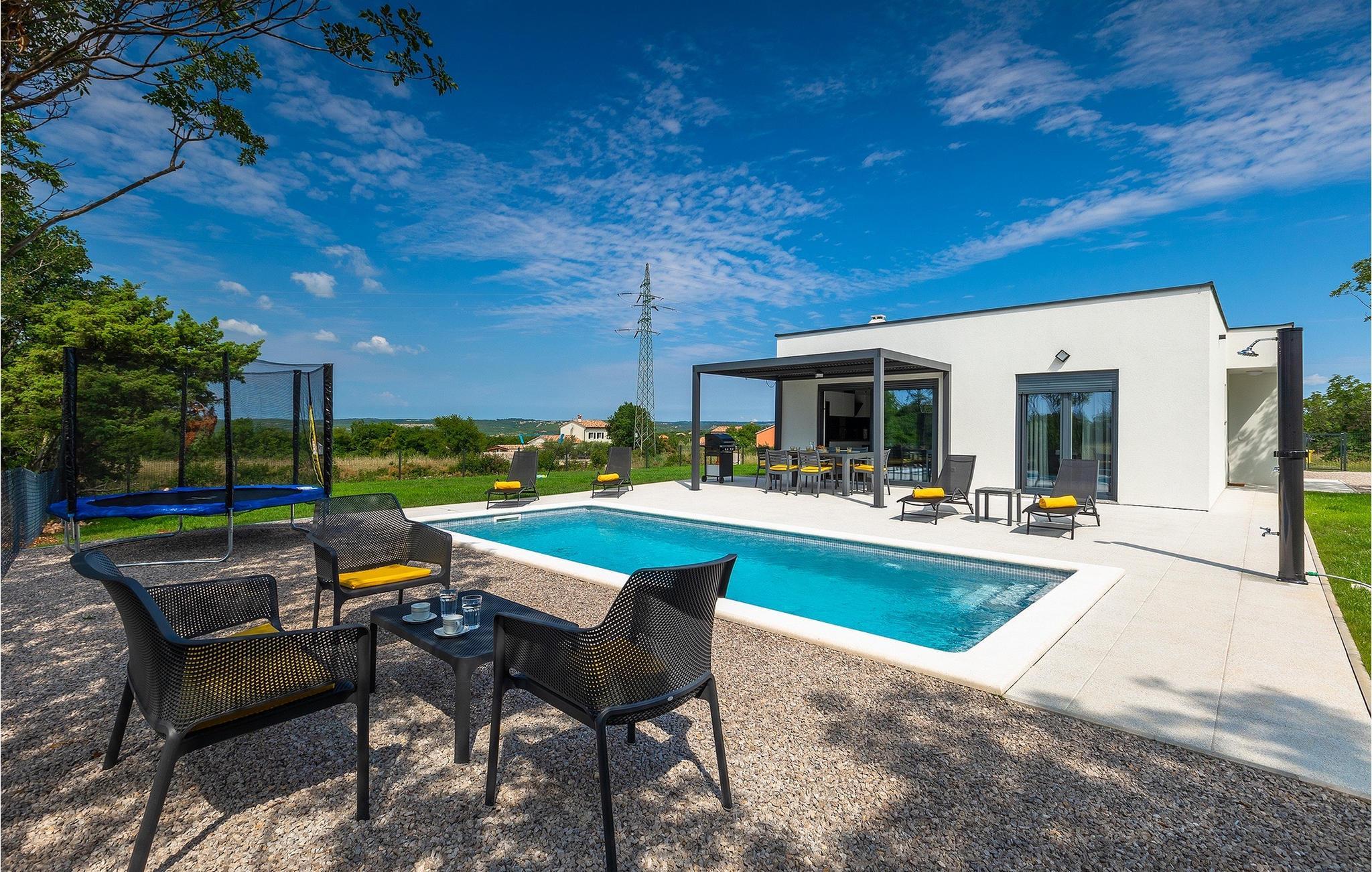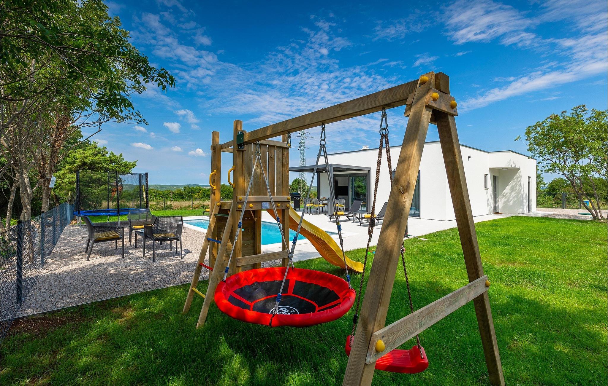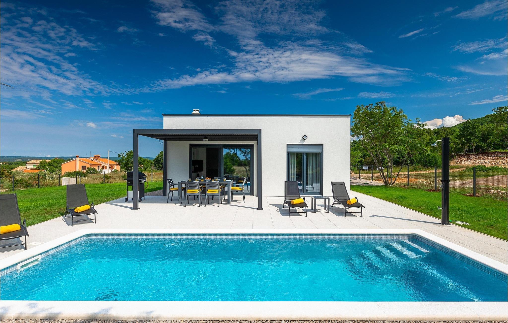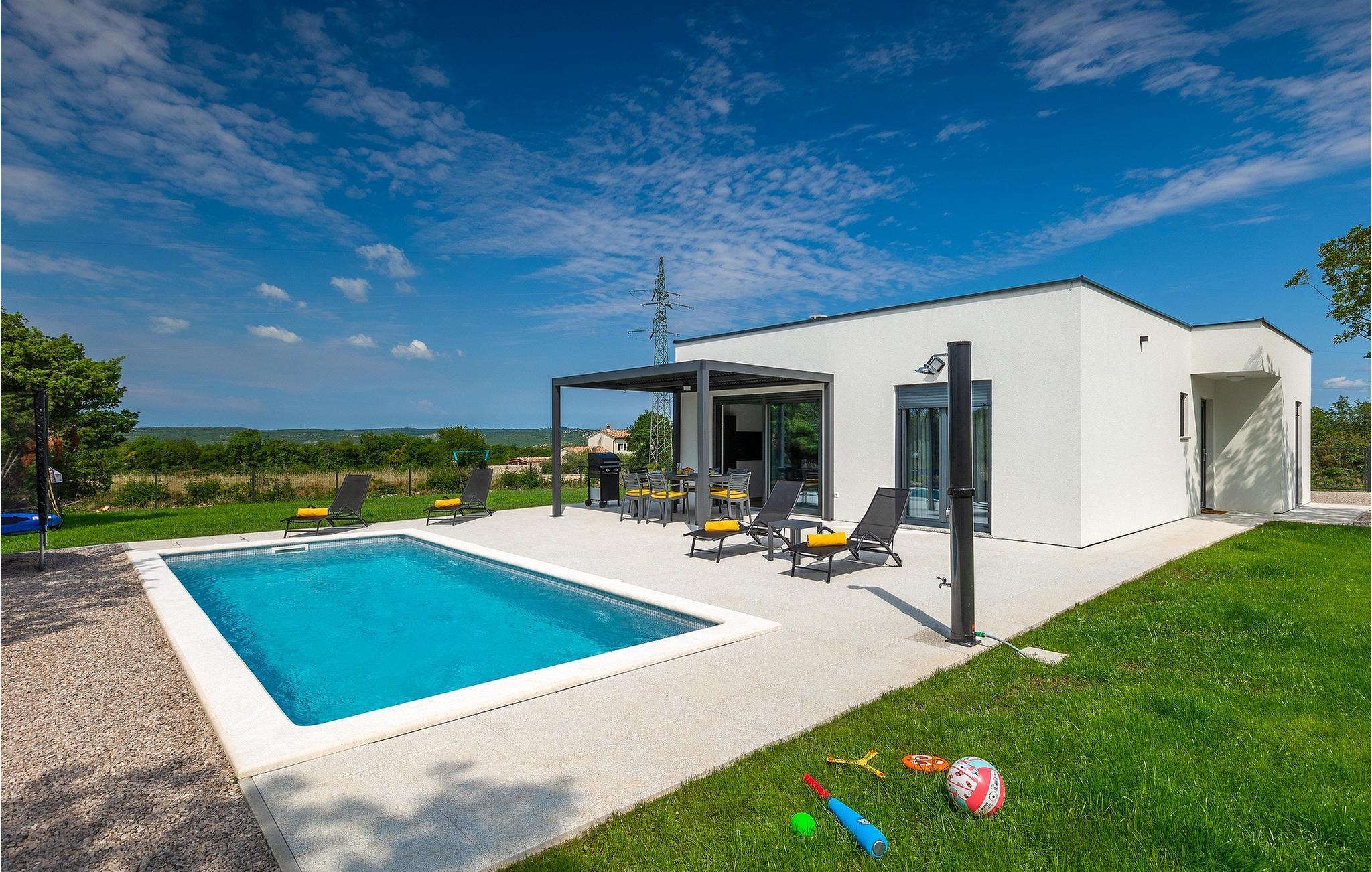 Die moderne Villa Lotta bietet Ihnen einen erholsamen Urlaub inmitten unberührter Natur. Die Villa ist ideal für einen Urlaub mit Familie oder Freunden. Suchen Sie während der Sommerhitze nach Erfrischung im 21 m² großen Swimmingpool. Am Pool gibt es einen überdachten Bereich mit Esstisch und Grill, ideal für unvergessliche Zusammenkünfte und den Genuss zubereiteter traditioneller istrischer Gerichte. Unsere jüngsten Gäste können sich auf dem Kinderspielplatz vergnügen. In der Nähe des Kinderspielplatzes gibt es einen Tisch und Stühle im natürlichen Schatten zum Kaffeetrinken oder für erfrischende Getränke am Nachmittag. Verbringen Sie Zeit im Freien und spielen Badminton oder Volleyball. Das Innere der Villa ist voller Tageslicht und alle Räume befinden sich im Erdgeschoss des Hauses. Im offenen Raum der Villa gibt es ein Wohnzimmer, eine voll ausgestattete Küche in modernem Design und ein Esszimmer, in dem Sie die istrische Atmosphäre genießen können. Das erste Schlafzimmer verfügt über ein Doppelbett und ein eigenes Badezimmer mit Blick auf den Pool und die Landschaft von Brgod. Im zweiten Zimmer stehen zwei Betten. Alle Zimmer verfügen über Fernseher und Klimaanlage. Das zweite Badezimmer und ein separater Waschraum befinden sich ebenfalls im Erdgeschoss des Hauses. Verpassen Sie nicht einen Urlaub in der Villa Lotta in der ruhigen Umgebung der wunderschönen Landschaft von Brgod. Villa Lotta liegt im Südosten der Halbinsel Istrien im Dorf Brgod. Diese friedliche Siedlung liegt oberhalb der Rasa-Bucht und des kleinen Fischerdorfes Trget. Erleben Sie den Zauber der Einheimischen und der unberührten Natur. Die hügelige Landschaft und die zahlreichen nahegelegenen Buchten, die Sie über Wander- und Radwege erreichen, werden Ihnen den Atem rauben. Besuchen Sie die nahe gelegenen berühmten Touristenzentren Rabac und Labin. Rabac war ein ehemaliges Fischerdorf und ist heute für seine natürliche Schönheit, seine wunderschönen Kaps und Strände bekannt. Diese Perle des Kvarners wurde im 19. Jahrhundert auch vom Reiseschriftsteller Richard Francis Burton besucht. Erkunden Sie die mittelalterliche Stadt Labin, die auf einem Hügel oberhalb von Rabac liegt. Die Heimatstadt von Matija Vlacic ist eine Kombination aus reicher Architektur, kulturellen und historischen Denkmälern und Kunstateliers. Entdecken Sie durch die bezaubernden engen Gassen von Labin das reiche Angebot lokaler Gastronomiebetriebe.