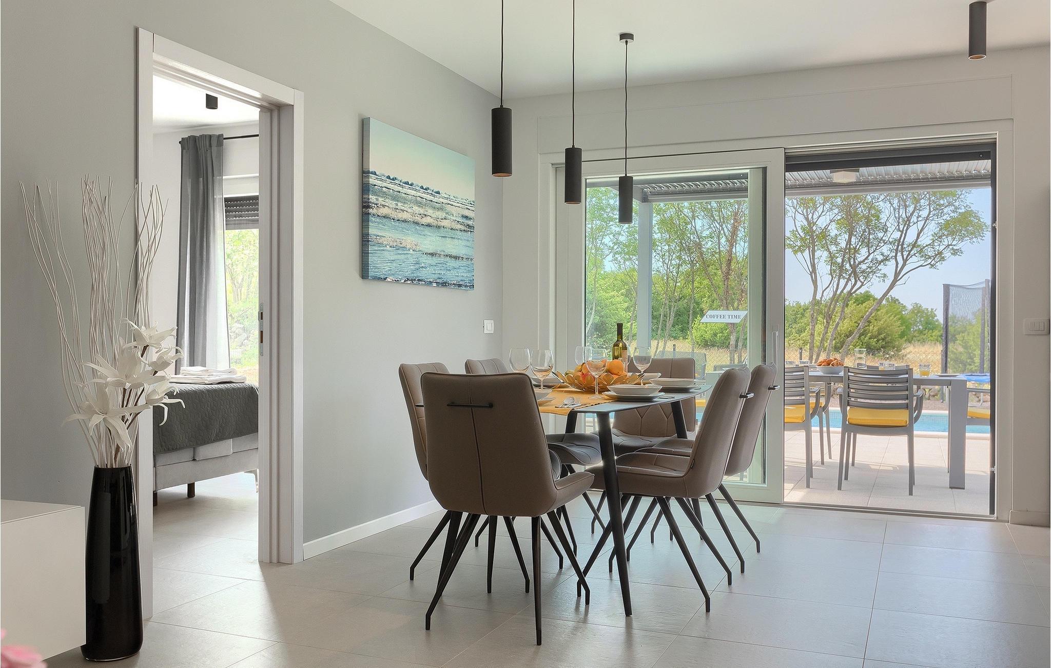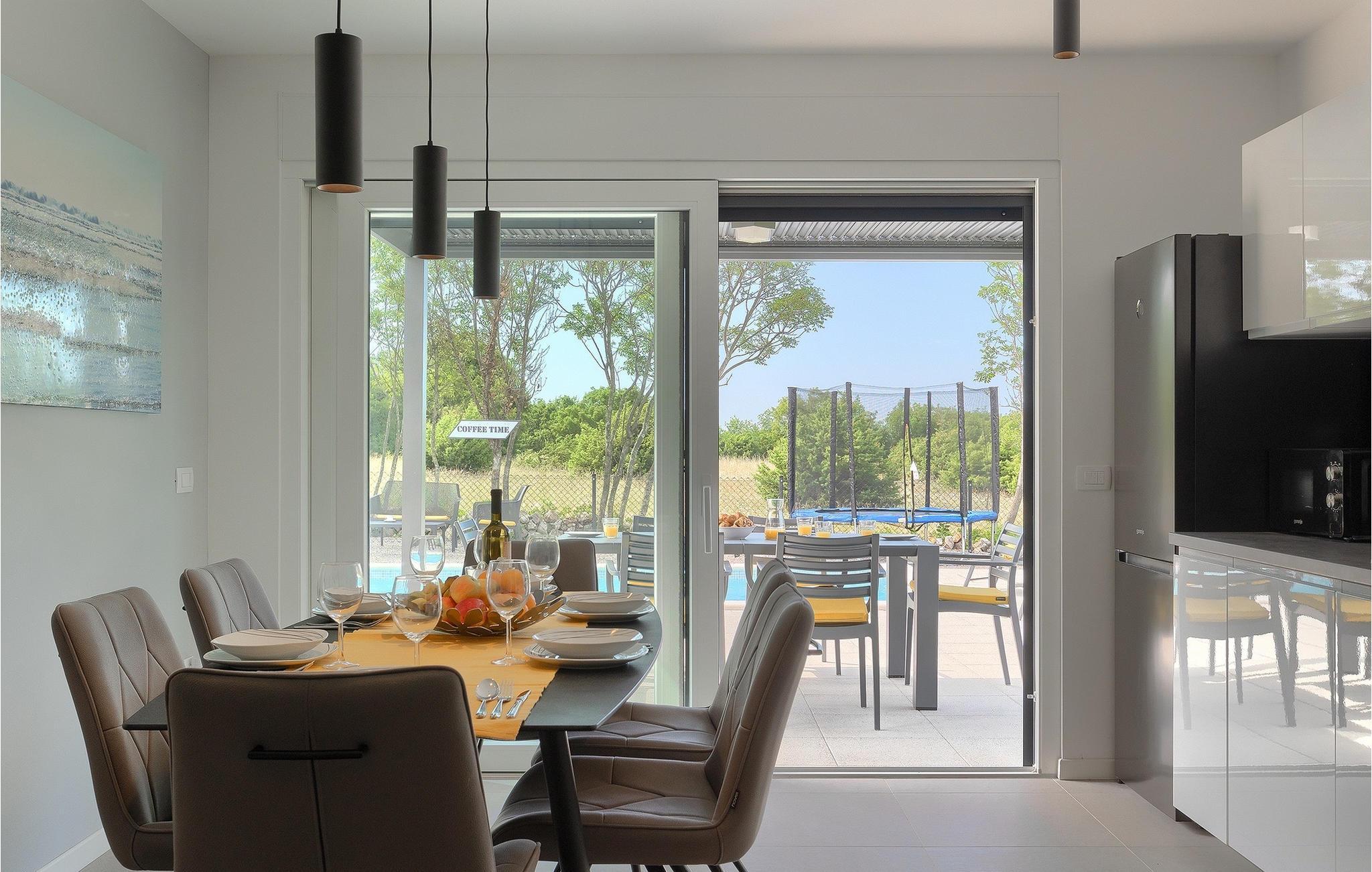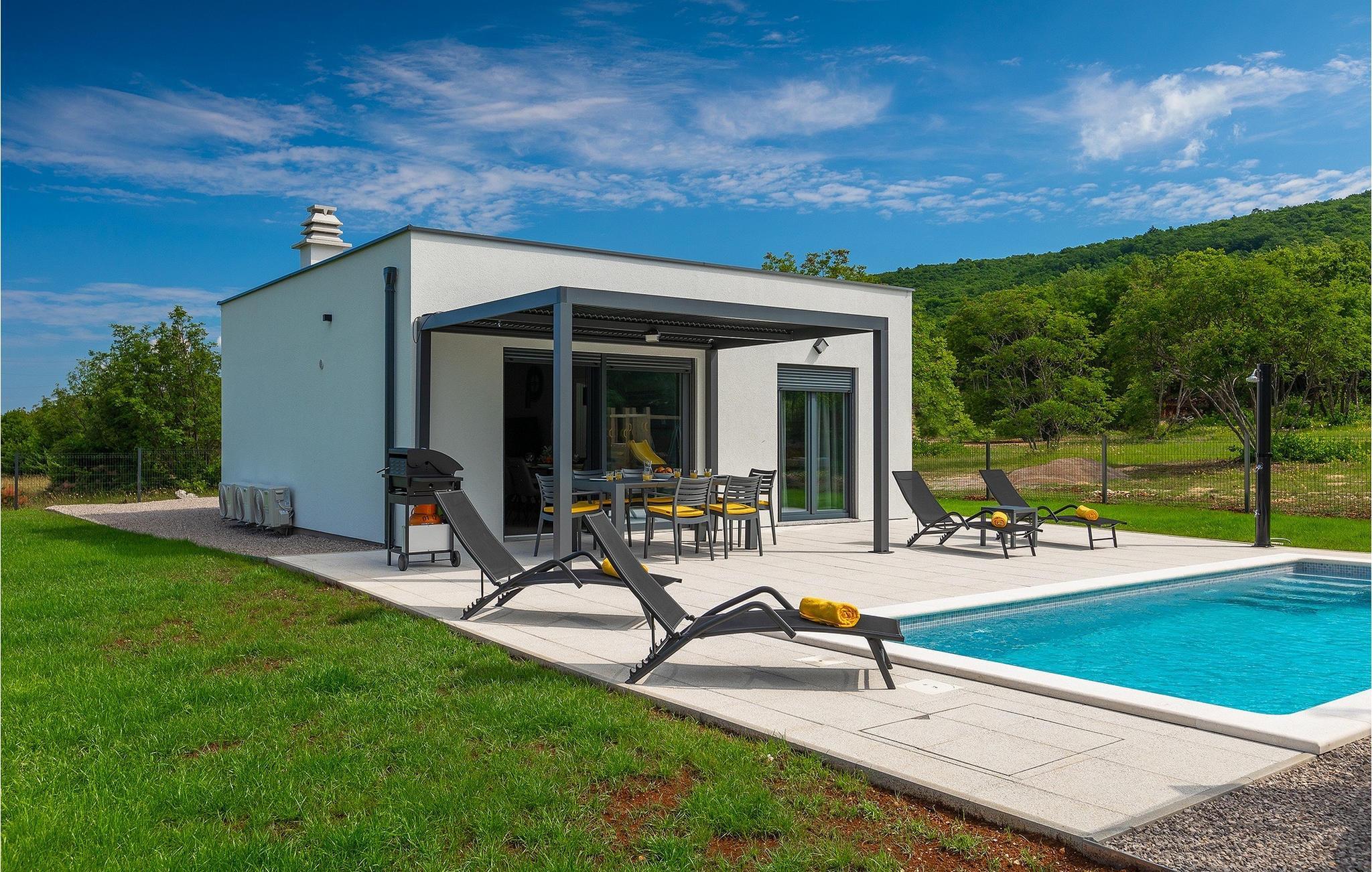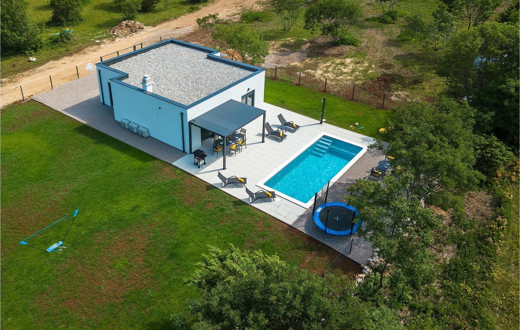 Die moderne Villa Lotta bietet Ihnen einen erholsamen Urlaub inmitten unberührter Natur. Die Villa ist ideal für einen Urlaub mit Familie oder Freunden. Suchen Sie während der Sommerhitze nach Erfrischung im 21 m² großen Swimmingpool. Am Pool gibt es einen überdachten Bereich mit Esstisch und Grill, ideal für unvergessliche Zusammenkünfte und den Genuss zubereiteter traditioneller istrischer Gerichte. Unsere jüngsten Gäste können sich auf dem Kinderspielplatz vergnügen. In der Nähe des Kinderspielplatzes gibt es einen Tisch und Stühle im natürlichen Schatten zum Kaffeetrinken oder für erfrischende Getränke am Nachmittag. Verbringen Sie Zeit im Freien und spielen Badminton oder Volleyball. Das Innere der Villa ist voller Tageslicht und alle Räume befinden sich im Erdgeschoss des Hauses. Im offenen Raum der Villa gibt es ein Wohnzimmer, eine voll ausgestattete Küche in modernem Design und ein Esszimmer, in dem Sie die istrische Atmosphäre genießen können. Das erste Schlafzimmer verfügt über ein Doppelbett und ein eigenes Badezimmer mit Blick auf den Pool und die Landschaft von Brgod. Im zweiten Zimmer stehen zwei Betten. Alle Zimmer verfügen über Fernseher und Klimaanlage. Das zweite Badezimmer und ein separater Waschraum befinden sich ebenfalls im Erdgeschoss des Hauses. Verpassen Sie nicht einen Urlaub in der Villa Lotta in der ruhigen Umgebung der wunderschönen Landschaft von Brgod. Villa Lotta liegt im Südosten der Halbinsel Istrien im Dorf Brgod. Diese friedliche Siedlung liegt oberhalb der Rasa-Bucht und des kleinen Fischerdorfes Trget. Erleben Sie den Zauber der Einheimischen und der unberührten Natur. Die hügelige Landschaft und die zahlreichen nahegelegenen Buchten, die Sie über Wander- und Radwege erreichen, werden Ihnen den Atem rauben. Besuchen Sie die nahe gelegenen berühmten Touristenzentren Rabac und Labin. Rabac war ein ehemaliges Fischerdorf und ist heute für seine natürliche Schönheit, seine wunderschönen Kaps und Strände bekannt. Diese Perle des Kvarners wurde im 19. Jahrhundert auch vom Reiseschriftsteller Richard Francis Burton besucht. Erkunden Sie die mittelalterliche Stadt Labin, die auf einem Hügel oberhalb von Rabac liegt. Die Heimatstadt von Matija Vlacic ist eine Kombination aus reicher Architektur, kulturellen und historischen Denkmälern und Kunstateliers. Entdecken Sie durch die bezaubernden engen Gassen von Labin das reiche Angebot lokaler Gastronomiebetriebe.