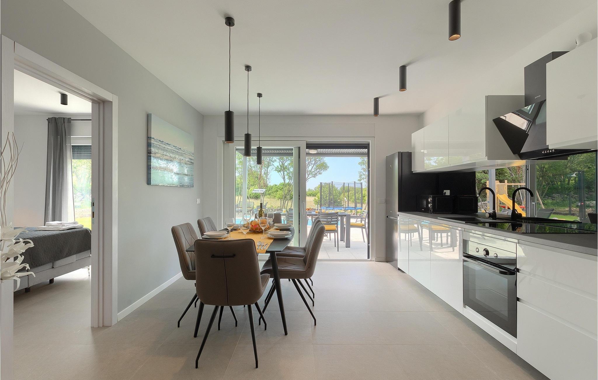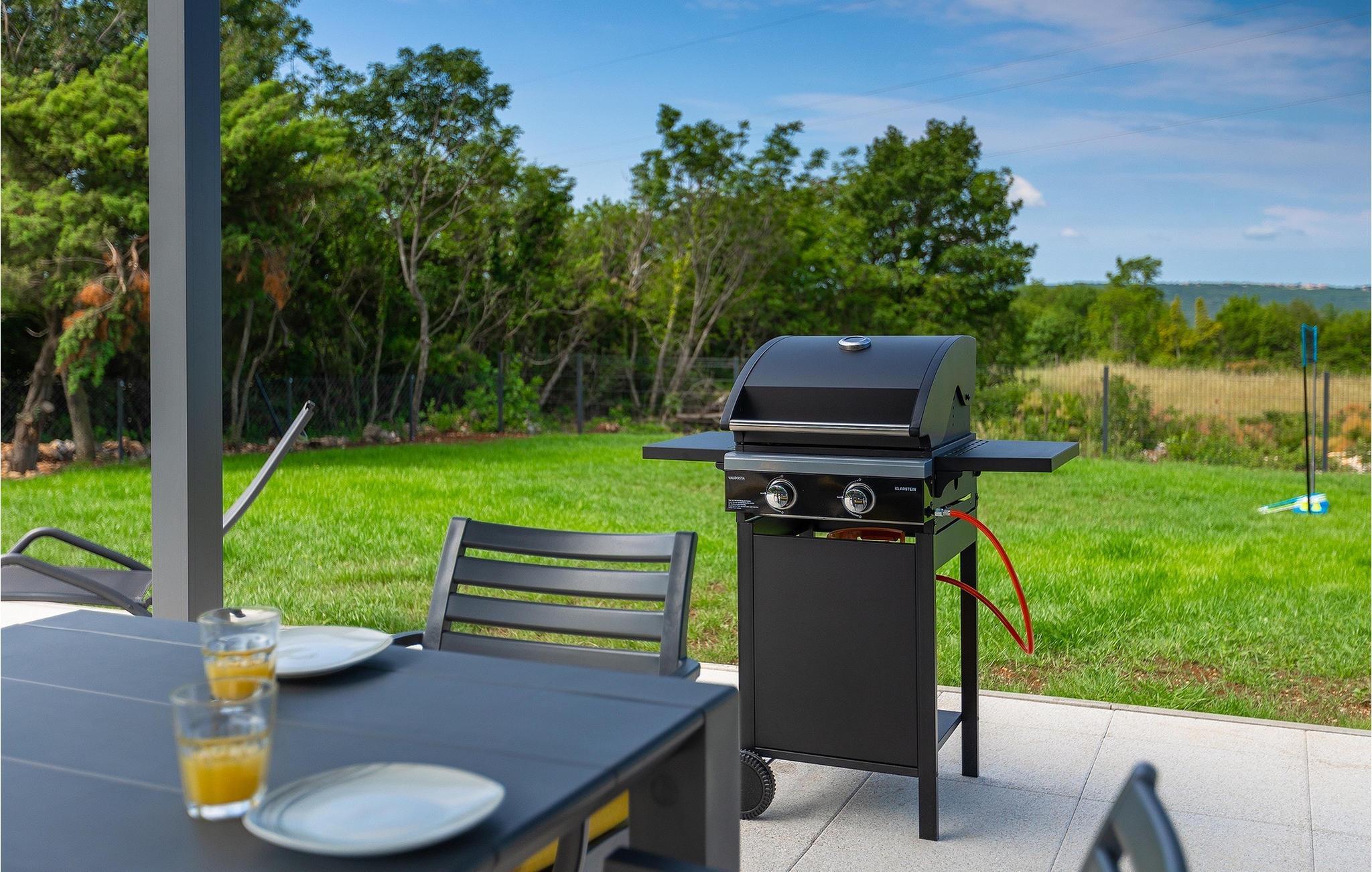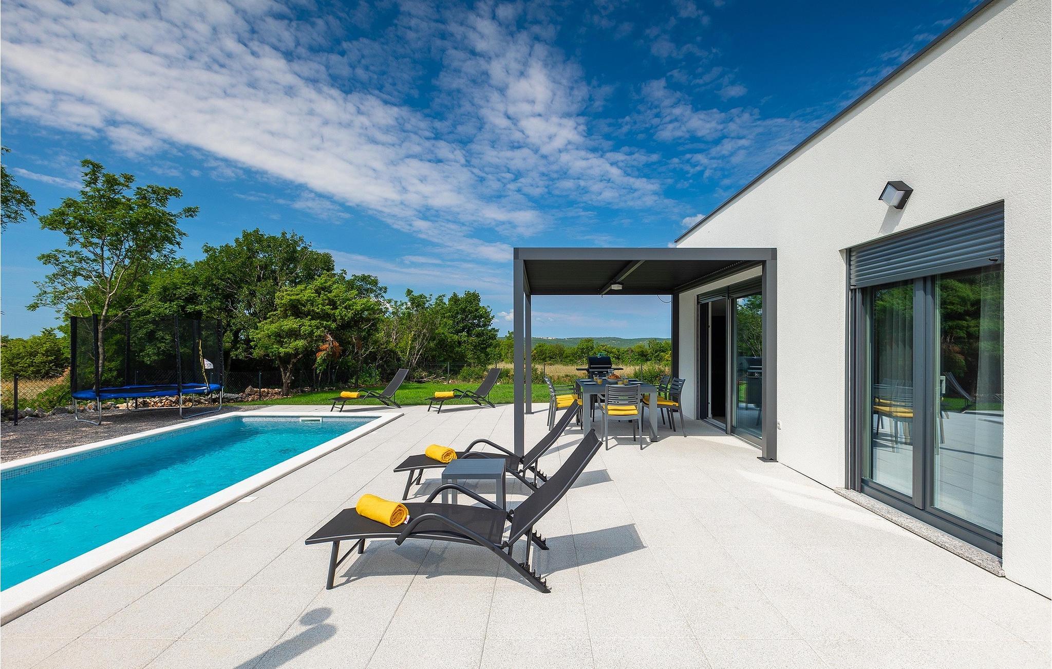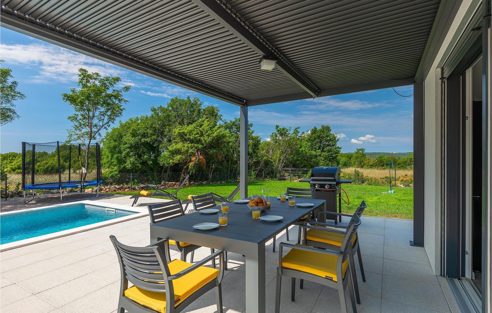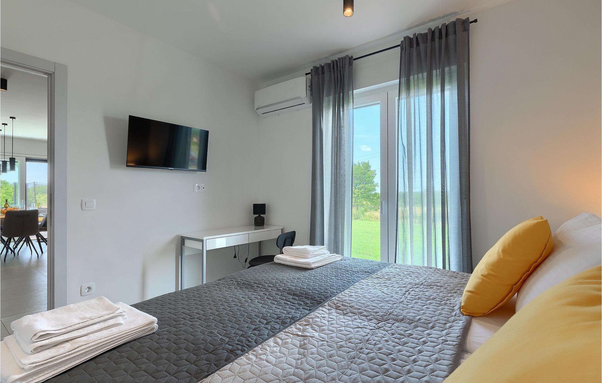 Die moderne Villa Lotta bietet Ihnen einen erholsamen Urlaub inmitten unberührter Natur. Die Villa ist ideal für einen Urlaub mit Familie oder Freunden. Suchen Sie während der Sommerhitze nach Erfrischung im 21 m² großen Swimmingpool. Am Pool gibt es einen überdachten Bereich mit Esstisch und Grill, ideal für unvergessliche Zusammenkünfte und den Genuss zubereiteter traditioneller istrischer Gerichte. Unsere jüngsten Gäste können sich auf dem Kinderspielplatz vergnügen. In der Nähe des Kinderspielplatzes gibt es einen Tisch und Stühle im natürlichen Schatten zum Kaffeetrinken oder für erfrischende Getränke am Nachmittag. Verbringen Sie Zeit im Freien und spielen Badminton oder Volleyball. Das Innere der Villa ist voller Tageslicht und alle Räume befinden sich im Erdgeschoss des Hauses. Im offenen Raum der Villa gibt es ein Wohnzimmer, eine voll ausgestattete Küche in modernem Design und ein Esszimmer, in dem Sie die istrische Atmosphäre genießen können. Das erste Schlafzimmer verfügt über ein Doppelbett und ein eigenes Badezimmer mit Blick auf den Pool und die Landschaft von Brgod. Im zweiten Zimmer stehen zwei Betten. Alle Zimmer verfügen über Fernseher und Klimaanlage. Das zweite Badezimmer und ein separater Waschraum befinden sich ebenfalls im Erdgeschoss des Hauses. Verpassen Sie nicht einen Urlaub in der Villa Lotta in der ruhigen Umgebung der wunderschönen Landschaft von Brgod. Villa Lotta liegt im Südosten der Halbinsel Istrien im Dorf Brgod. Diese friedliche Siedlung liegt oberhalb der Rasa-Bucht und des kleinen Fischerdorfes Trget. Erleben Sie den Zauber der Einheimischen und der unberührten Natur. Die hügelige Landschaft und die zahlreichen nahegelegenen Buchten, die Sie über Wander- und Radwege erreichen, werden Ihnen den Atem rauben. Besuchen Sie die nahe gelegenen berühmten Touristenzentren Rabac und Labin. Rabac war ein ehemaliges Fischerdorf und ist heute für seine natürliche Schönheit, seine wunderschönen Kaps und Strände bekannt. Diese Perle des Kvarners wurde im 19. Jahrhundert auch vom Reiseschriftsteller Richard Francis Burton besucht. Erkunden Sie die mittelalterliche Stadt Labin, die auf einem Hügel oberhalb von Rabac liegt. Die Heimatstadt von Matija Vlacic ist eine Kombination aus reicher Architektur, kulturellen und historischen Denkmälern und Kunstateliers. Entdecken Sie durch die bezaubernden engen Gassen von Labin das reiche Angebot lokaler Gastronomiebetriebe.